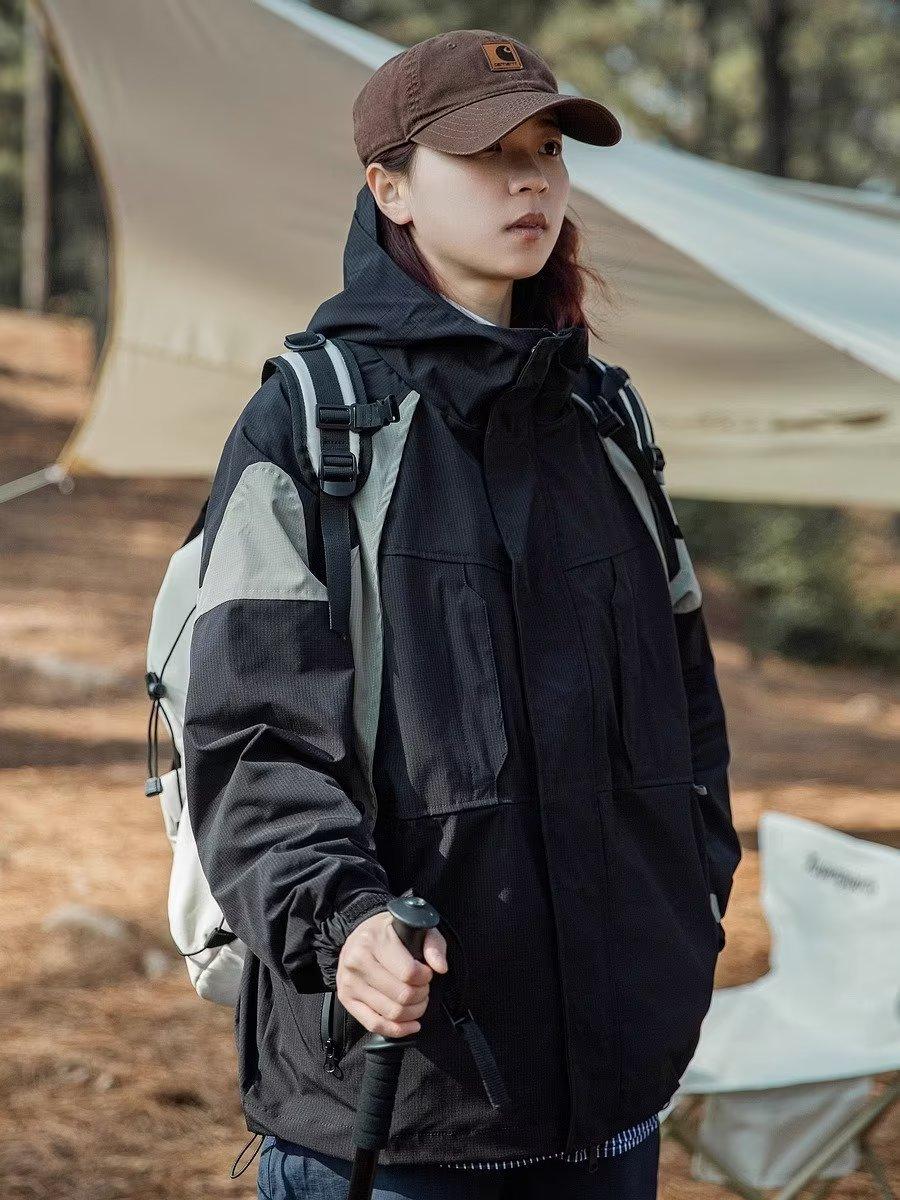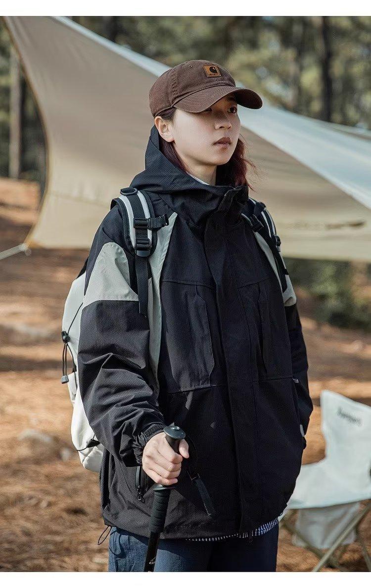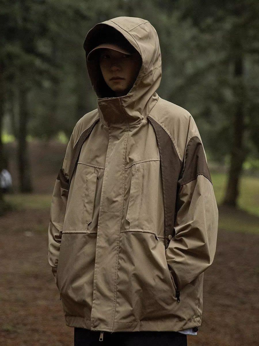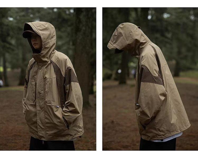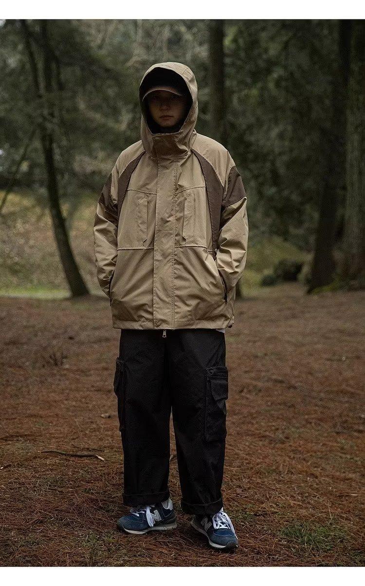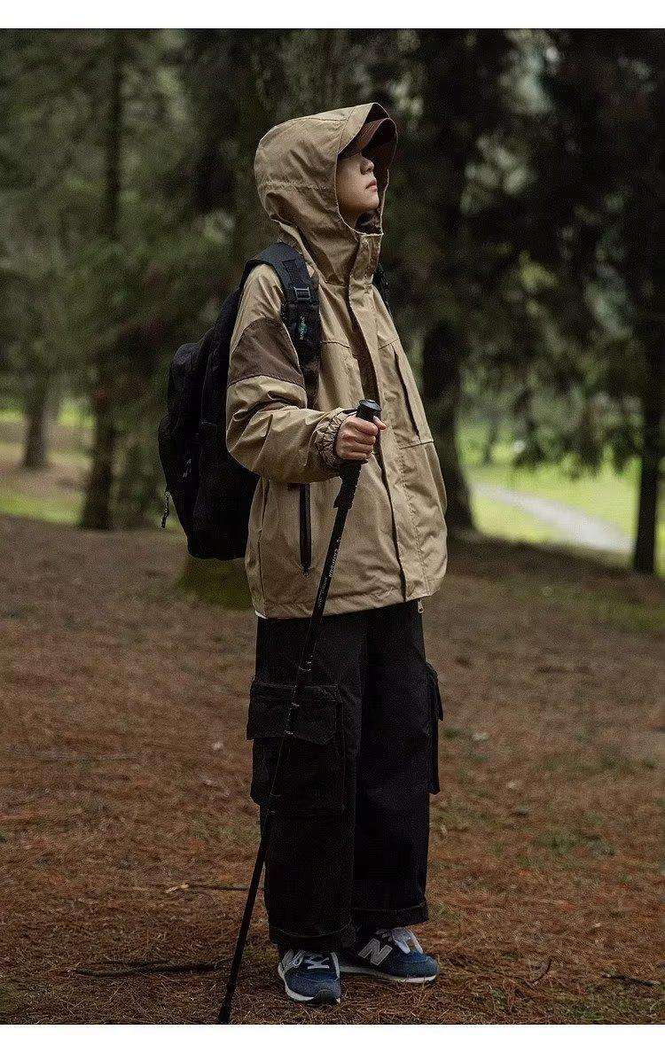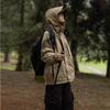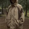 Abrigo de otoño ropa costuras de color contrastante chaqueta decorativa con capucha top holgado retro japonés casual para mujer