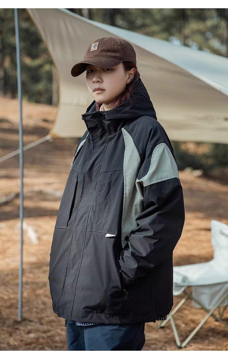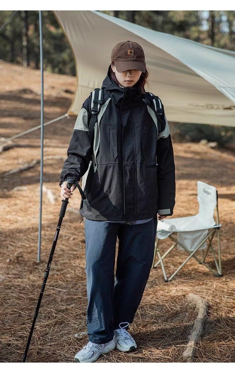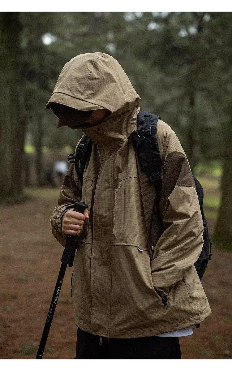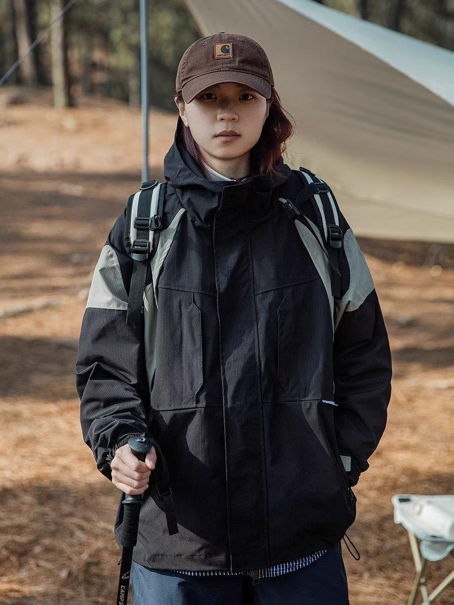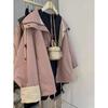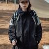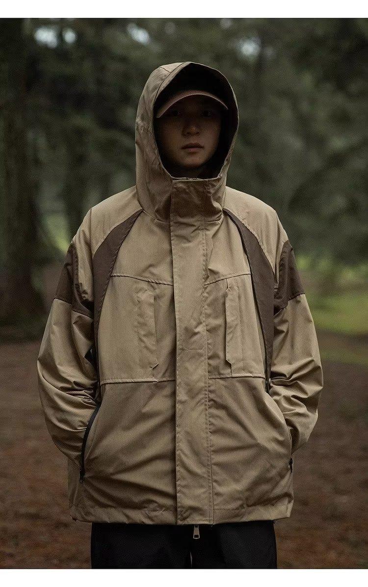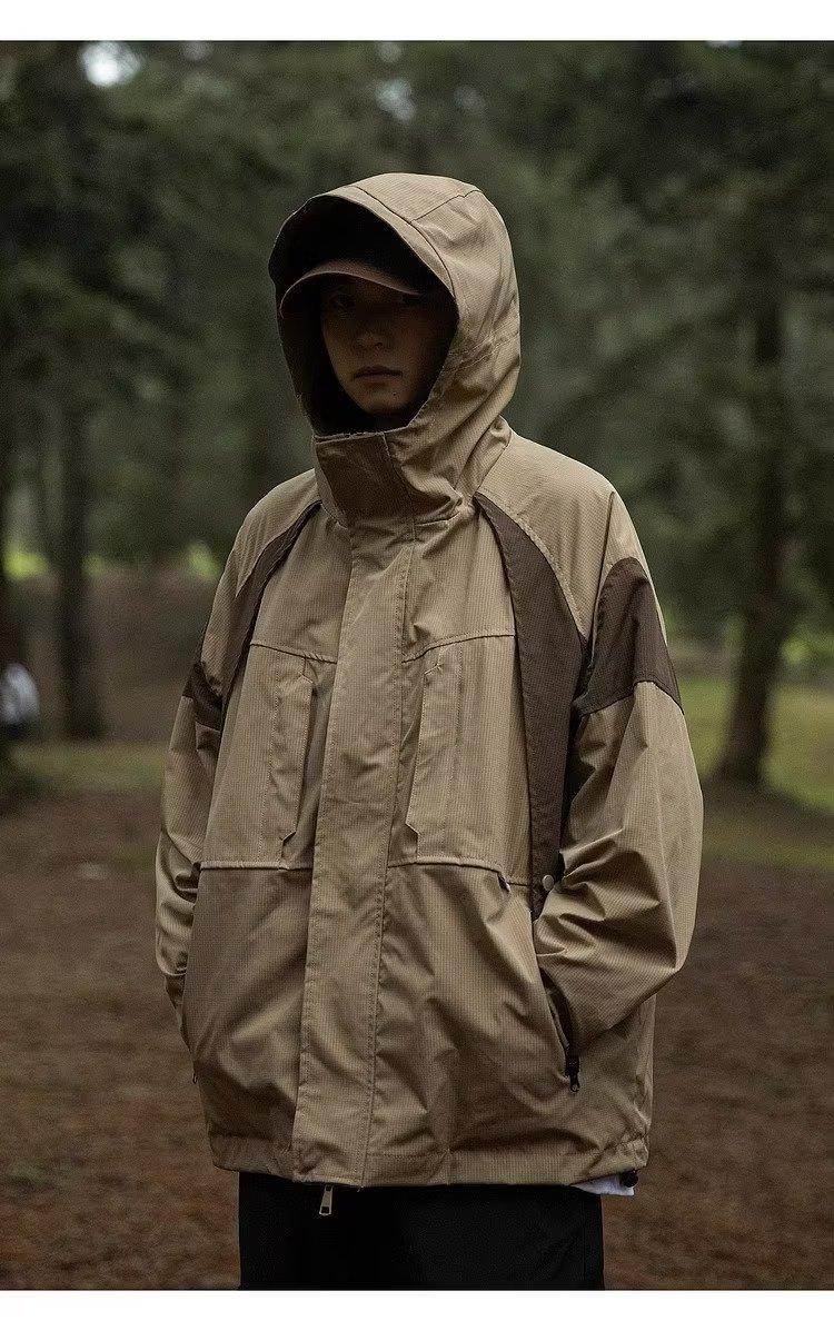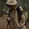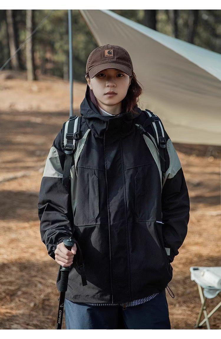 Abrigo de otoño ropa costuras de color contrastante chaqueta decorativa con capucha top holgado retro japonés casual para mujer