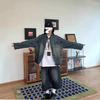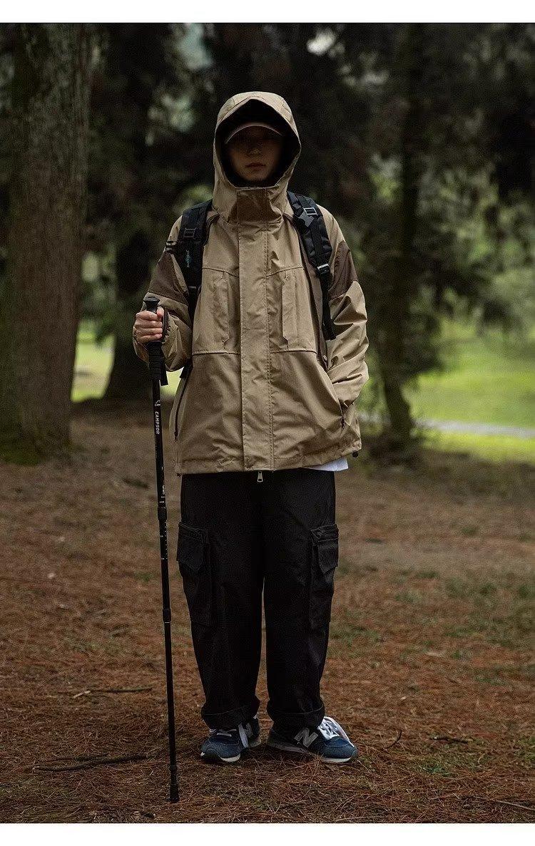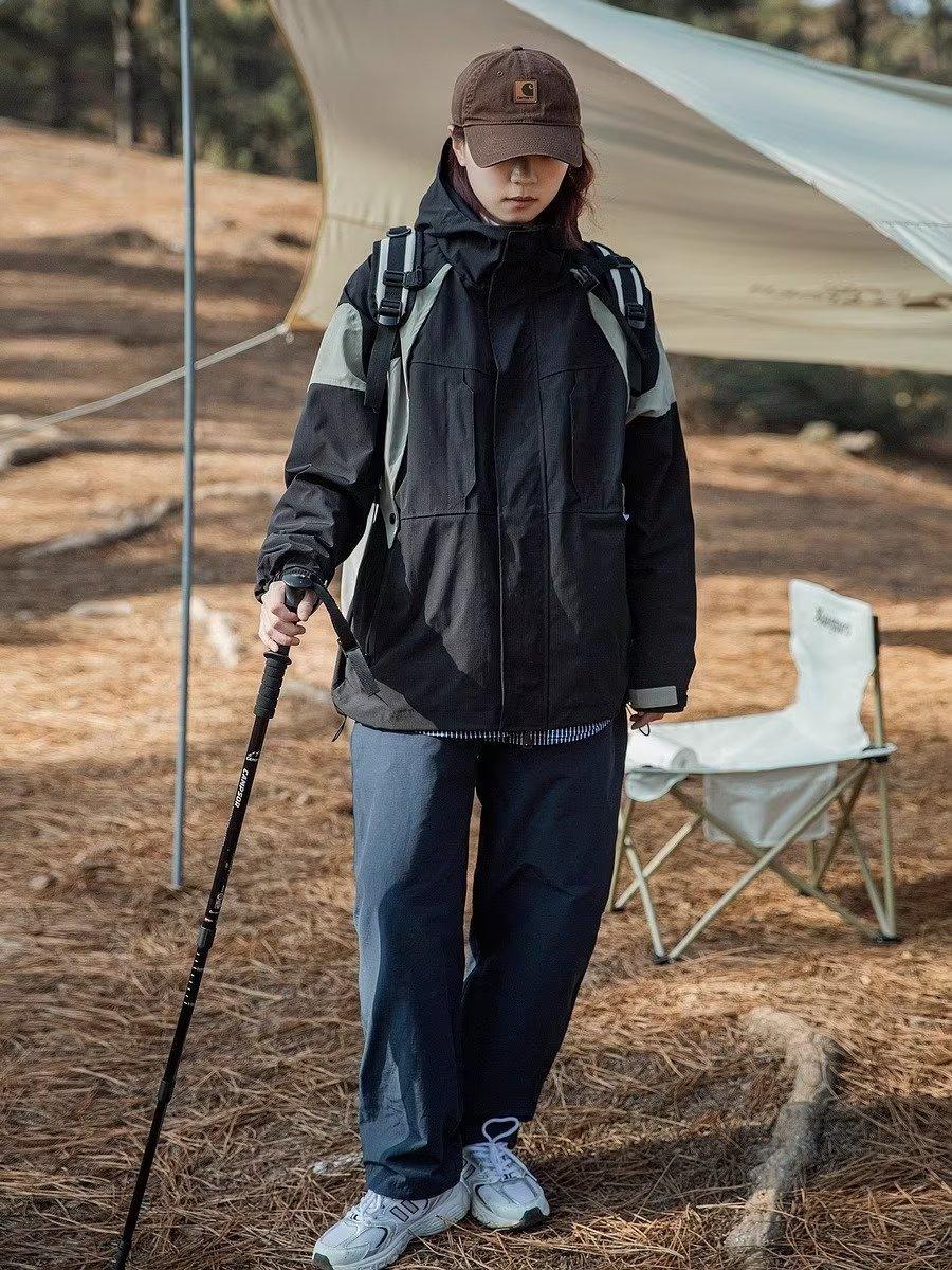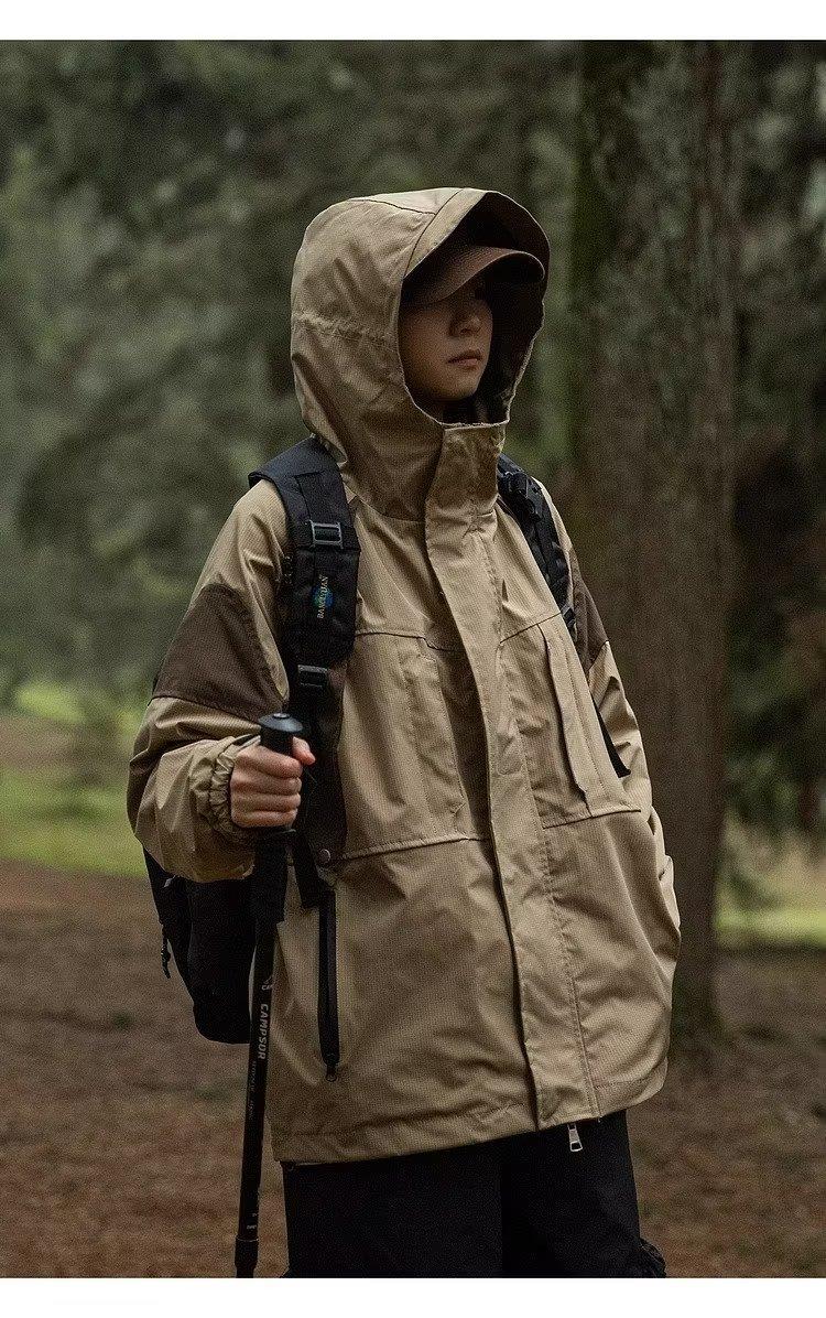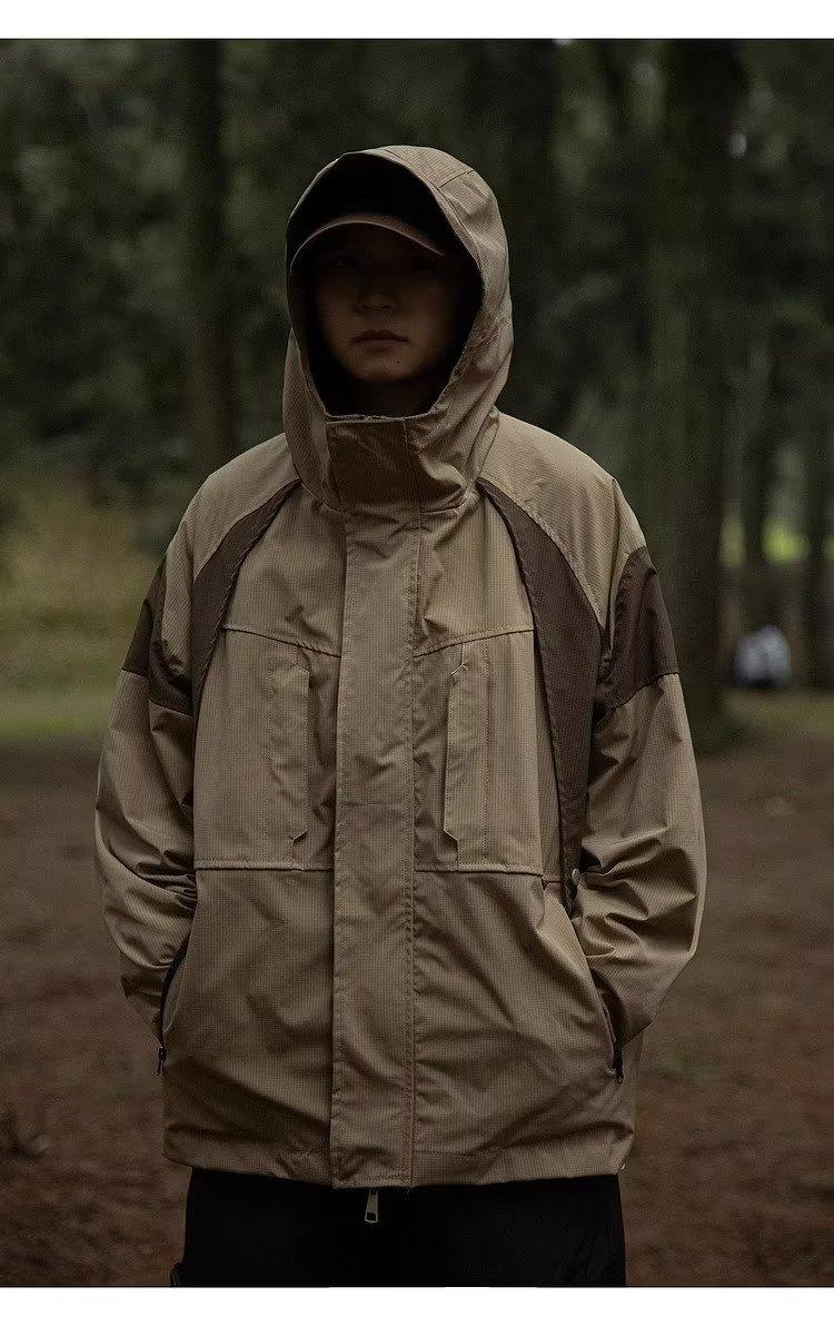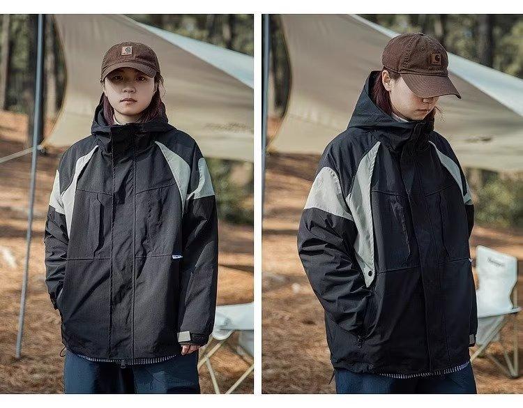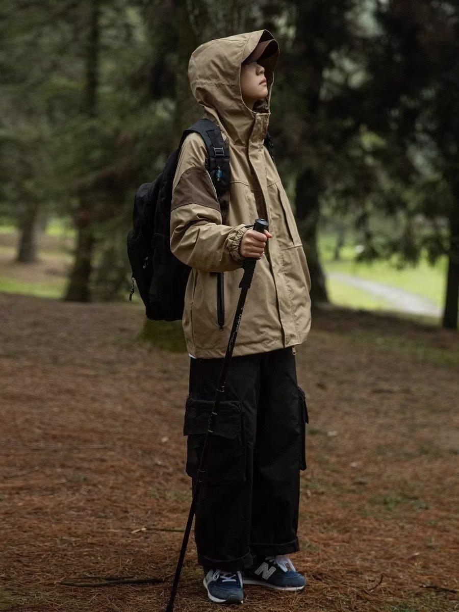 Abrigo de otoño ropa costuras de color contrastante chaqueta decorativa con capucha top holgado retro japonés casual para mujer