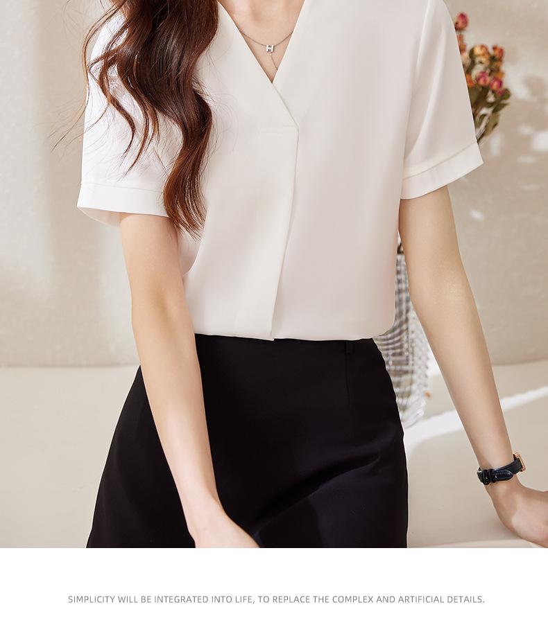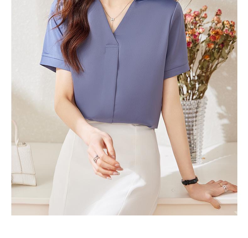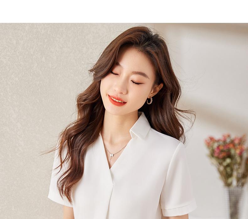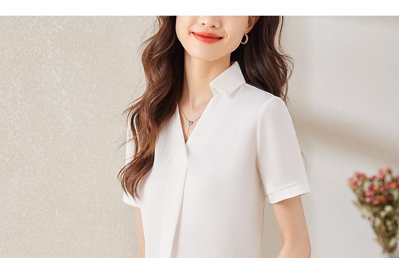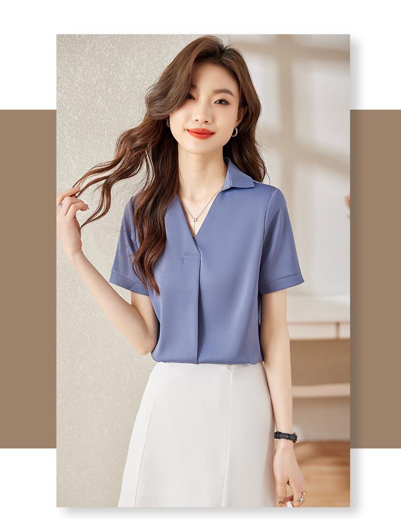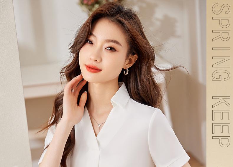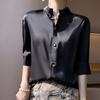 Camisa de Manga Corta para Mujer Verano Delgada Satén de Acetato Top 2025 Nueva Profesional Elegante Camisa para Viajar de Alta Gama