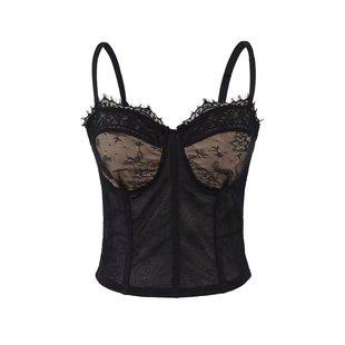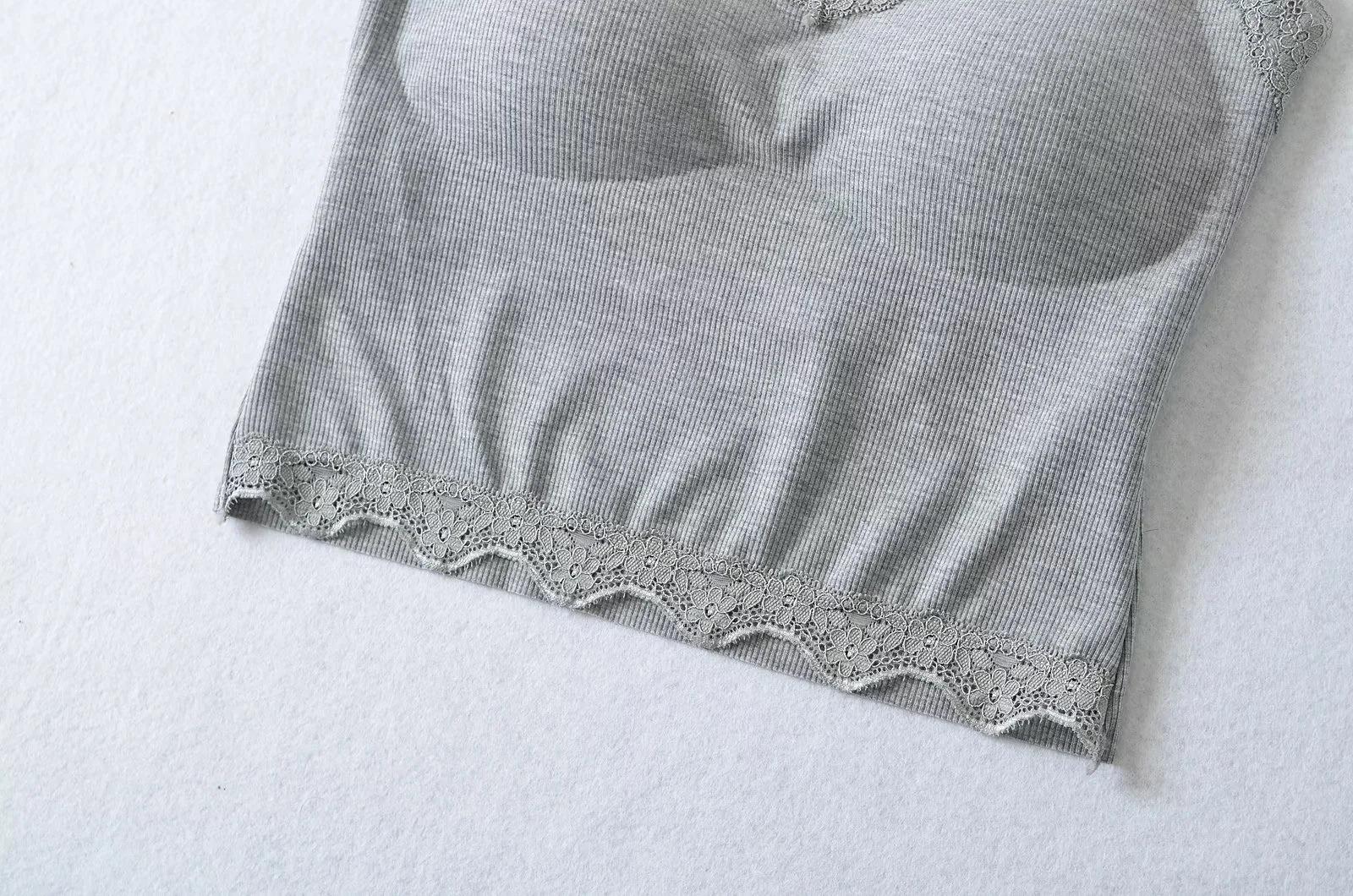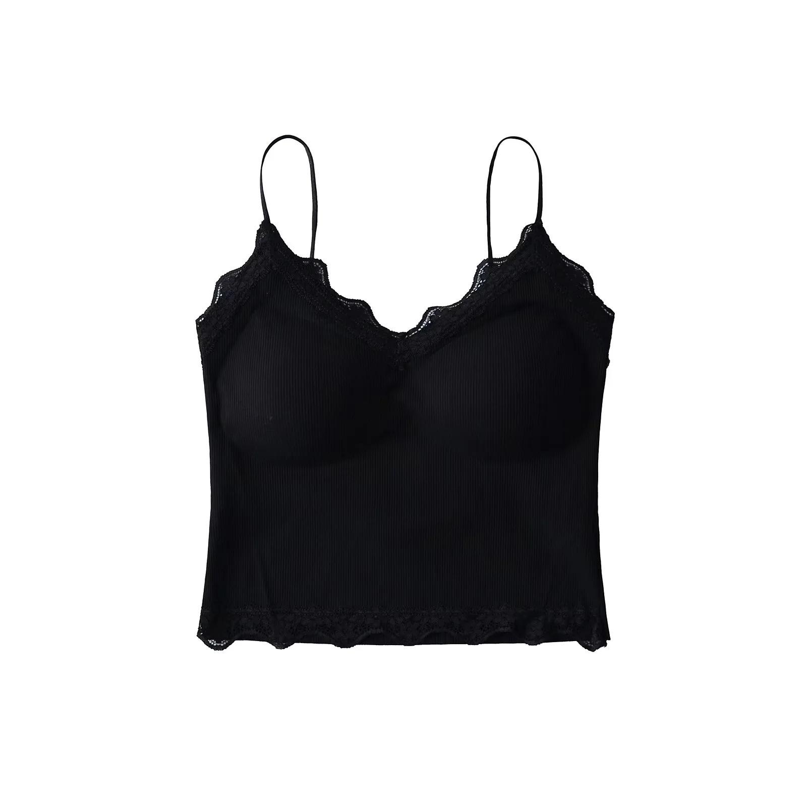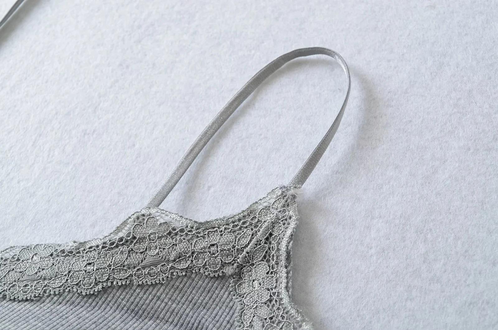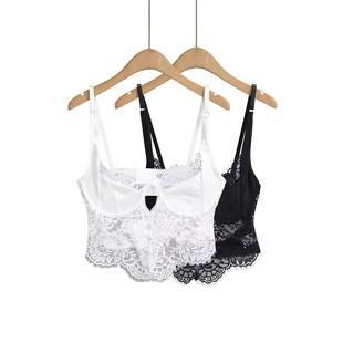 Ropa interior pura y sexy, top base elegante, camisola individual de encaje de pestañas moderno calado con varilla