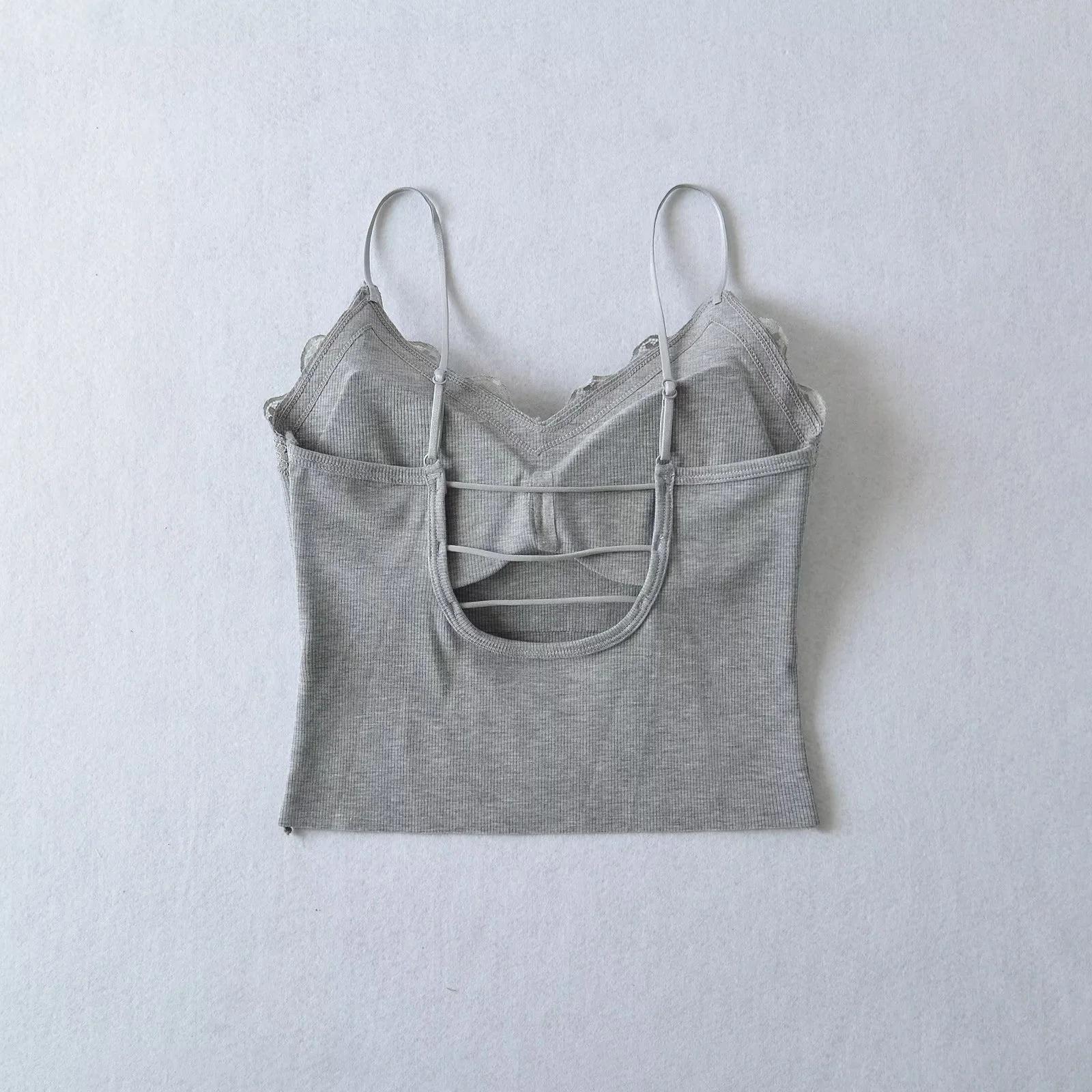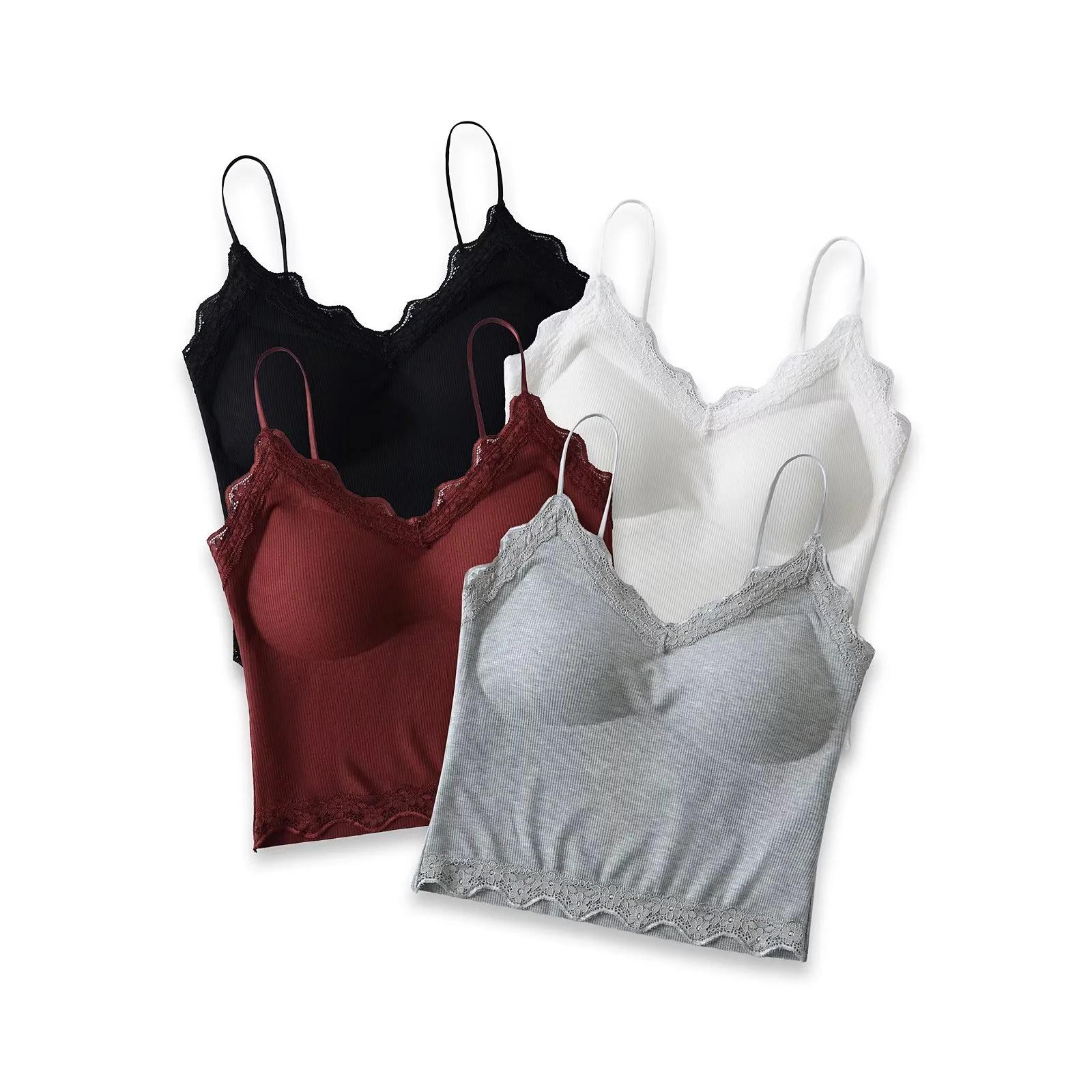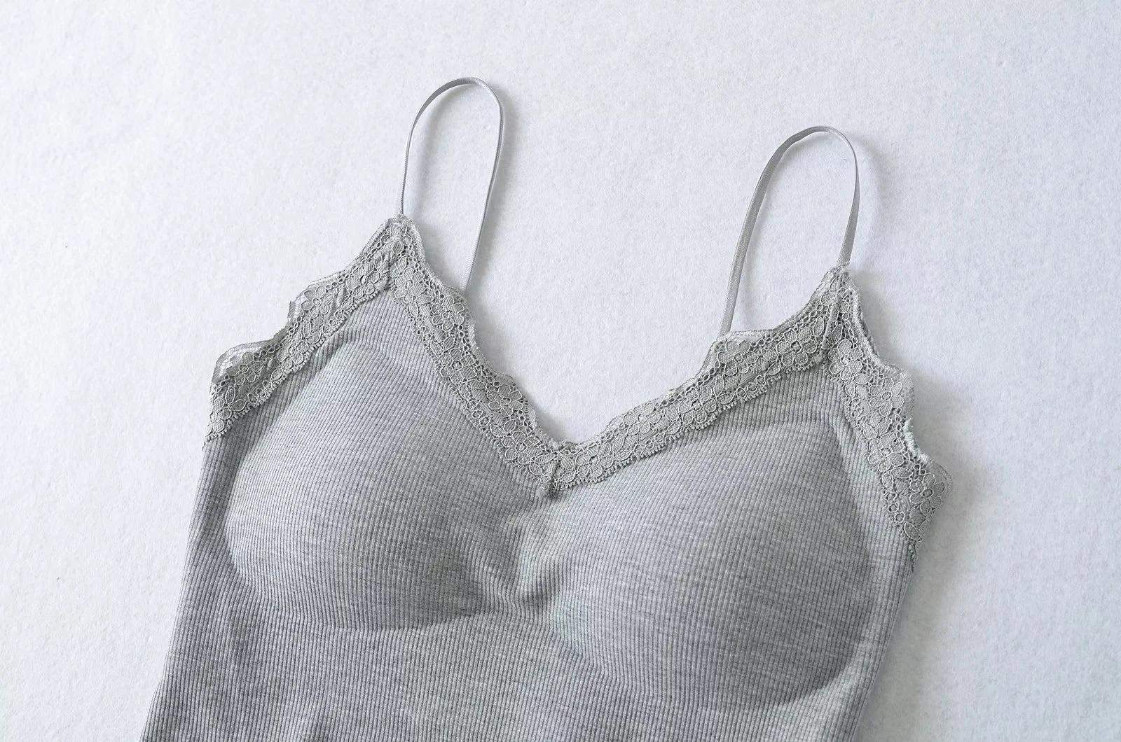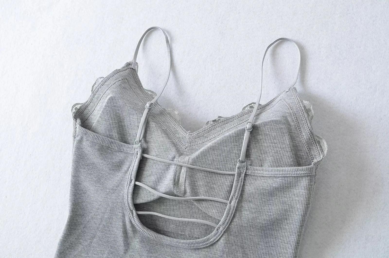 Ropa interior pura y sexy, top base elegante, camisola individual de encaje de pestañas moderno calado con varilla