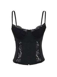 Estilo Puro y Sexy Figura de Avispa Favorecedora Camisola Top Encaje Corsé Varillas 3D con Aros Set Chaleco Sin Mangas para Mujer