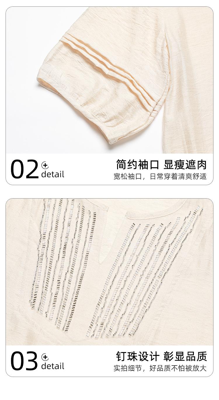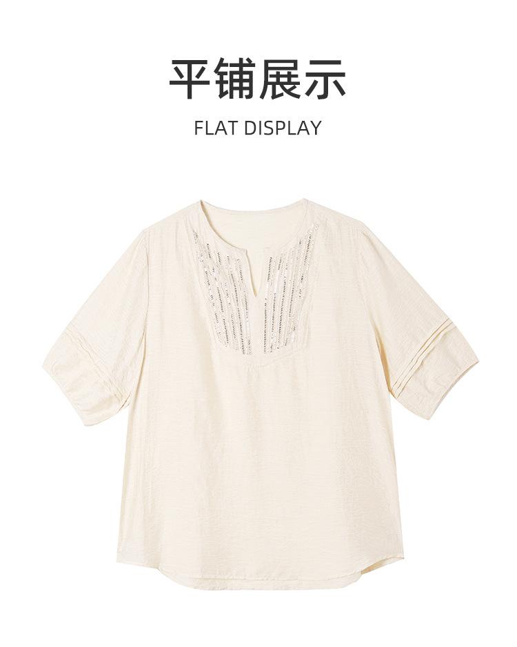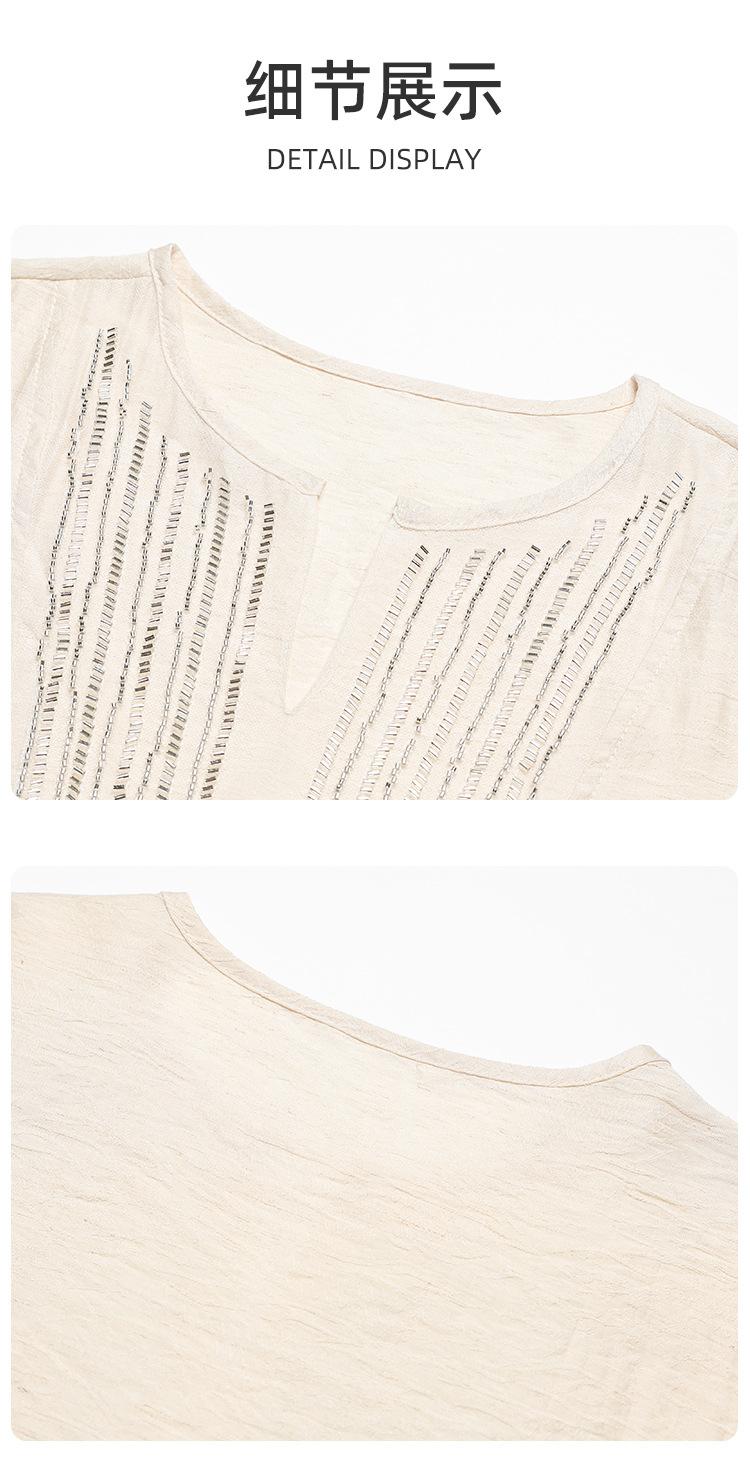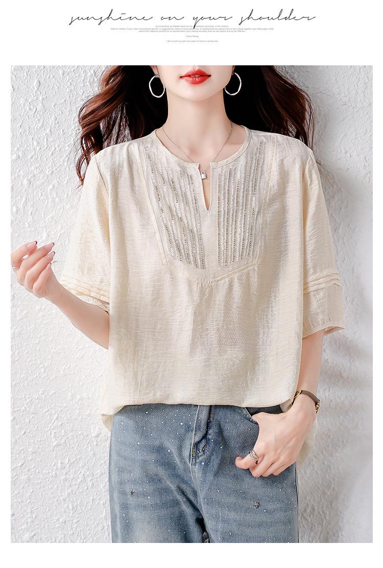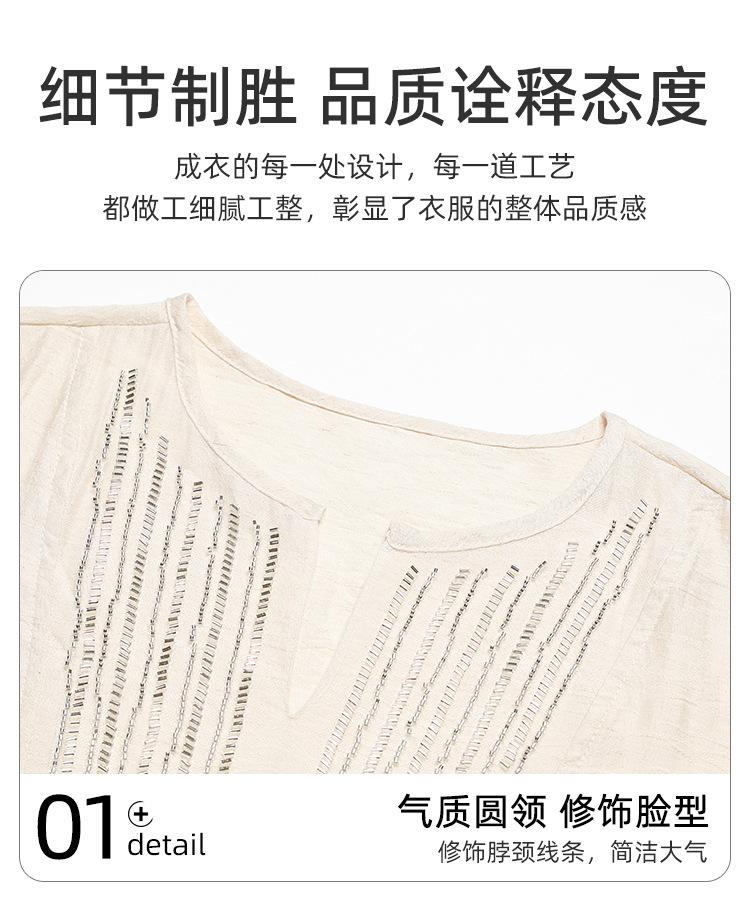 Verano 2025 Jacquard Pesado con Cuentas Holgado Adelgazante Reductor de Edad Cuello Redondo Moda Talla Grande Casual Top de Mujer