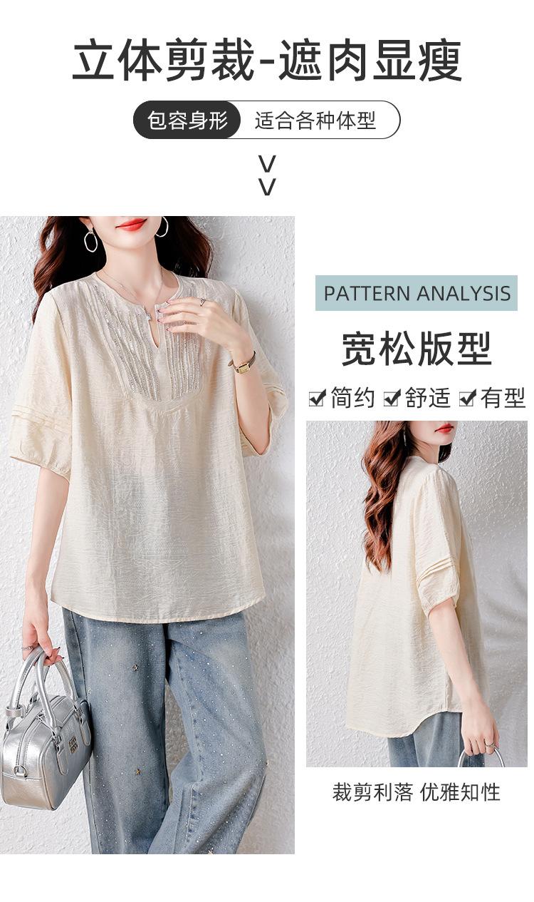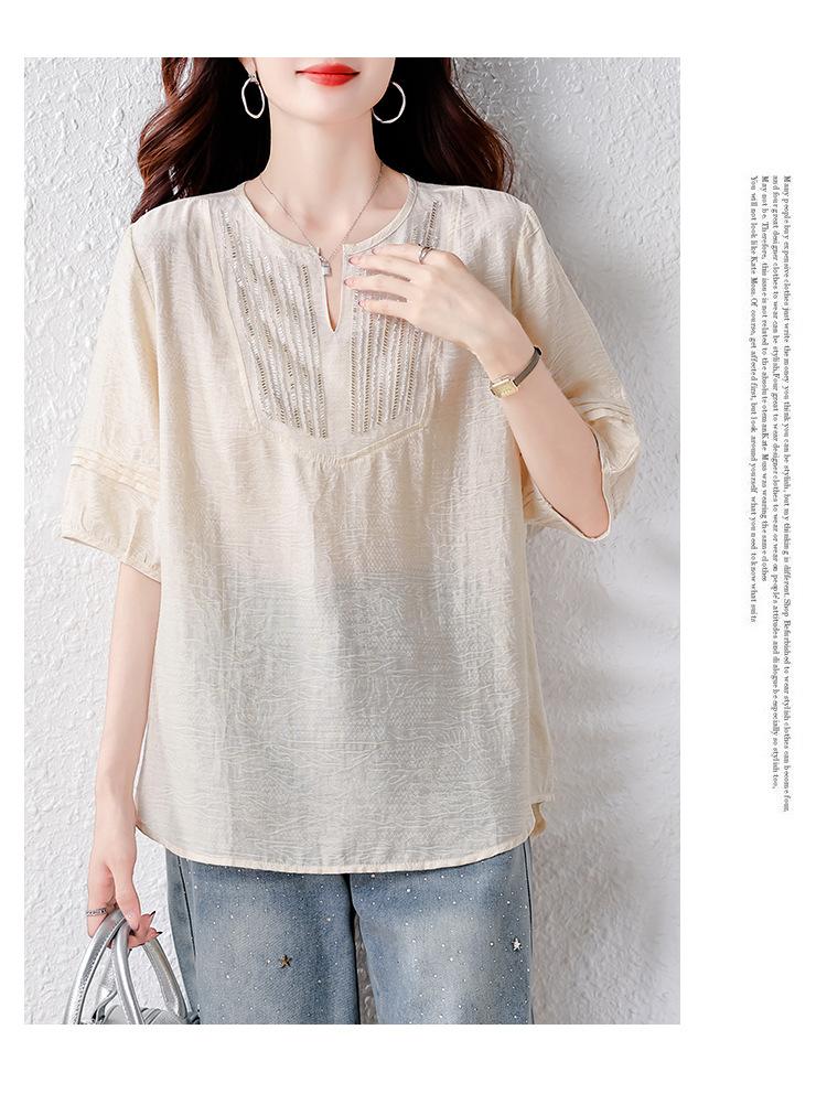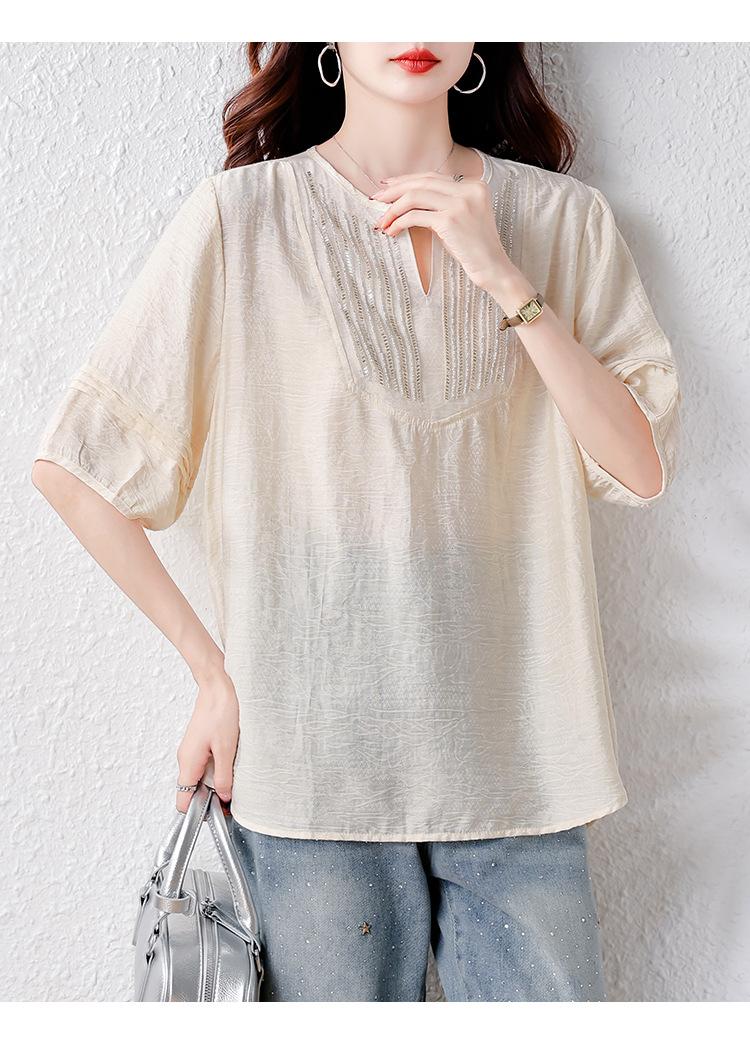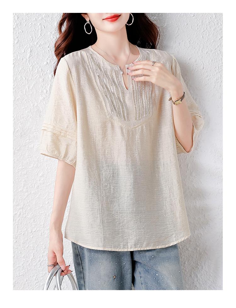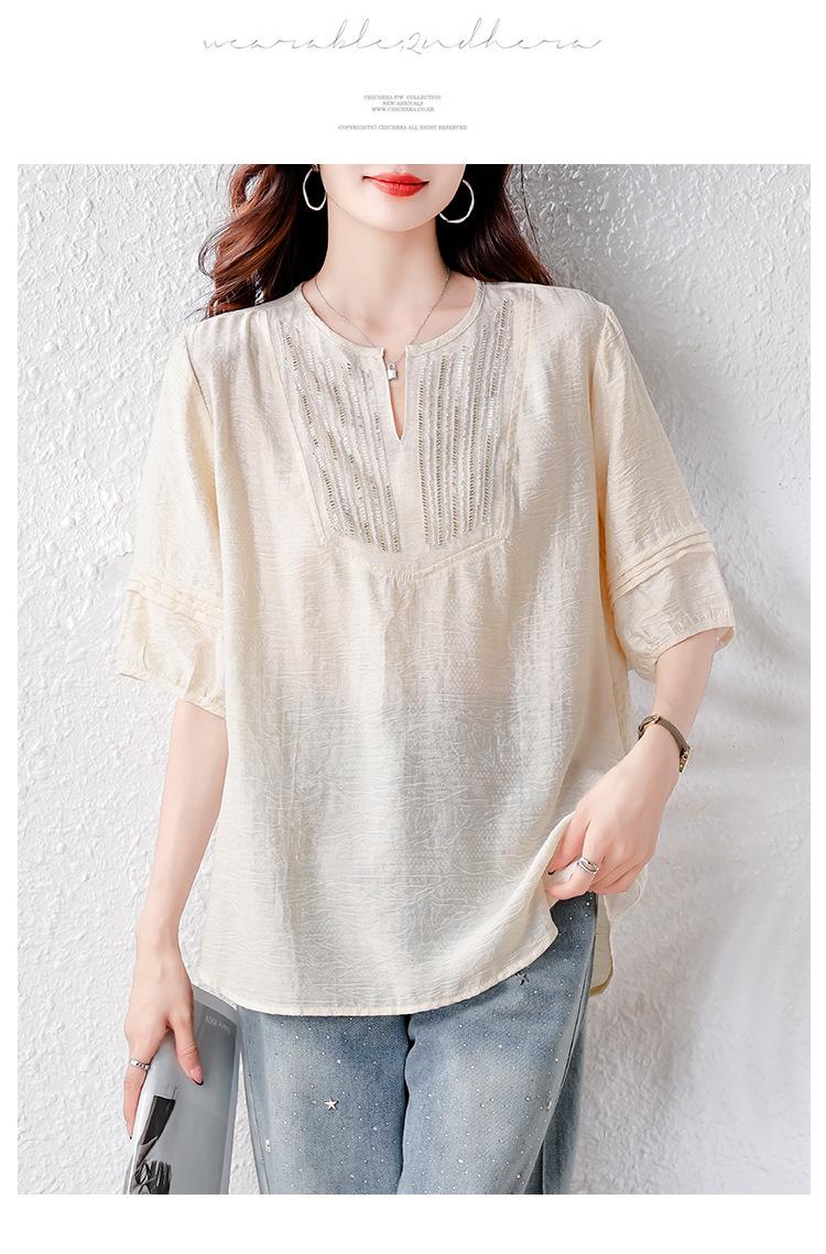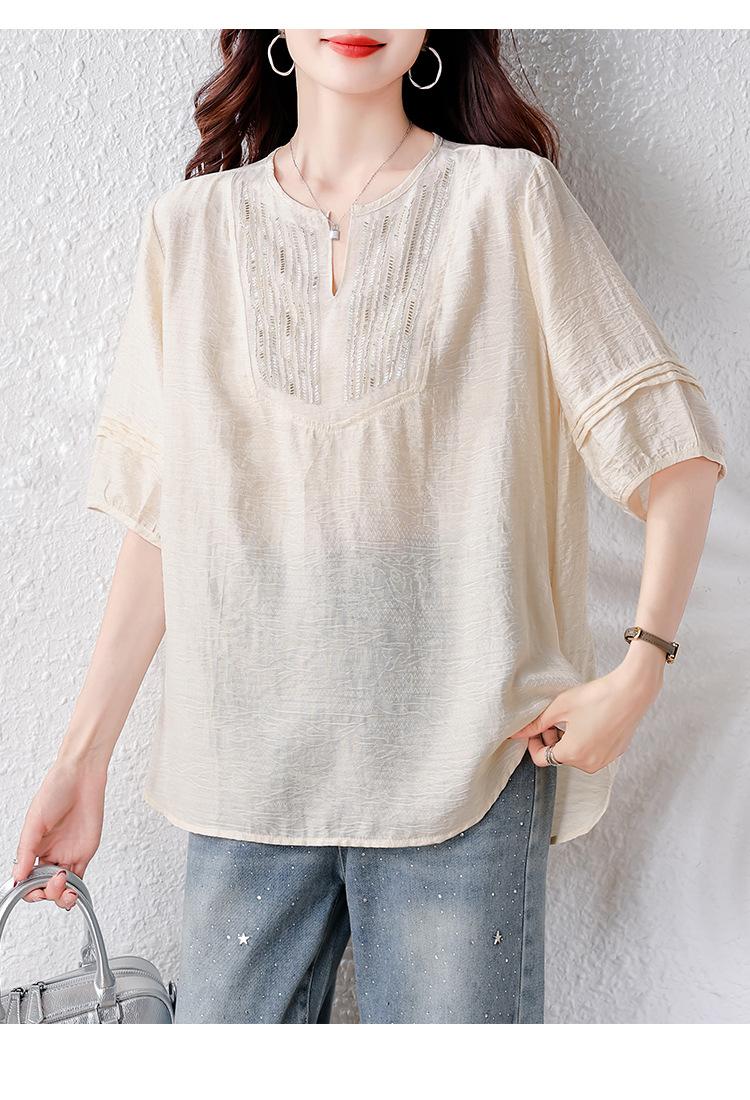 Verano 2025 Jacquard Pesado con Cuentas Holgado Adelgazante Reductor de Edad Cuello Redondo Moda Talla Grande Casual Top de Mujer