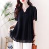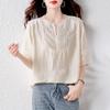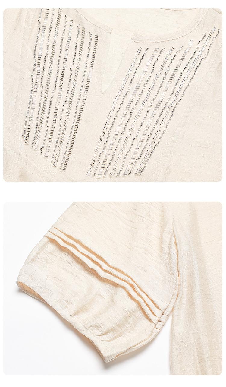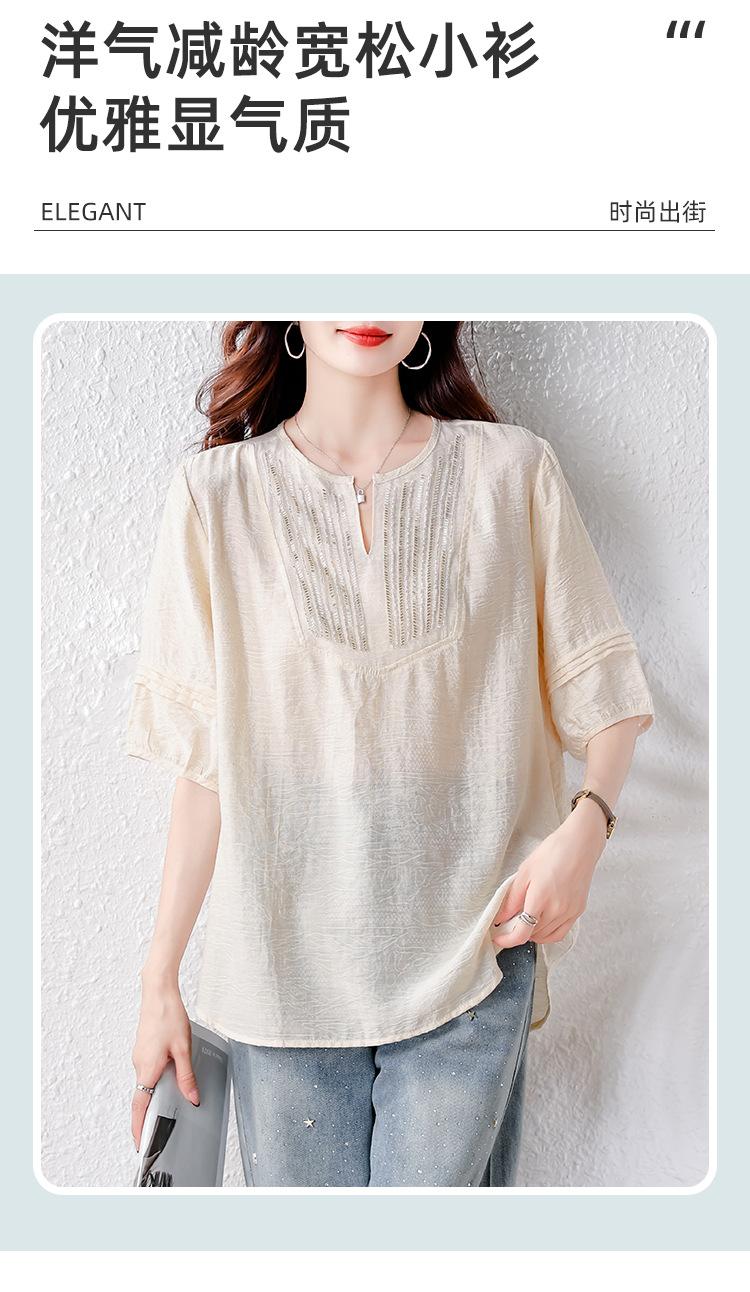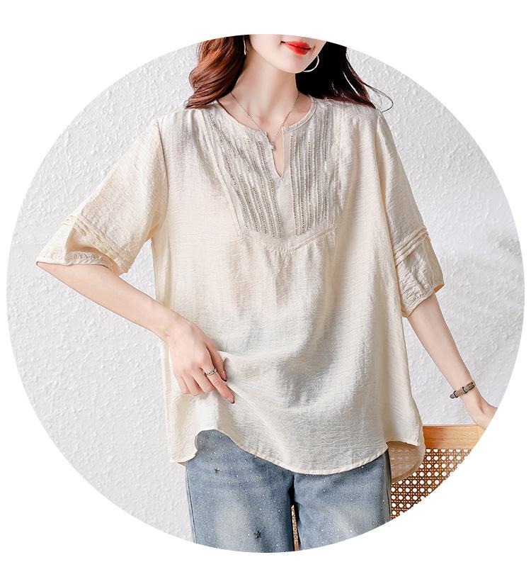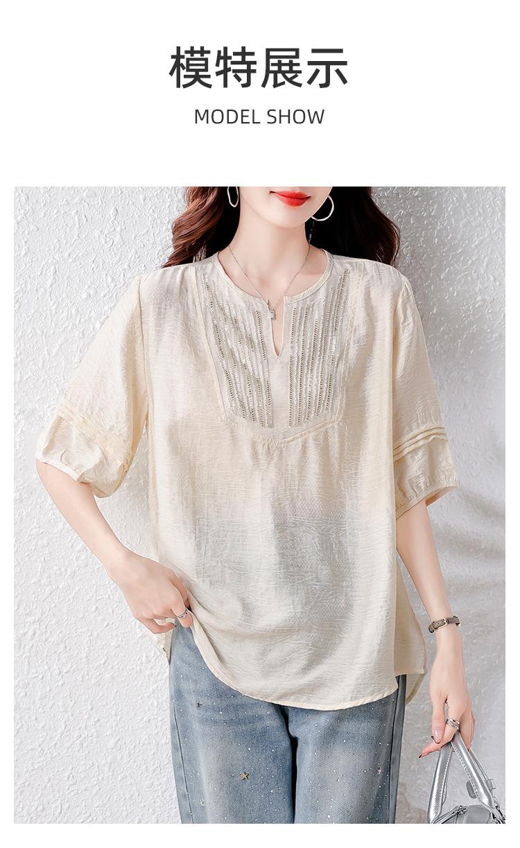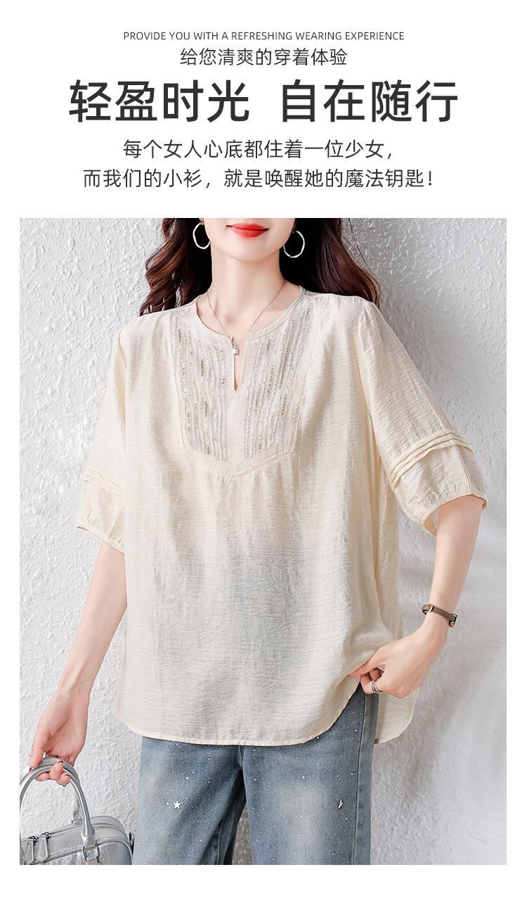 Verano 2025 Jacquard Pesado con Cuentas Holgado Adelgazante Reductor de Edad Cuello Redondo Moda Talla Grande Casual Top de Mujer