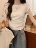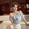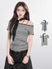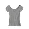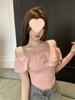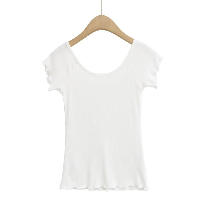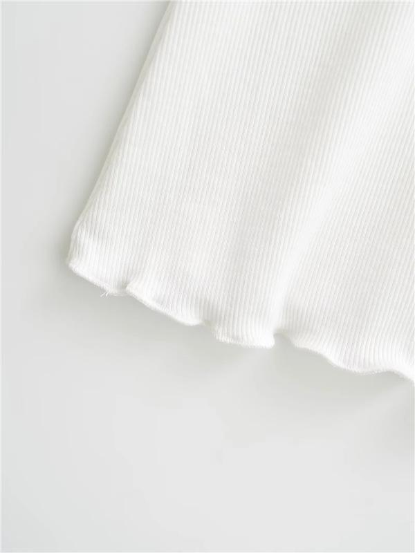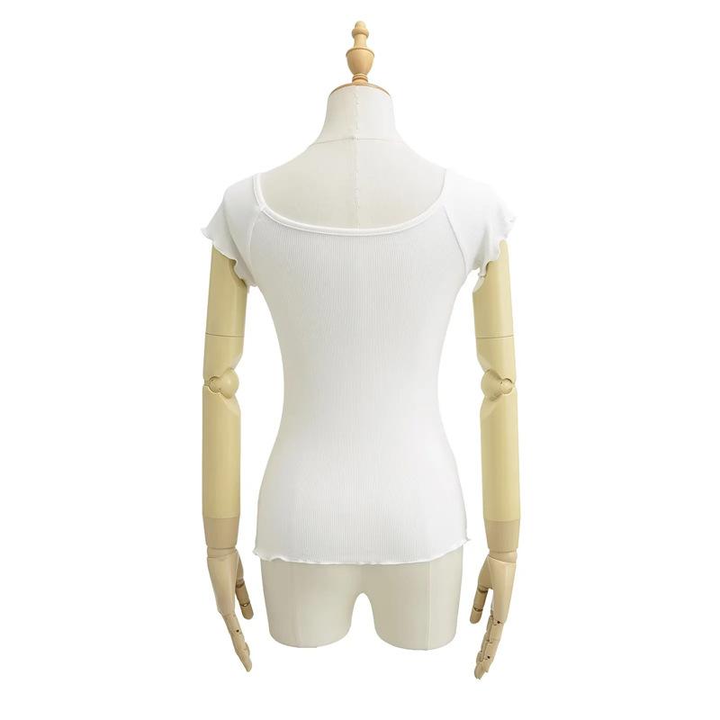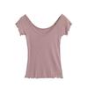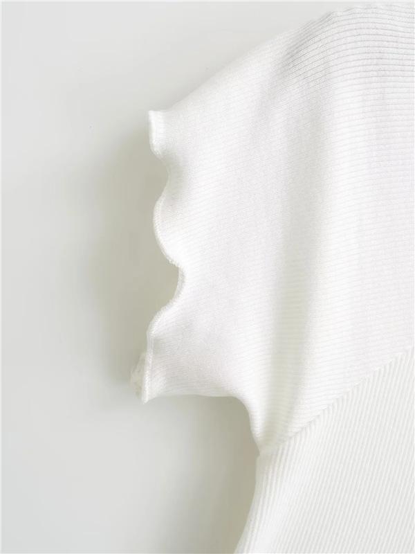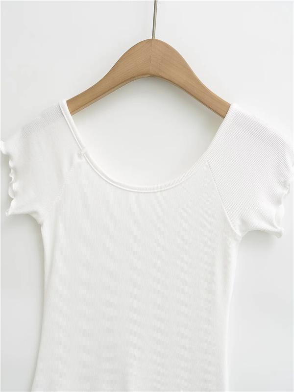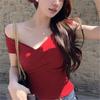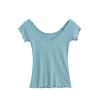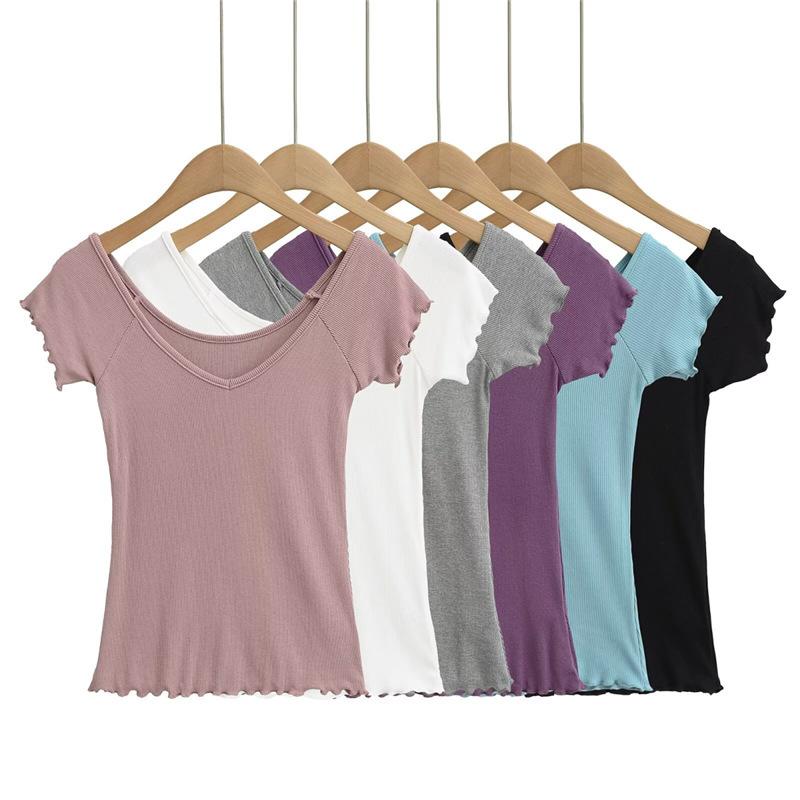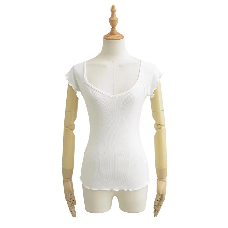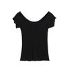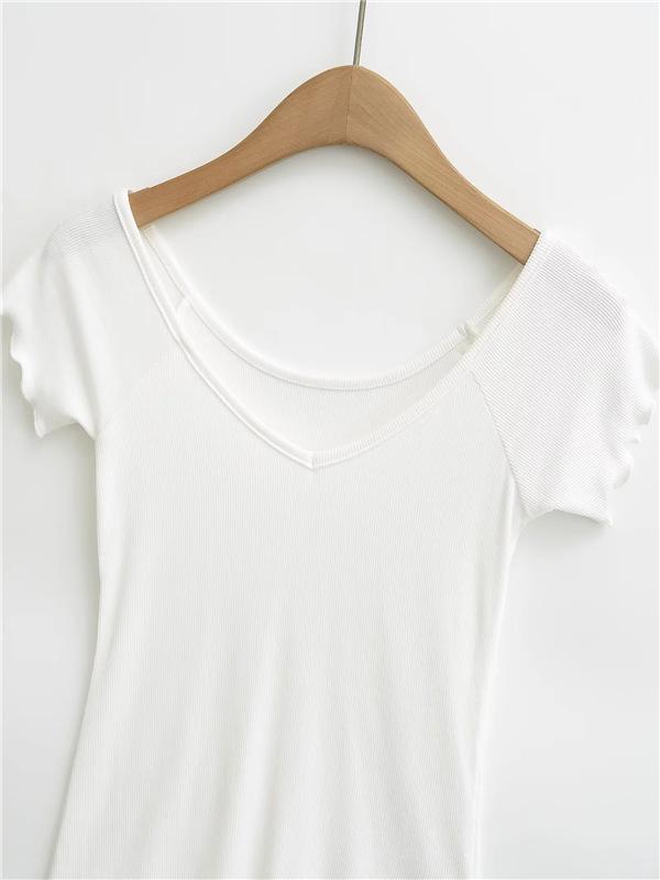 Playera Sexy con Hombros Descubiertos y Manga Corta con Volantes para Mujer, Corte Ajustado con Cuello en V y Mangas Pequeñas con Volantes