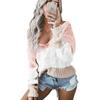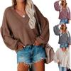 Ropa Nueva de Otoño e Invierno 2025 para Mujer para Exportación Amazon Nueva Prendas de Punto Cuello V Hombro Descubierto Torcido Bloque de Color Suéter Tejido