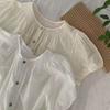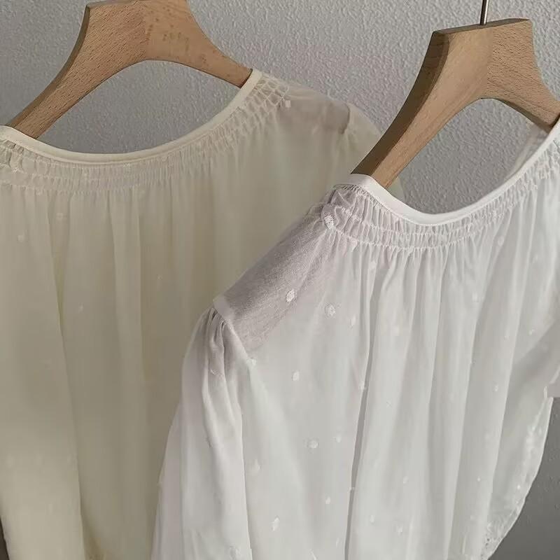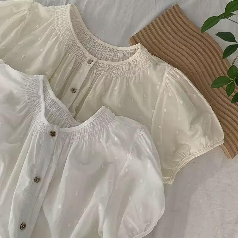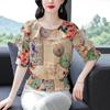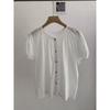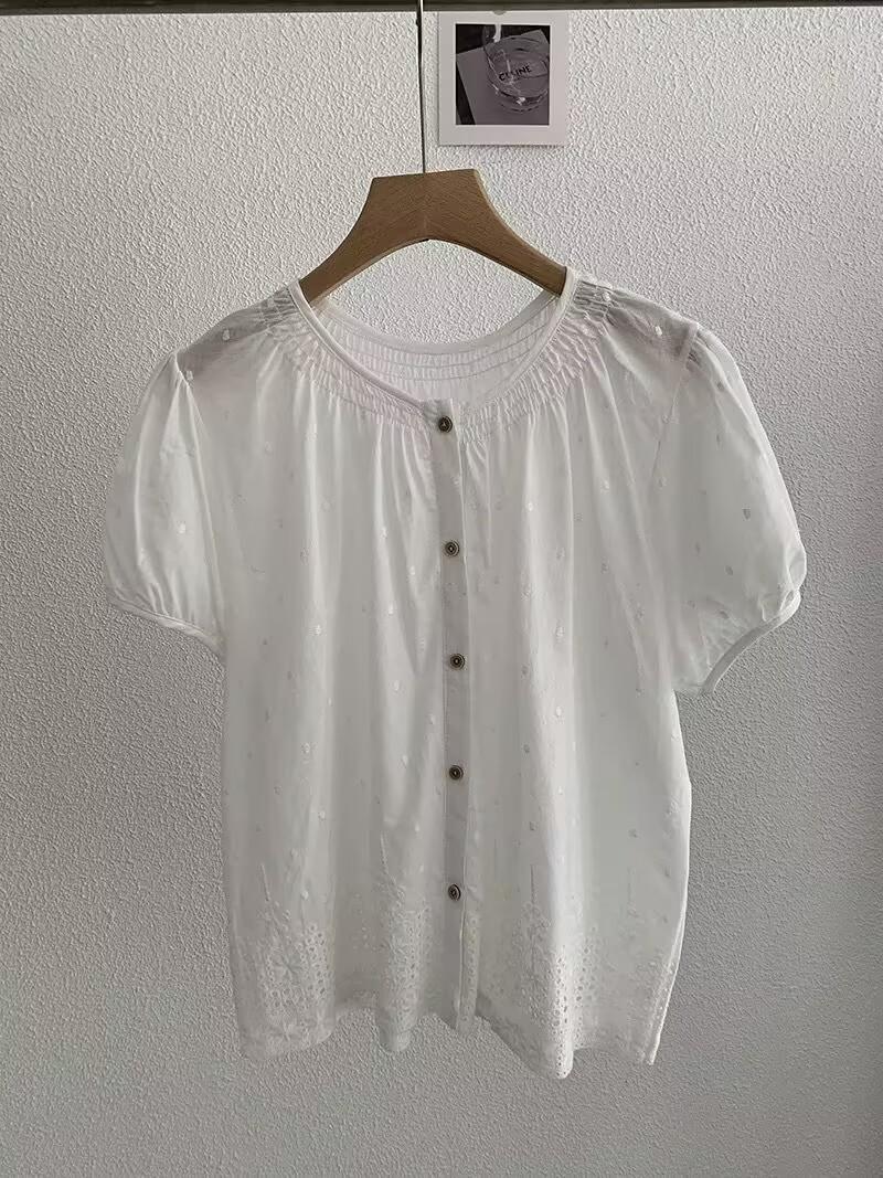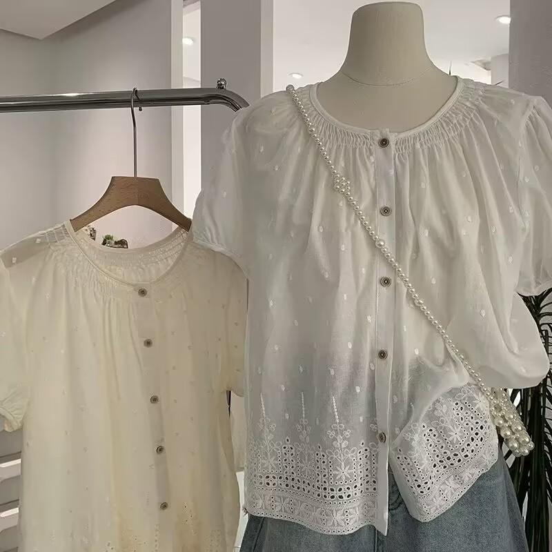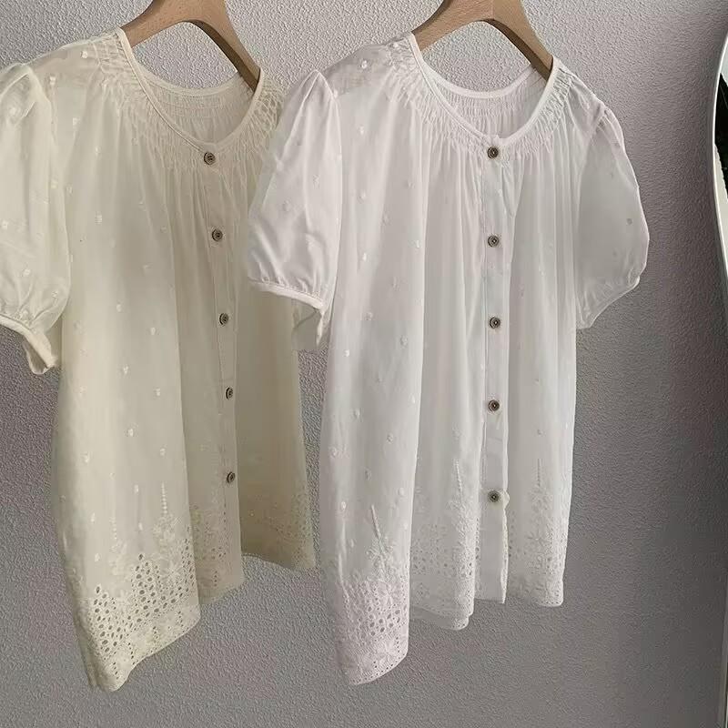 2025 Nueva Moda de Verano Cuello Redondo Manga Corta Bordado Floral Camisa Tops para Mujer