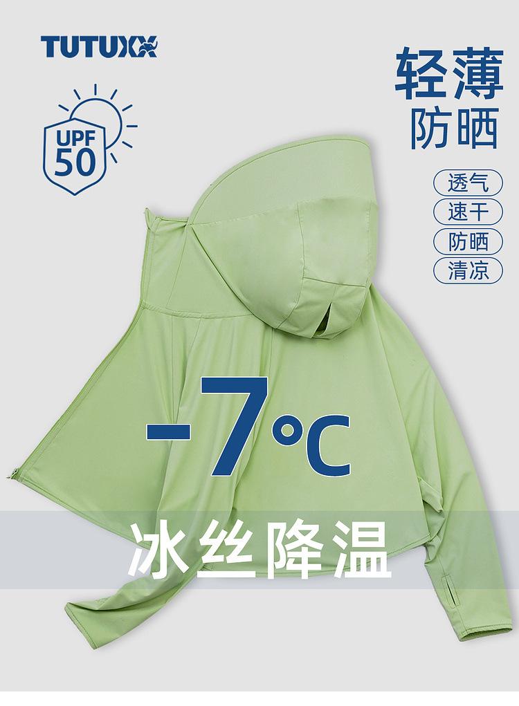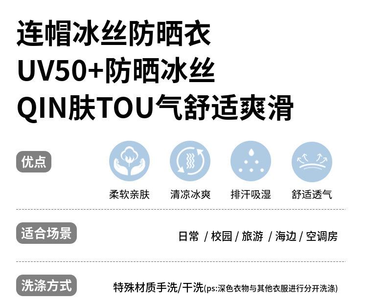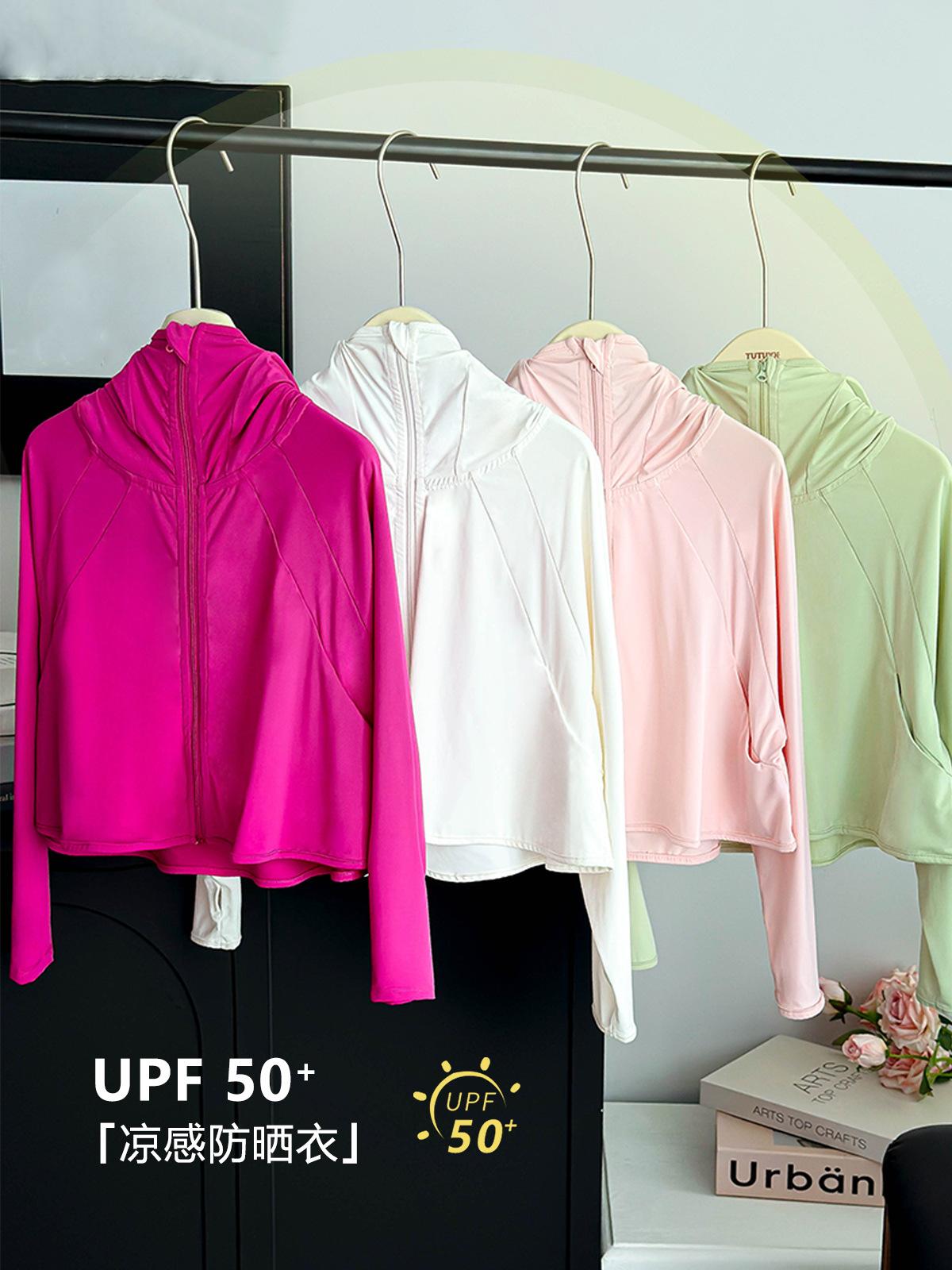 ¡FPU50+! Ropa de Exterior Transpirable con Sensación de Hielo Anti-UV Protección Solar Ropa para la Piel Capa de Verano Holgada Corta para Mujer