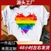 Amazon deseo transfronterizo europeo y americano divertido amor estampado patrón cuello redondo manga corta camiseta top de mujer