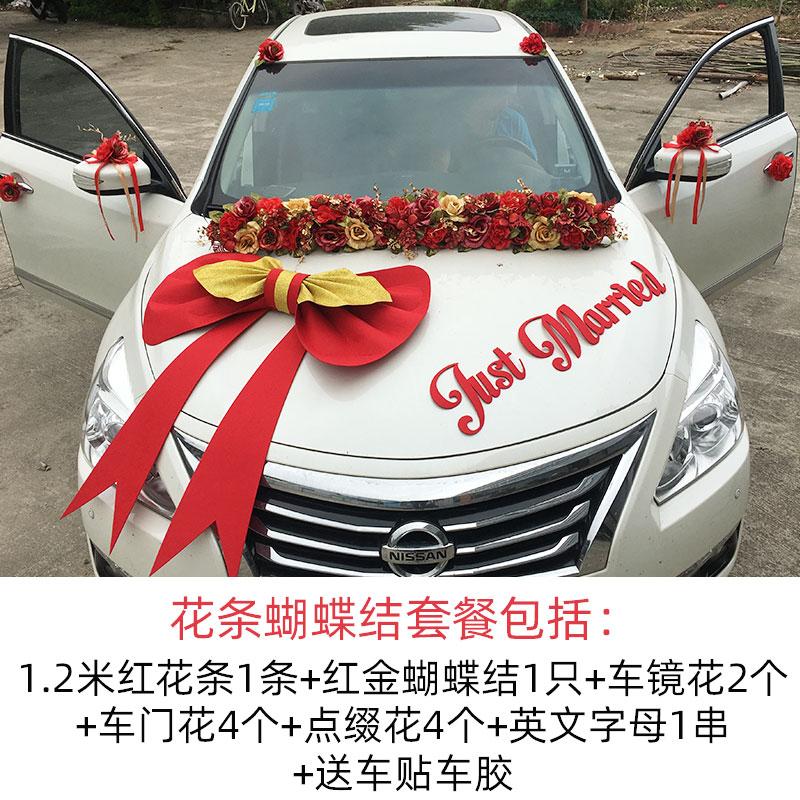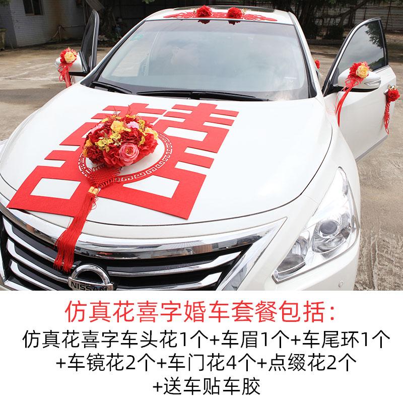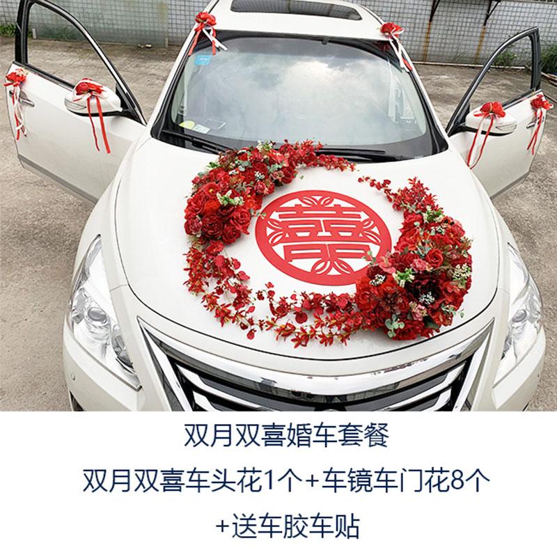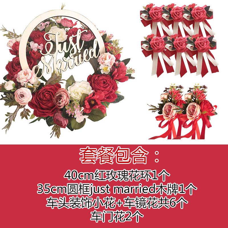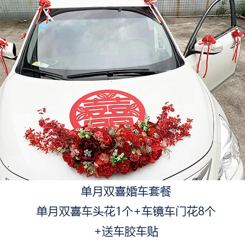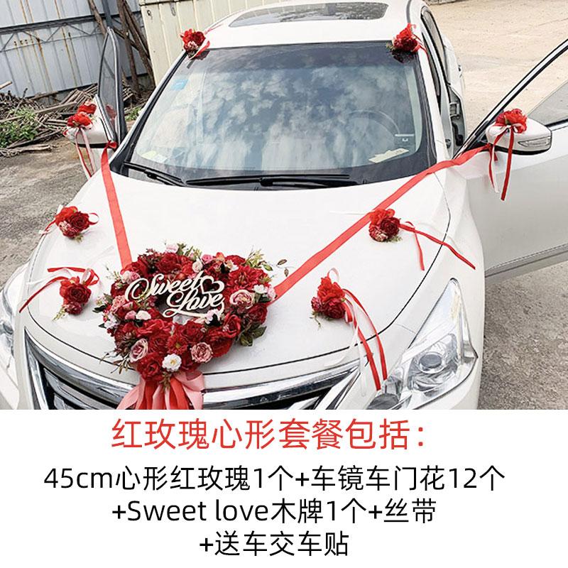 . Decoración principal para el coche de bodas de Mori, traje de flores para la cabeza del coche, pequeño libro rojo, nudo de rosas, disposición del equipo secundario de boda no fresco