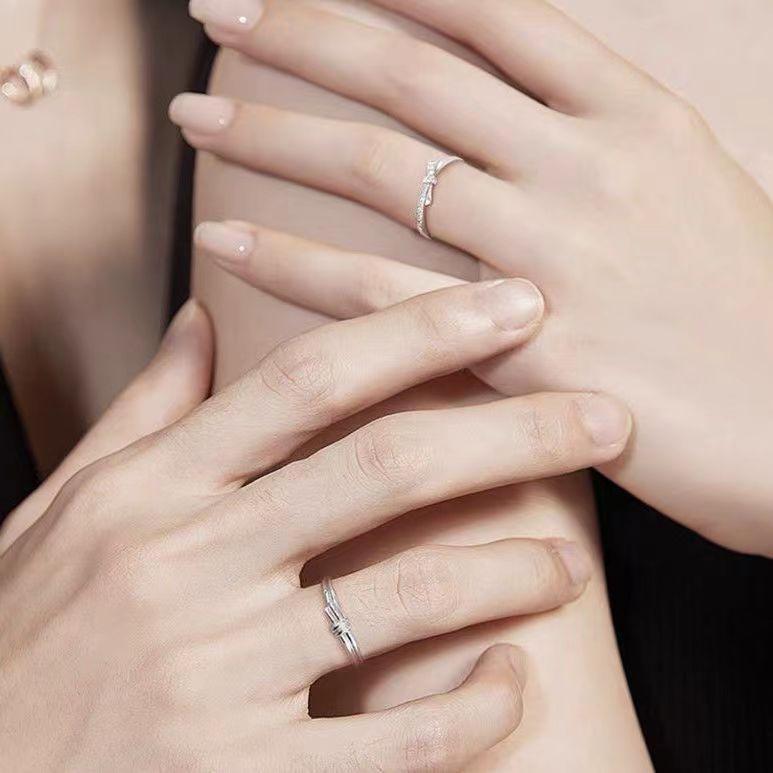 Anillo de Amor Simple Lazo Anillo de Pareja Viento Frío Abertura Ajustable Celebridad de Internet Un Par de Regalo de Pareja de Lujo Ligero