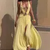 Ropa de Mujer Estilo Europeo y Americano Amazon 2023 Nueva Moda de Primavera y Verano Sexy Vestido Slim con Abertura y Tirantes para Mujer