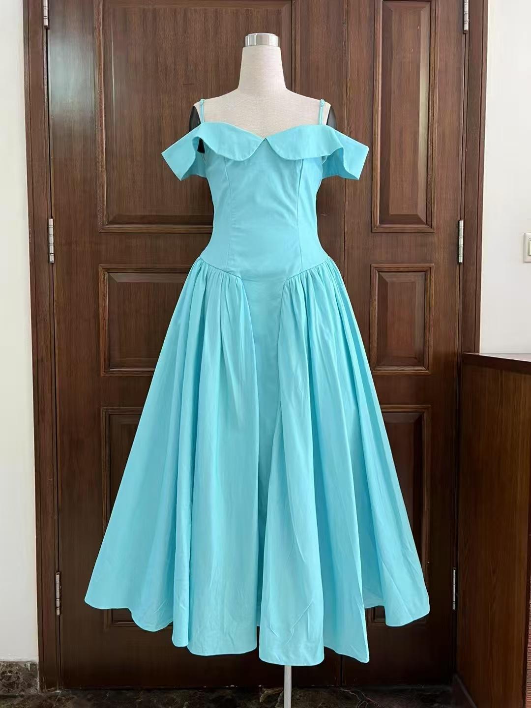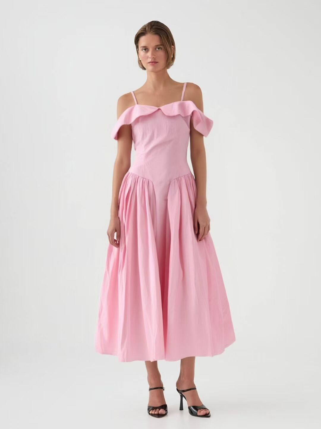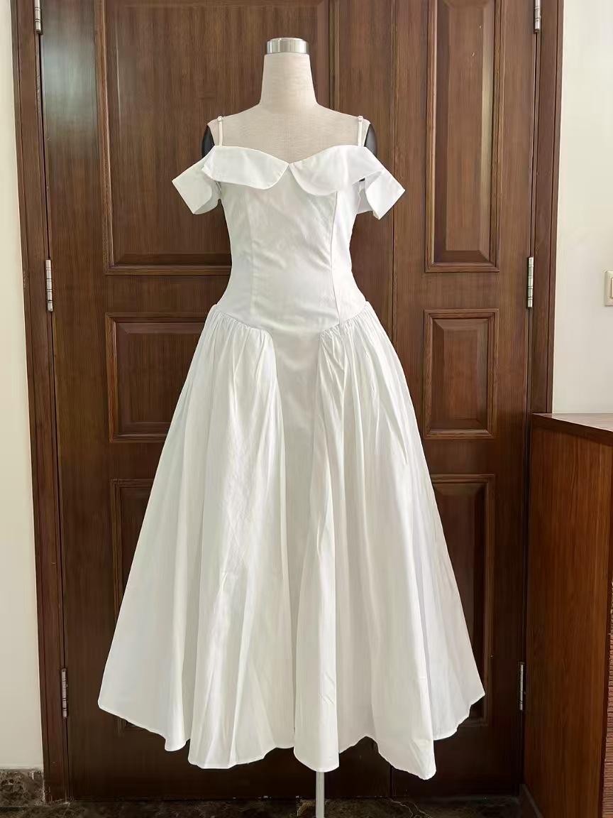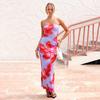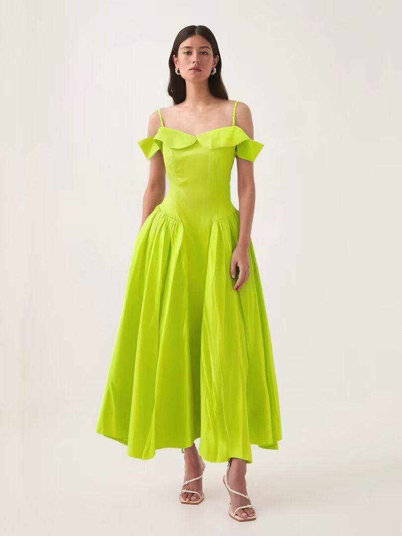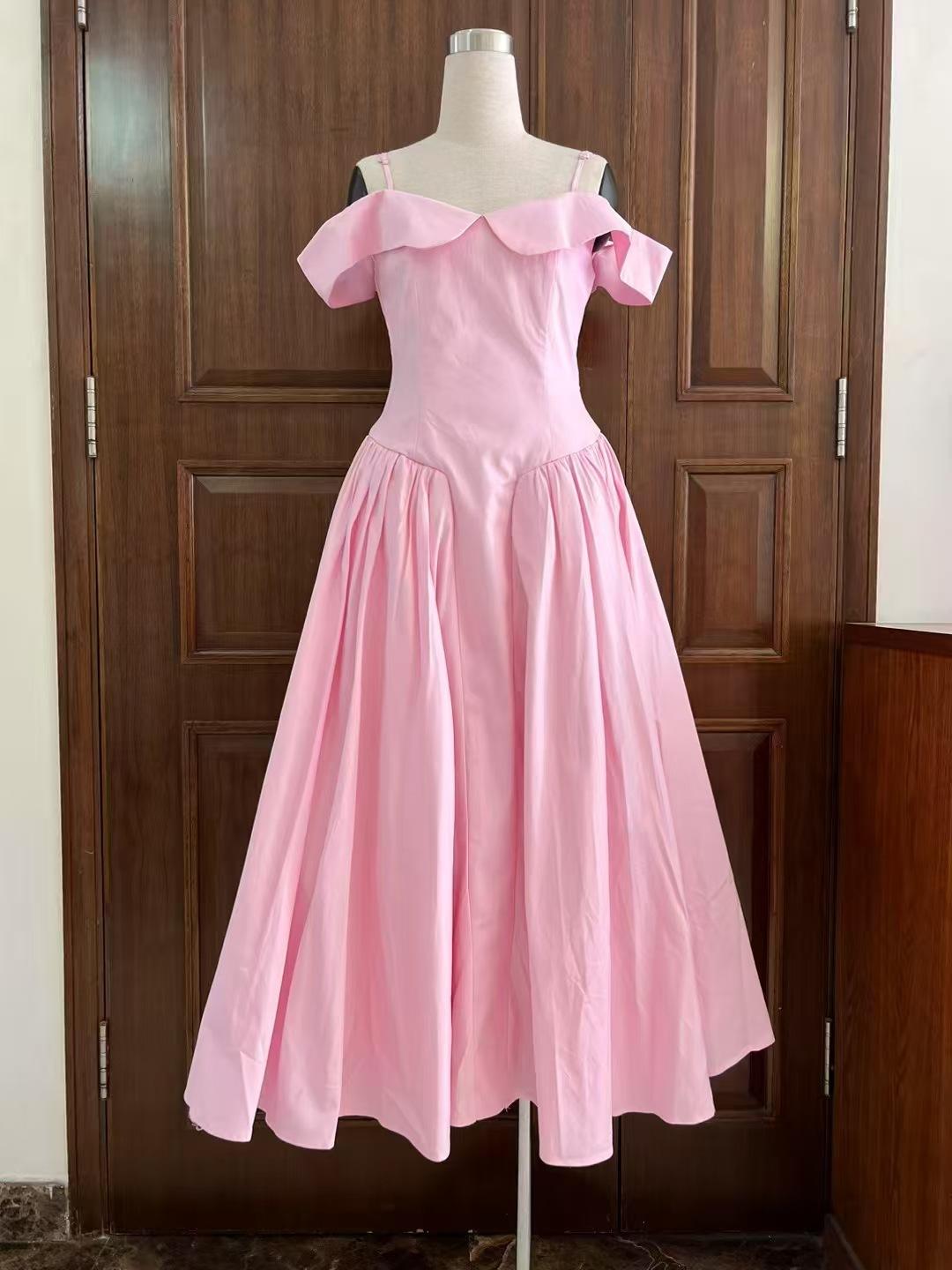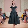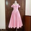 Top de tubo europeo y americano cruzado de manga corta con tirantes y falda larga 2025 Primavera y Verano Nuevo Cintura Línea A Vestido Midi