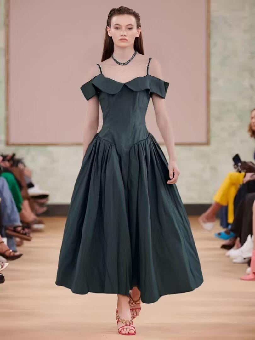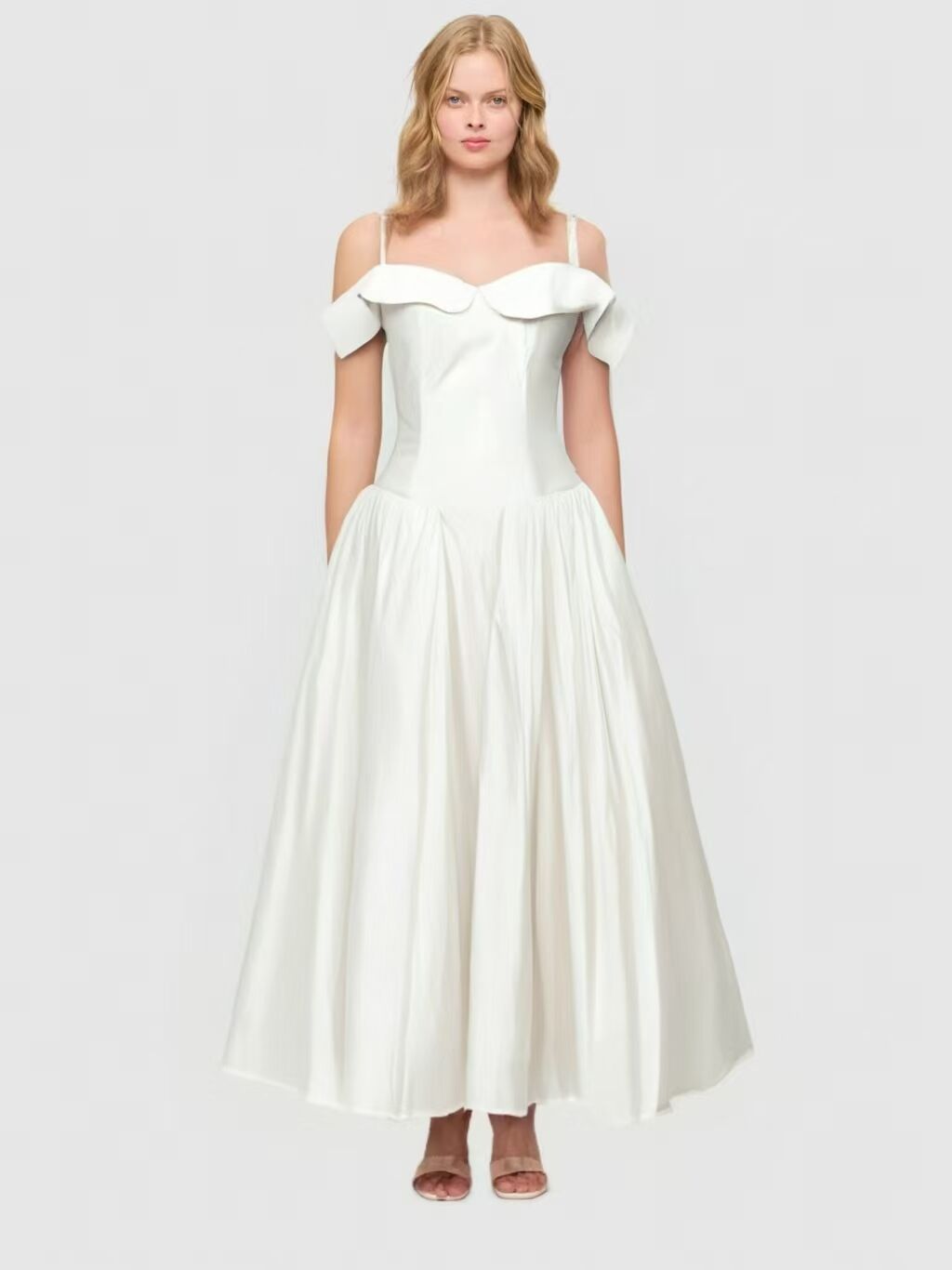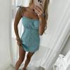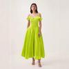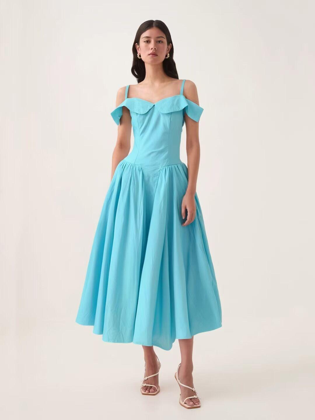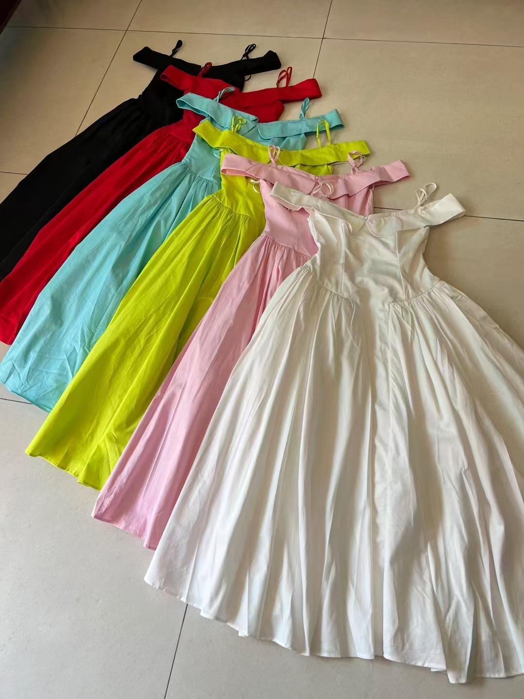Top de tubo europeo y americano cruzado de manga corta con tirantes y falda larga 2025 Primavera y Verano Nuevo Cintura Línea A Vestido Midi