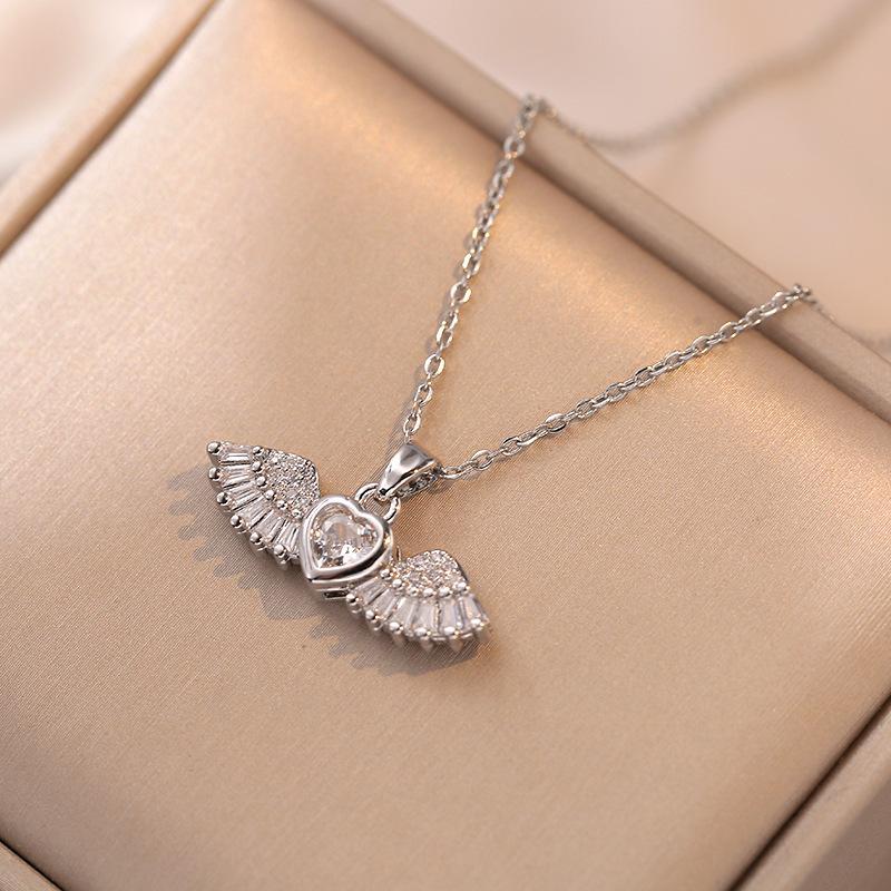 Collar para Mujer Versión Coreana Celebridad de Internet Corazón de Ángel Zircón Nicho Nuevo Diseño Colgante Temperamento Collar de Acero Titanio