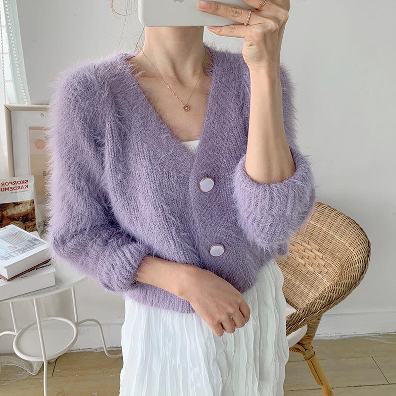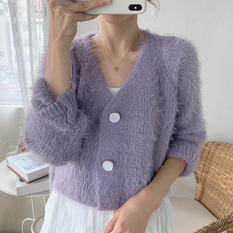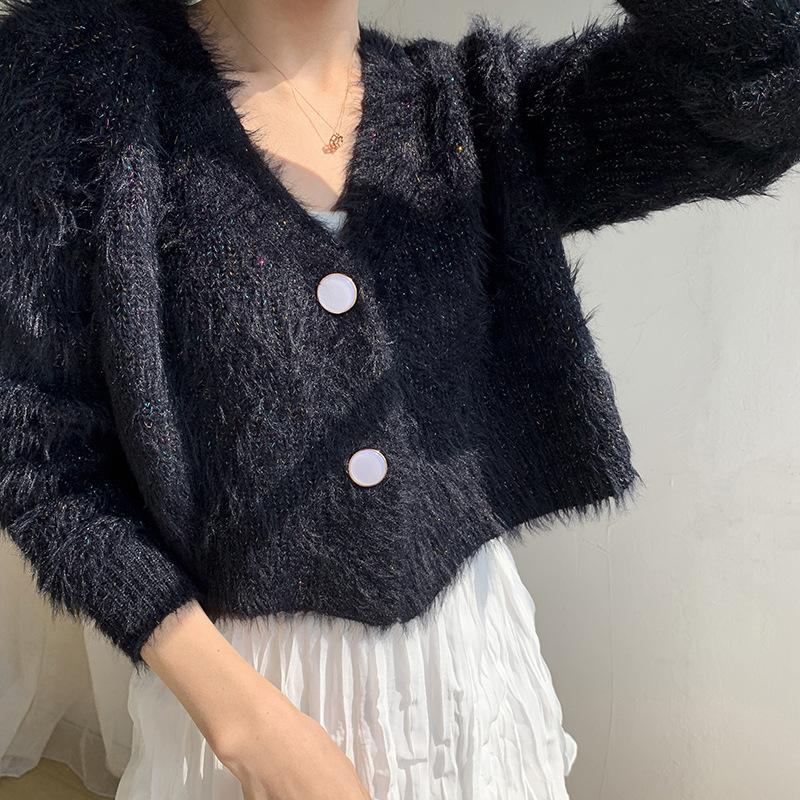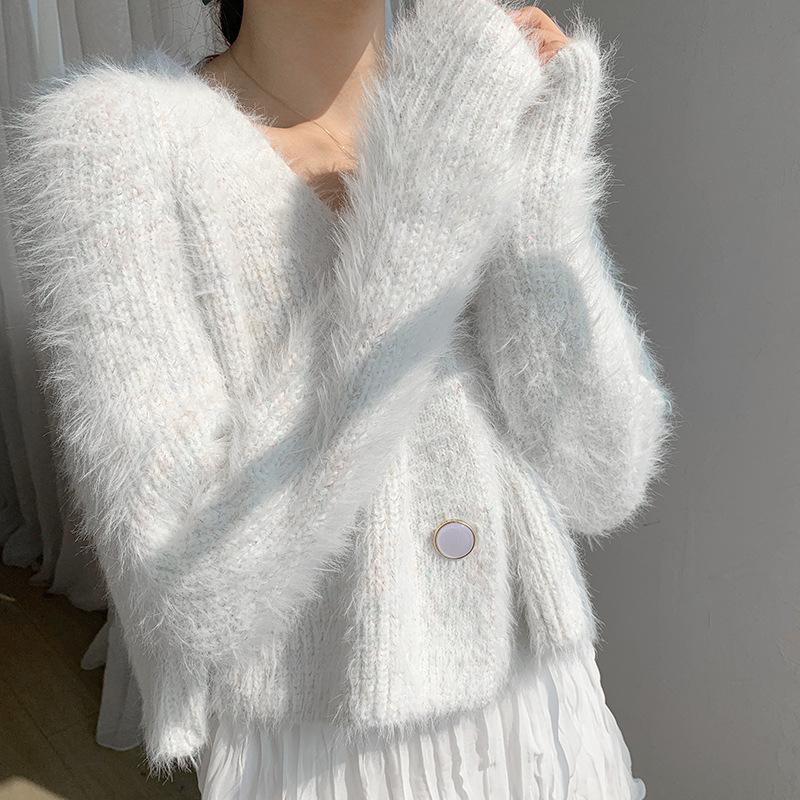 Suéter Mauhair Estilo Perezoso para Mujer Holgado Ropa Exterior Otoño e Invierno Estilo Occidental Combinable Cárdigan de Punto Chaqueta Gruesa Top