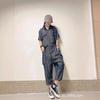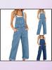 Mono Retro sin Espalda con Lazo de 4 Colores Verano Bolsillo Lateral Overol Holgado Pantalones de Pierna Ancha