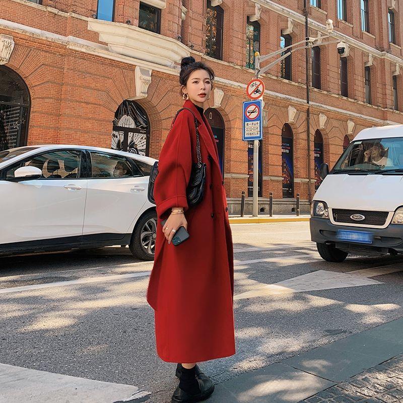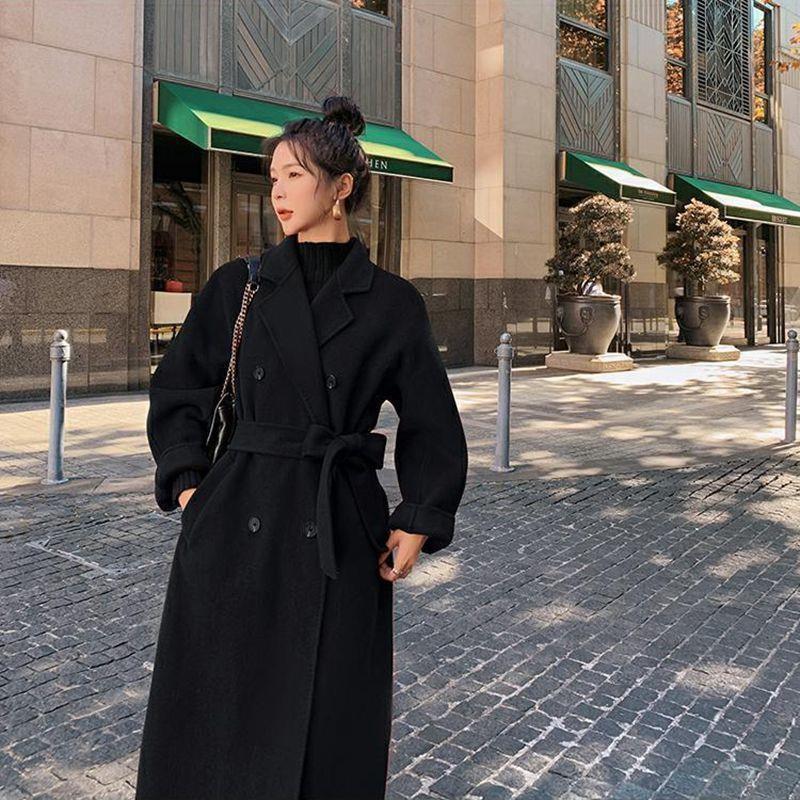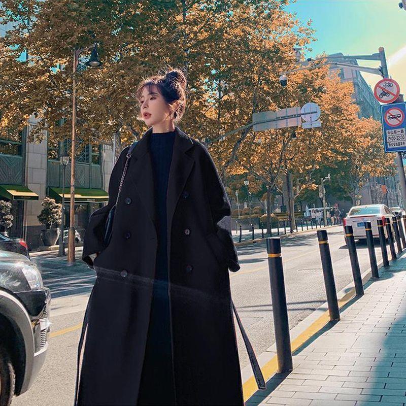 Talla grande para mujer nuevo abrigo de lana de otoño e invierno para mujer largo 200 kg ajustado hasta la rodilla abrigo de lana