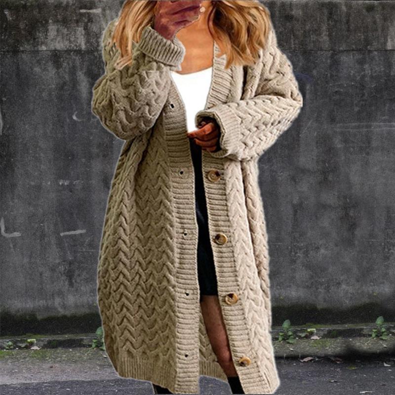 2025 Aliexpress Amazon Otoño e Invierno Cárdigan de Punto Largo Trenzado con Botones Suéter Holgado Tops Top de Mujer