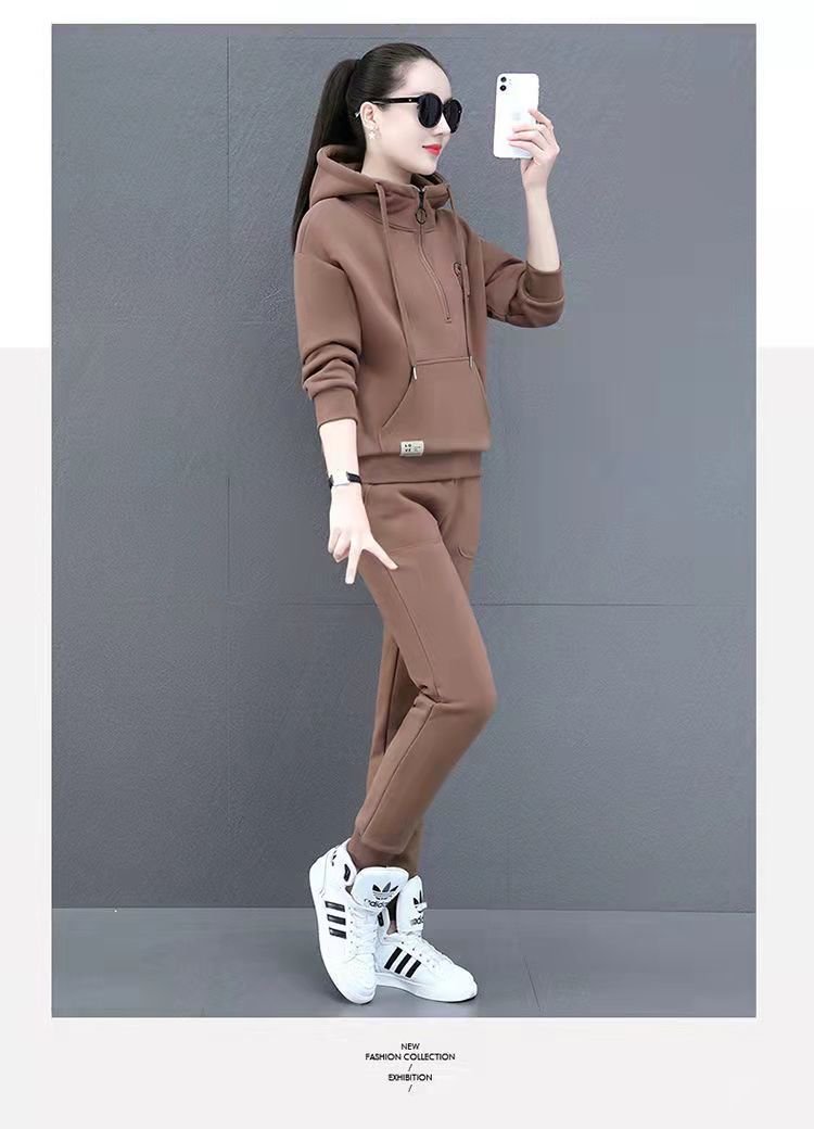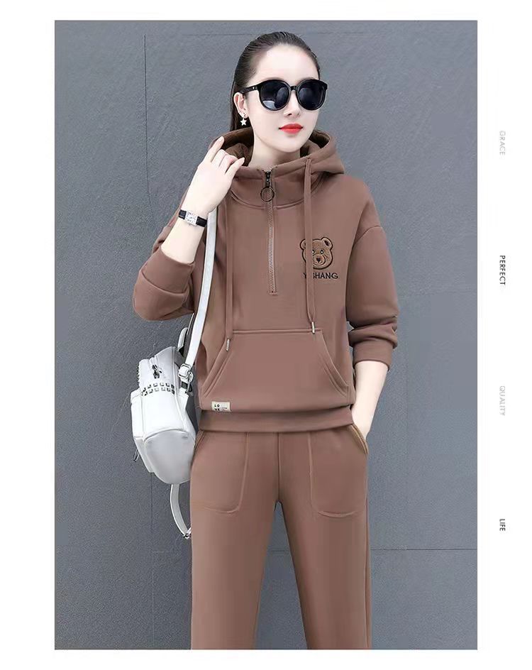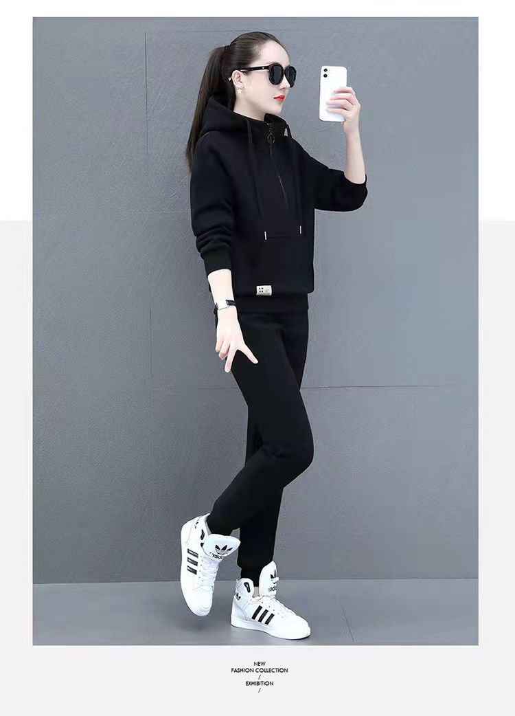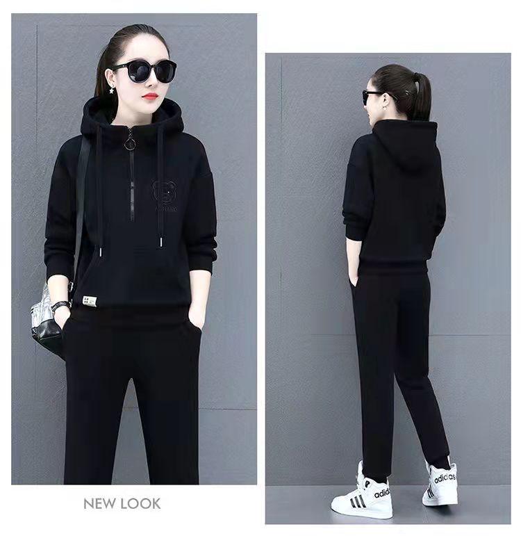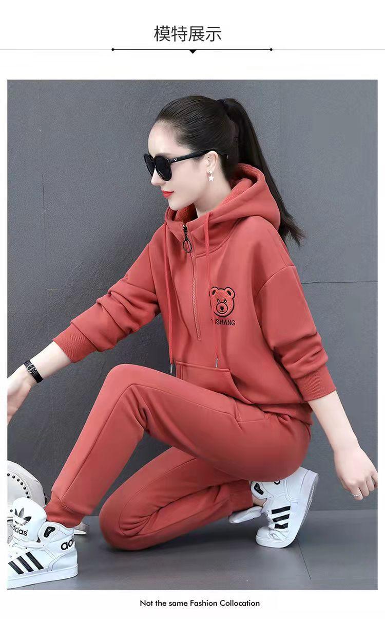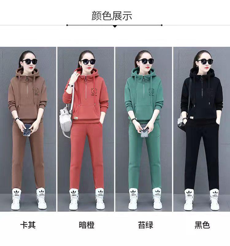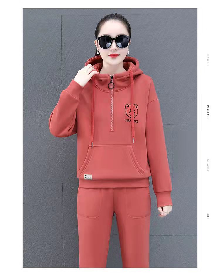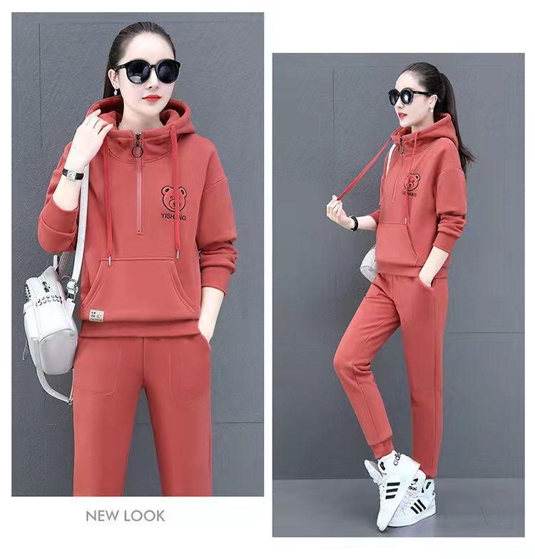 Traje Deportivo de Terciopelo Grueso para Mujer Ropa de Otoño e Invierno 2025 Nuevo Sudadera con Capucha Jersey Ropa Casual Conjunto de Dos Piezas Estilo Occidental