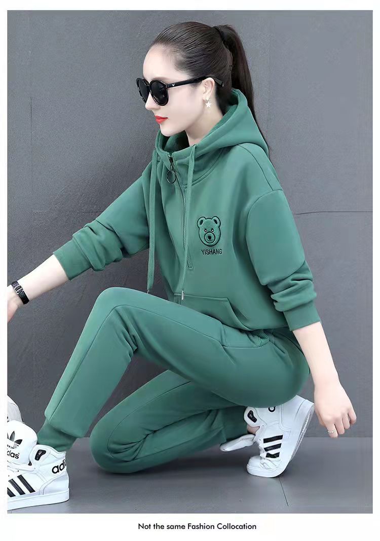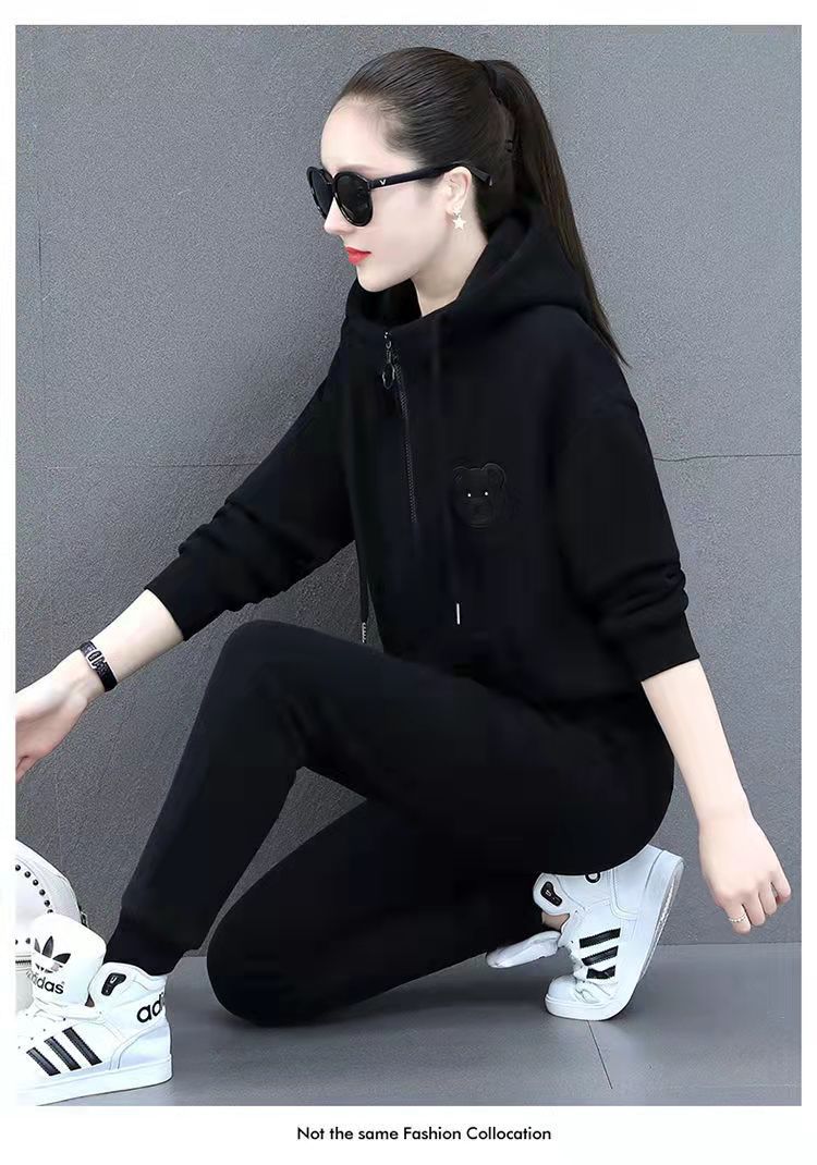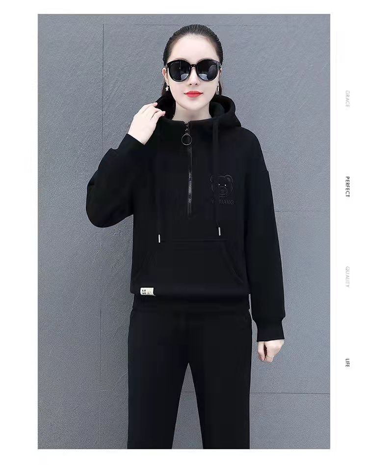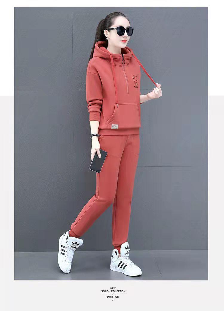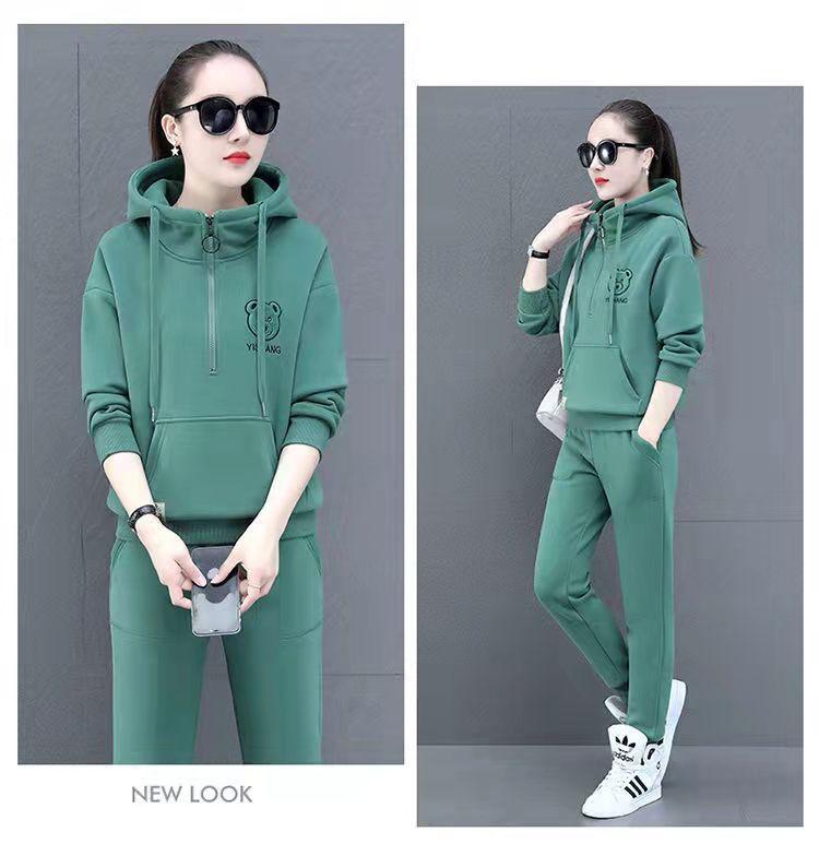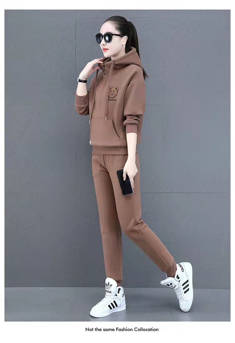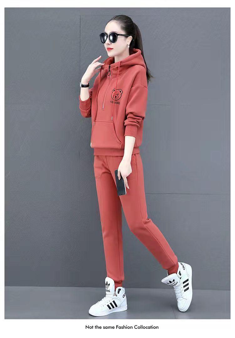 Traje Deportivo de Terciopelo Grueso para Mujer Ropa de Otoño e Invierno 2025 Nuevo Sudadera con Capucha Jersey Ropa Casual Conjunto de Dos Piezas Estilo Occidental