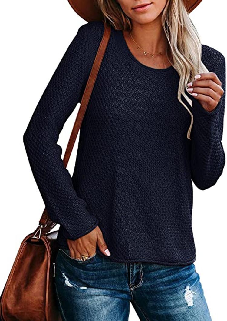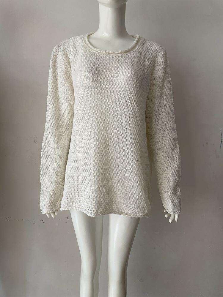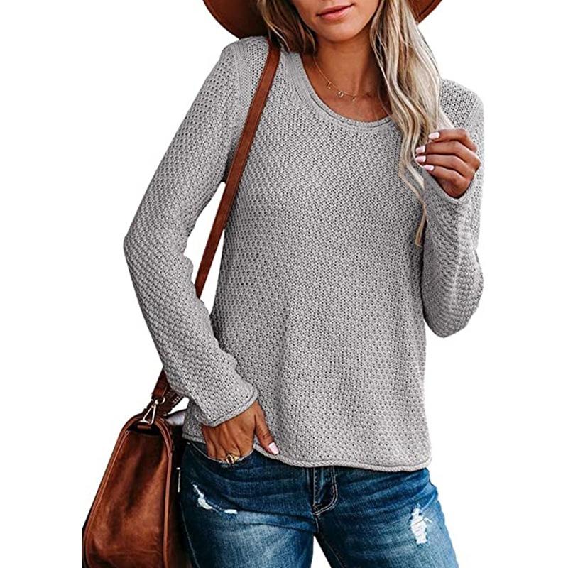 Suéter de punto nuevo de comercio exterior europeo y americano para mujer, otoño e invierno, suéter de cuello redondo, suéter holgado de hombro caído, abrigo de punto