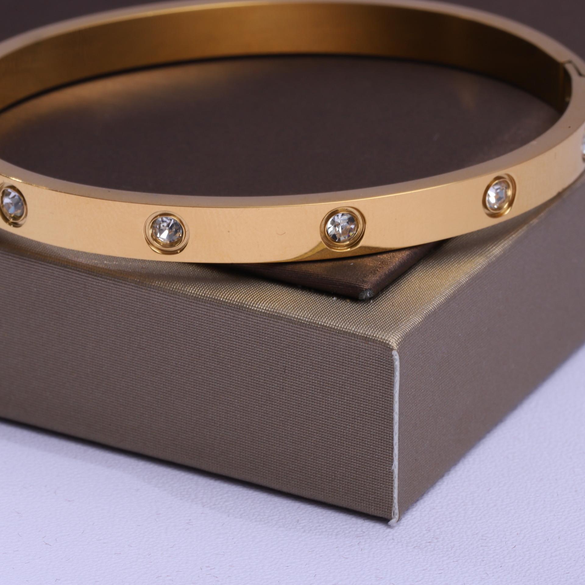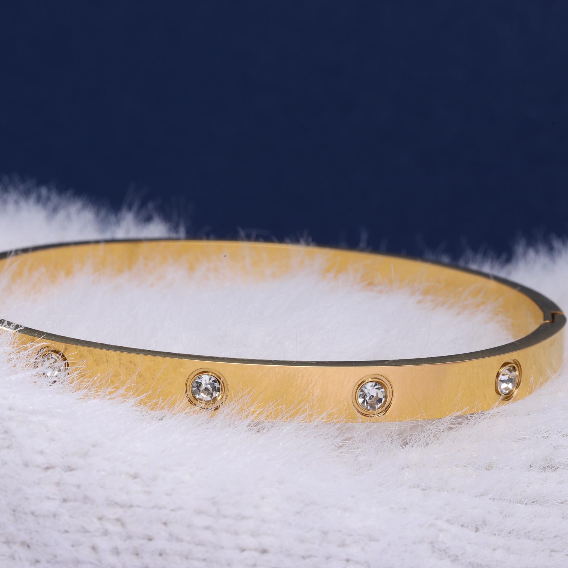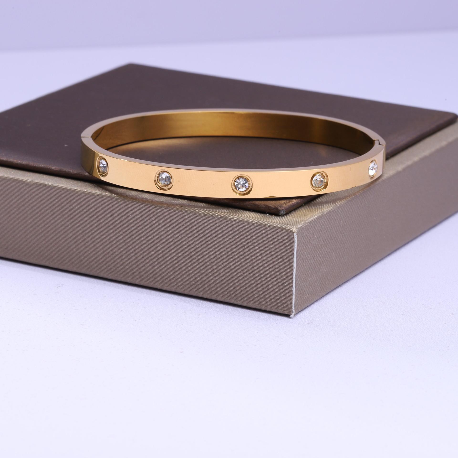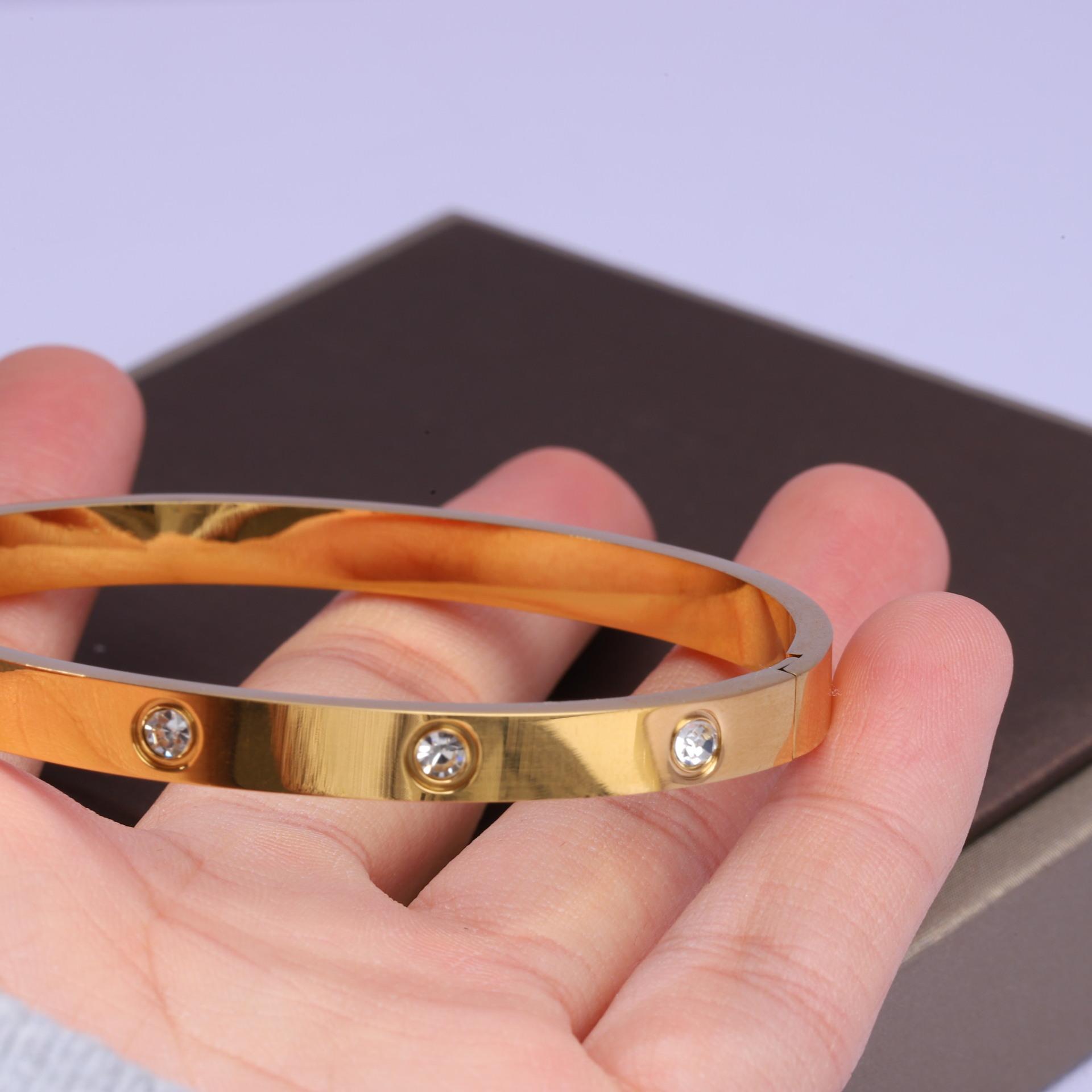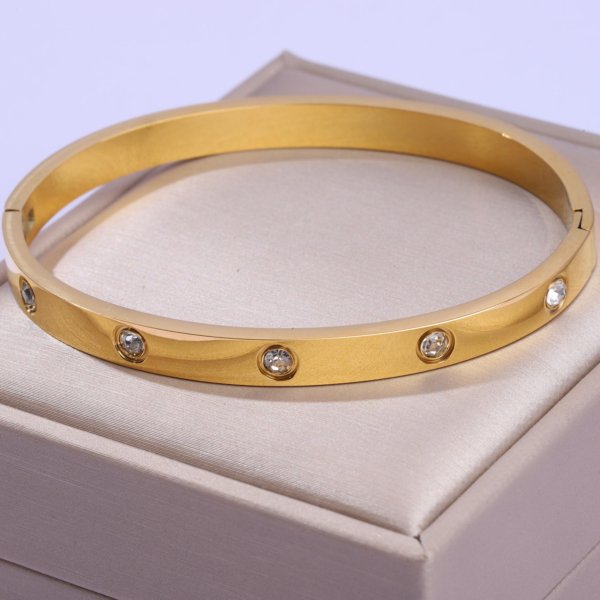 Pulsera de acero inoxidable transfronteriza acero titanio diez diamantes completos hebilla pulsera rojo neto moda temperamento pulsera