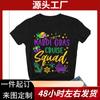 Camiseta Estampada con Patrón de Letras de Mardi Gras de Nueva Orleans 2025 Nueva Exportación Europea y Americana