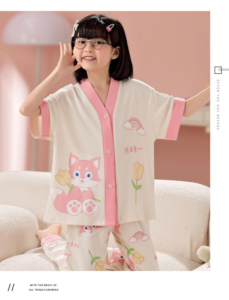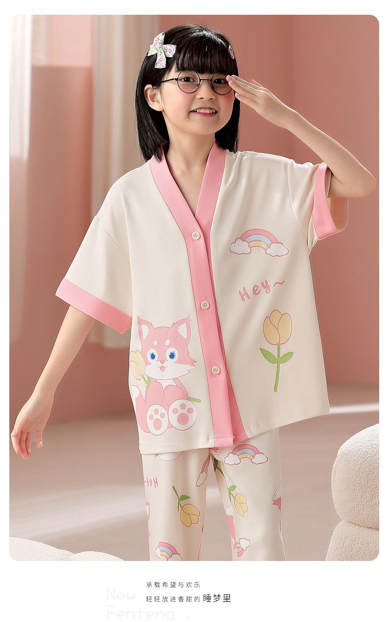 Pijamas para niños, pantalones de manga corta, estilo princesa fino, traje para niñas, ropa de verano para niñas lindas, ropa de hogar para niños grandes, ropa exterior