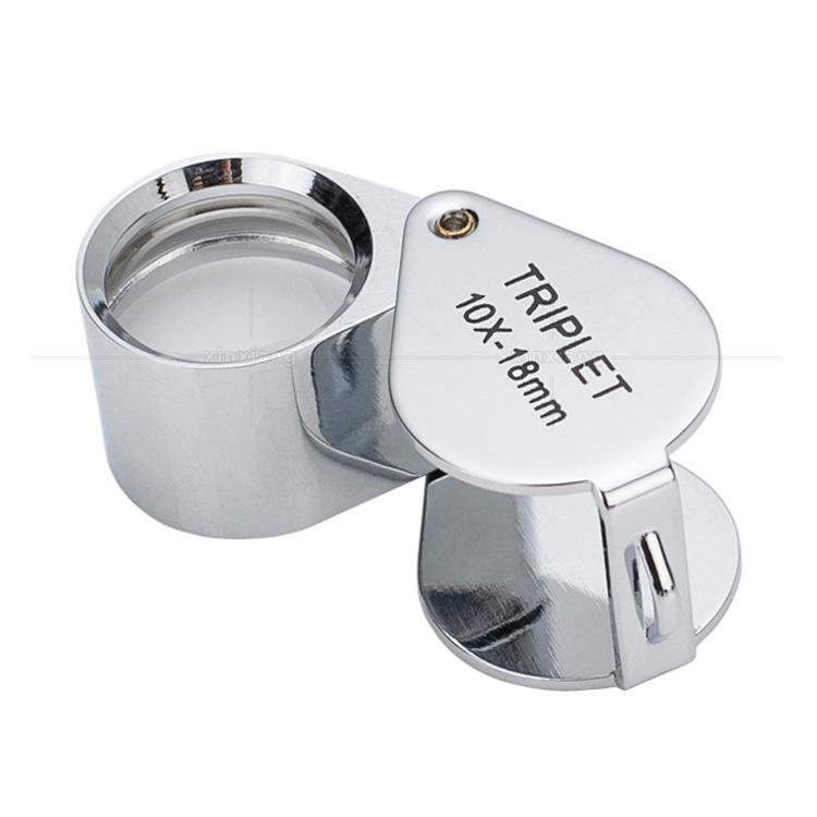 Lente de cristal totalmente óptica 10x18mm lupa plegable exportación de comercio exterior identificación joyería de palo de rosa lobulada antigua