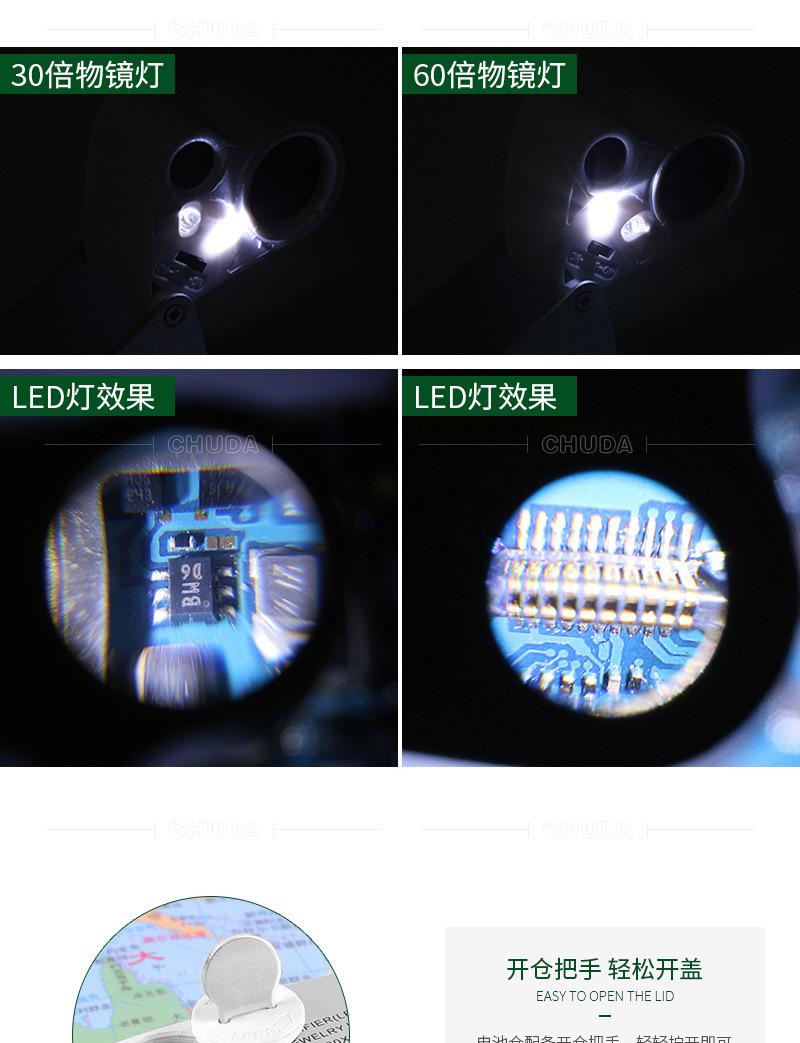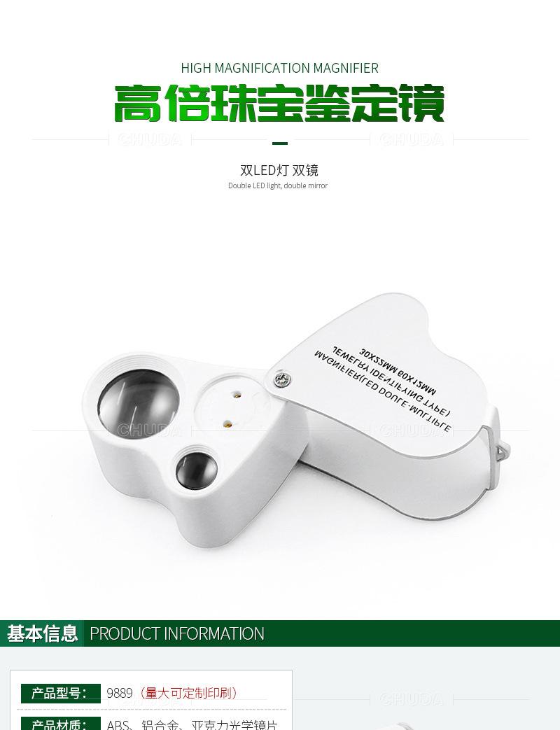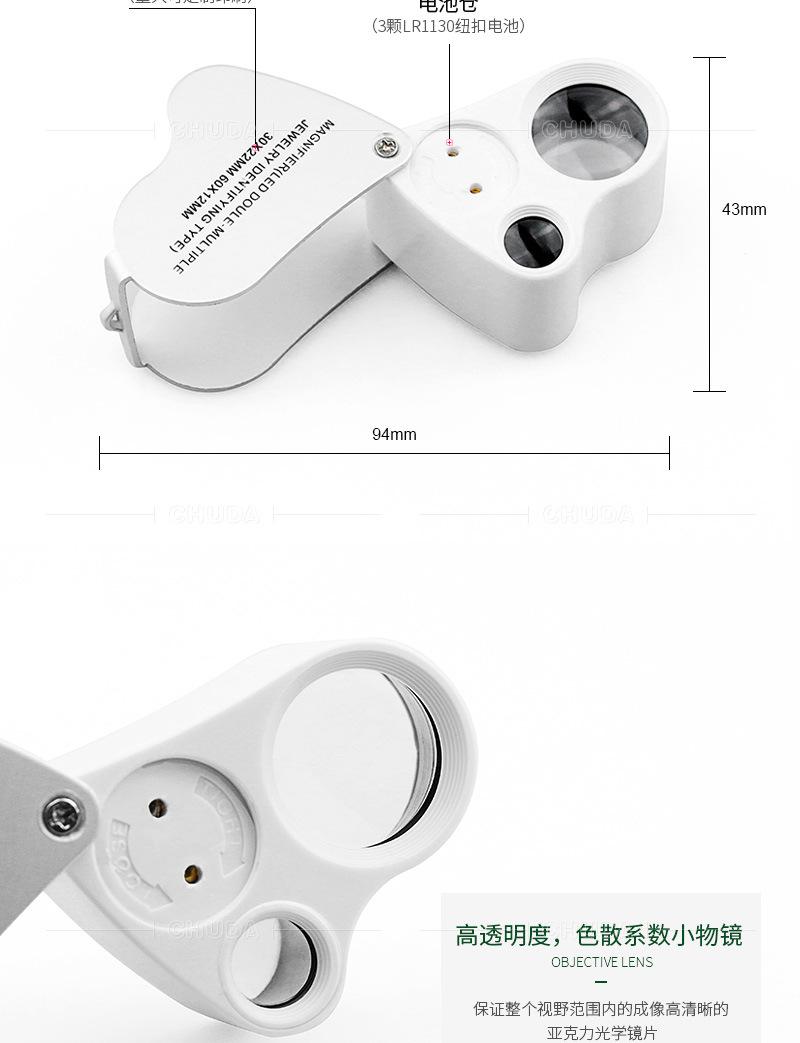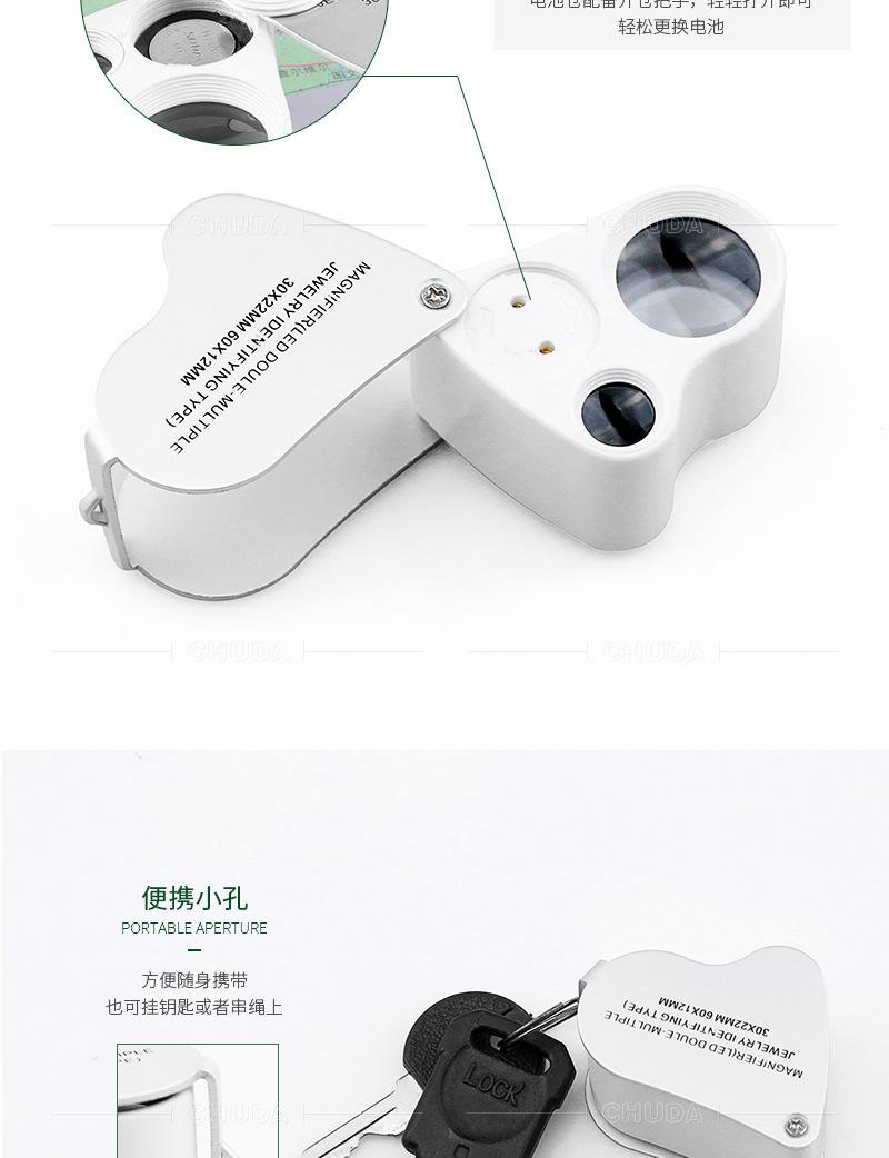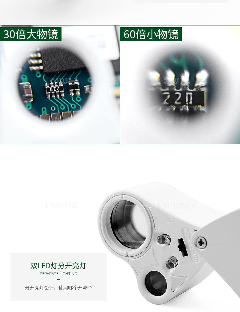 Chuda 30 veces 60 veces LED con luz joya doble 9889 lupa de bolsillo alta potencia identificación de jade antiguo