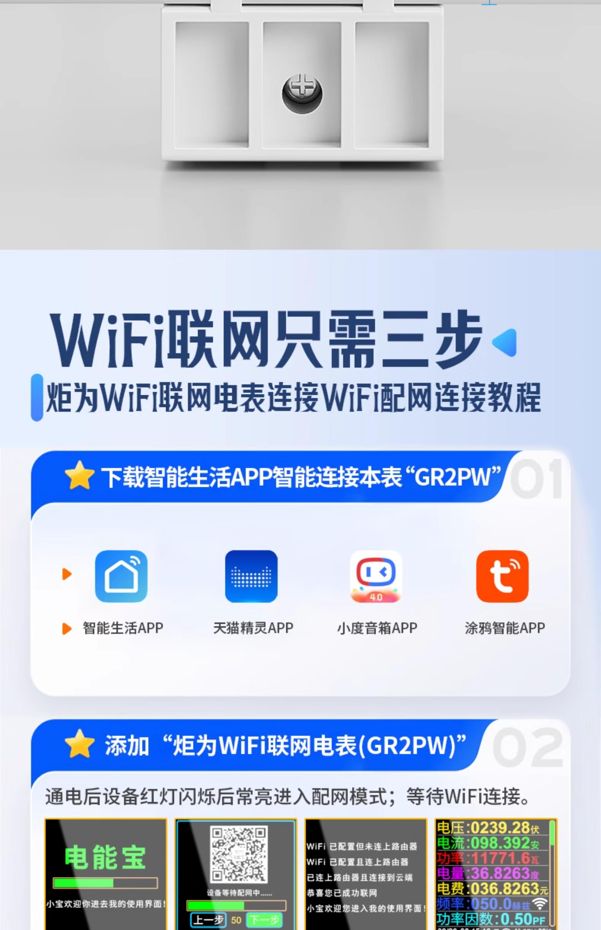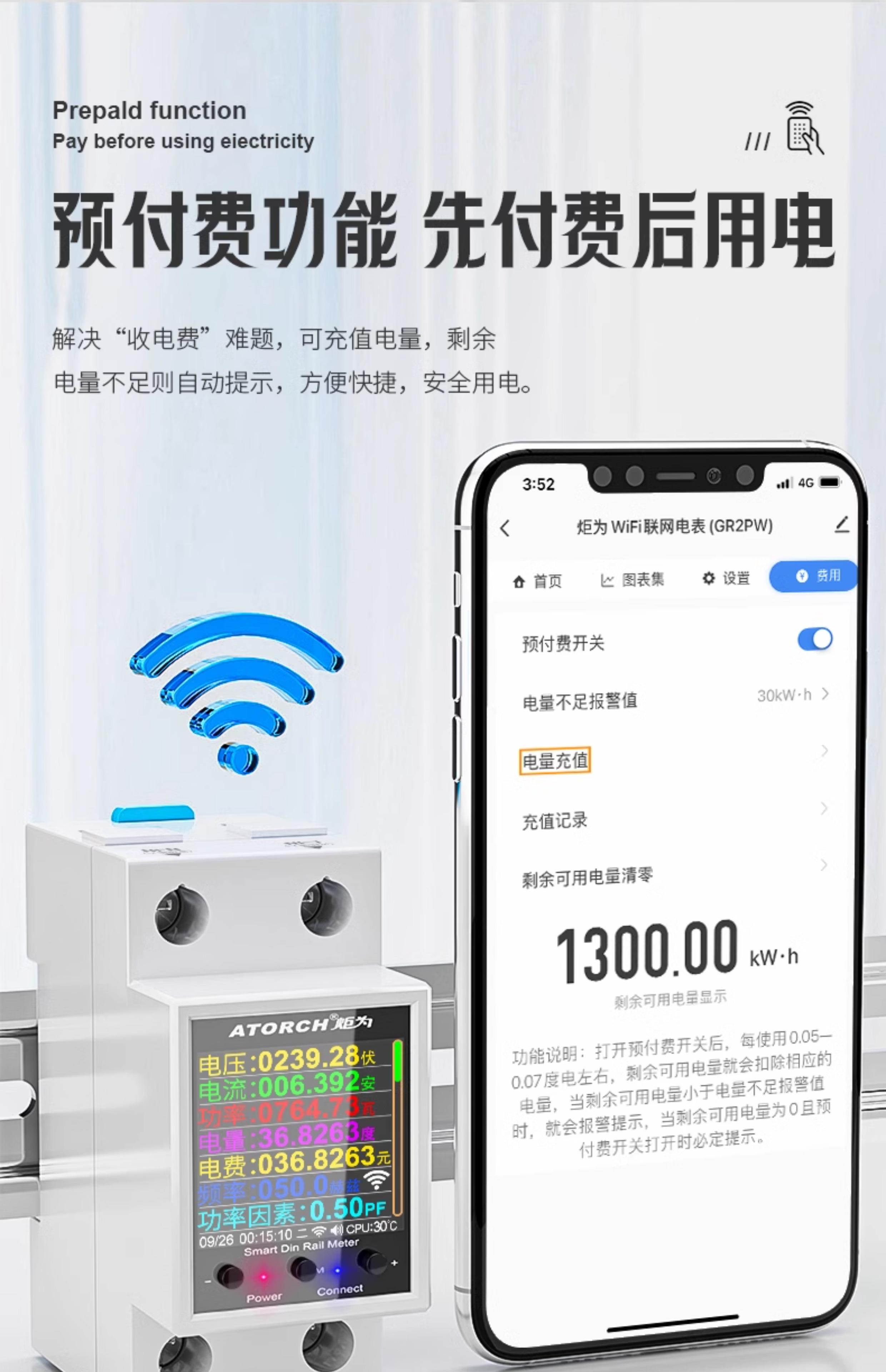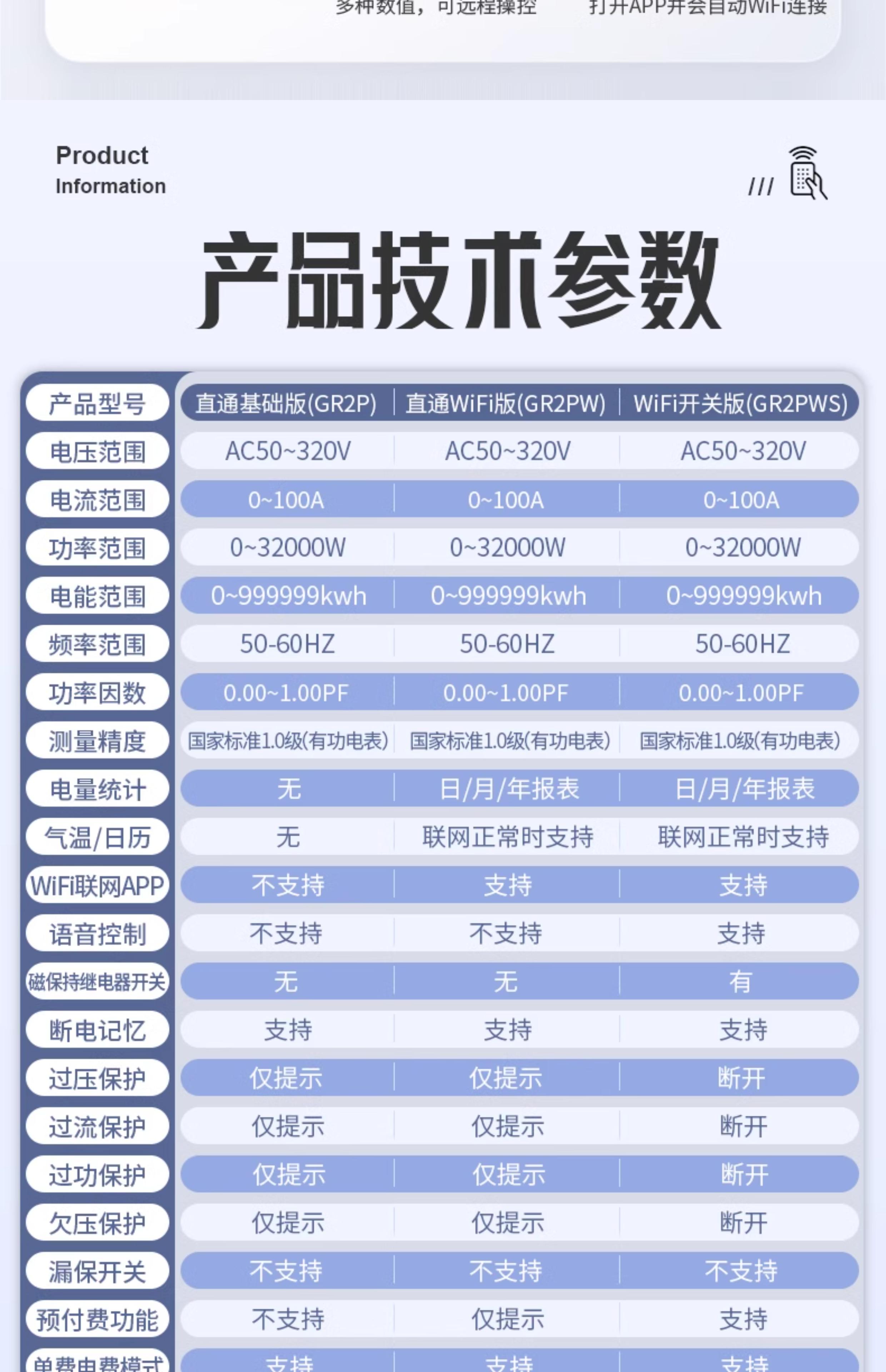 Ac50v~320v built-in 100a shunt tft true color screen ips high-definition display, Wifi version ac50v~320v buil...