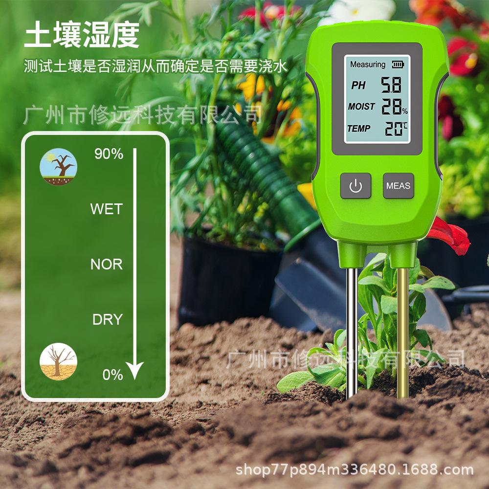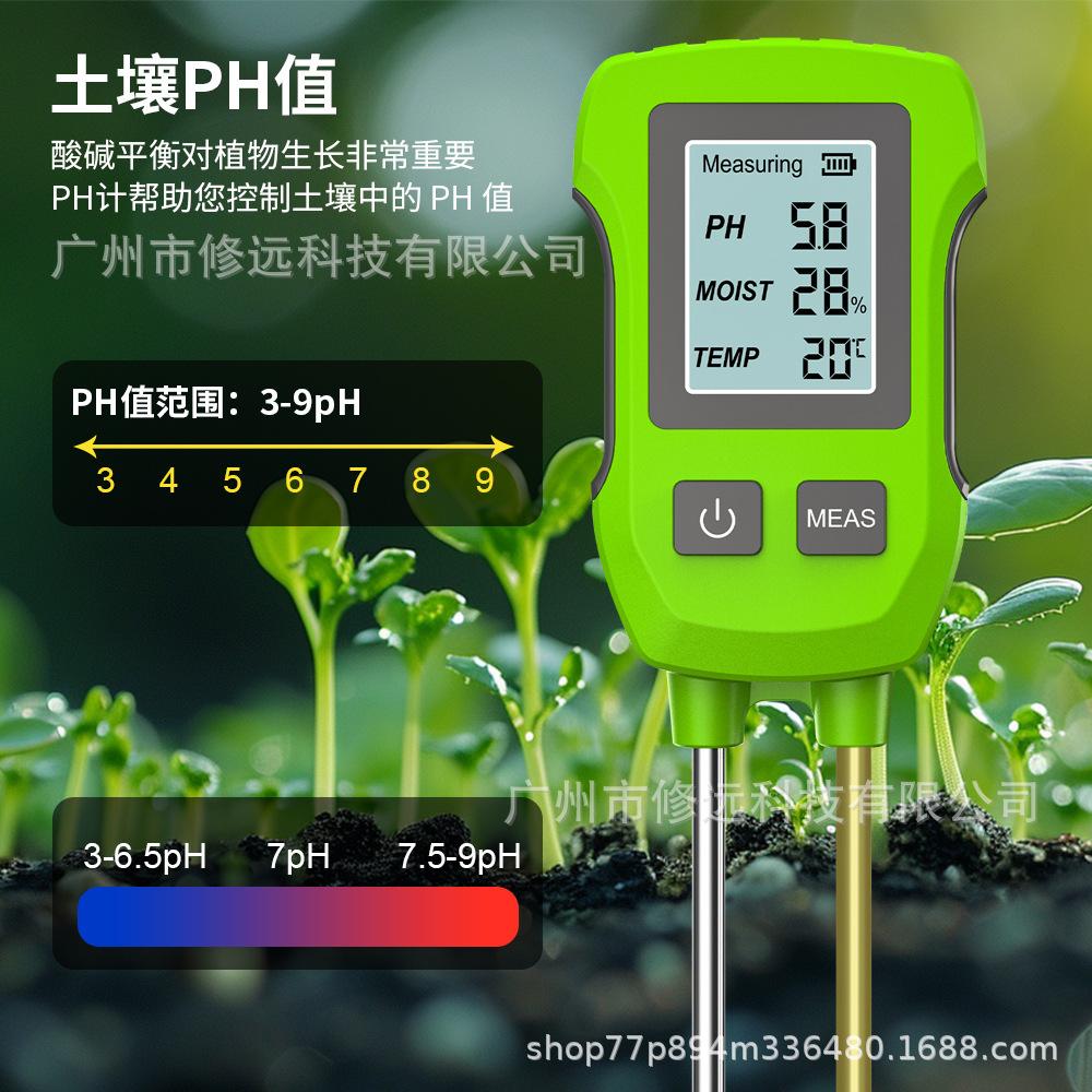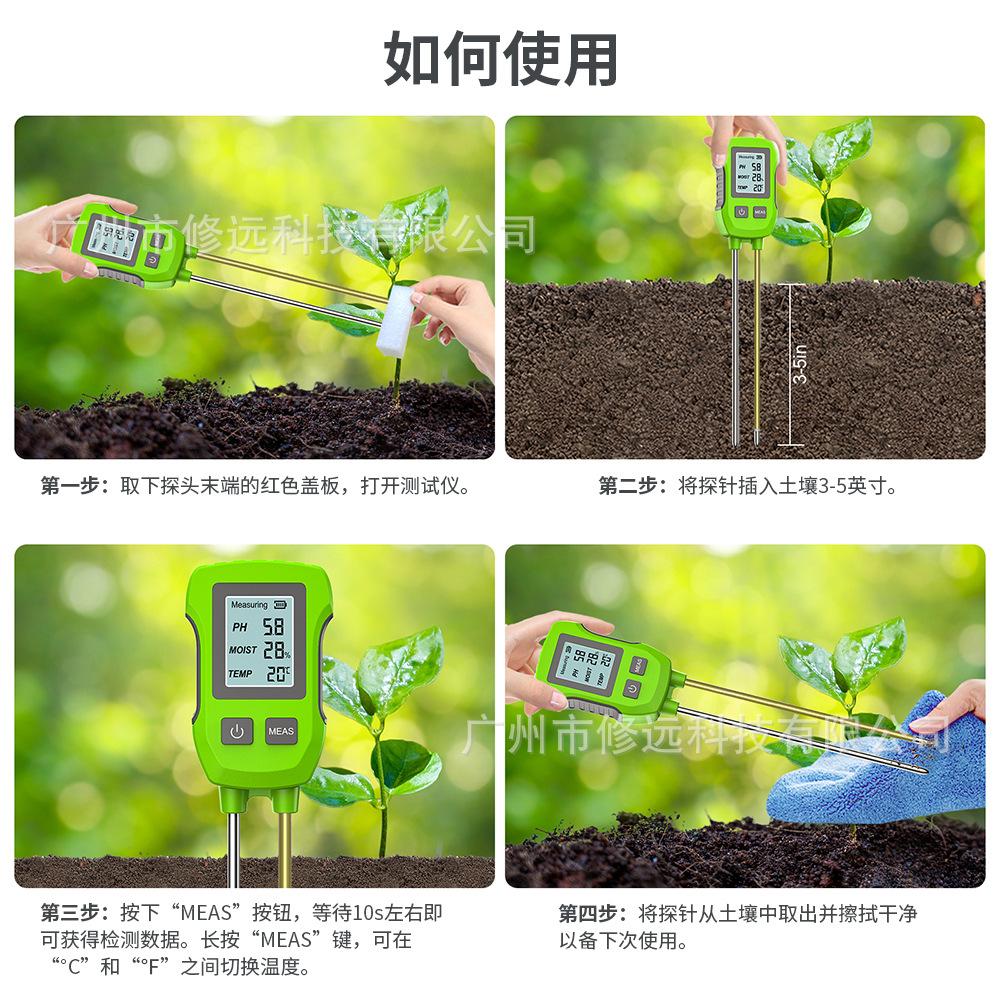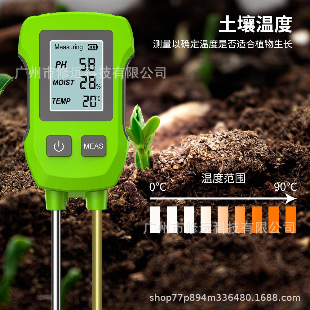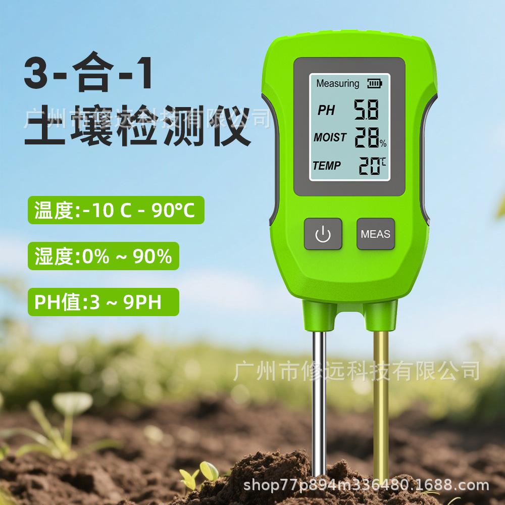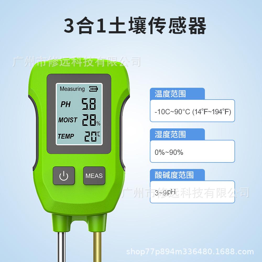 Detector de Suelo Tres en Uno Verde Fresco Ph Humedad Temperatura Probador Suelo Jardinería Medidor de Ph