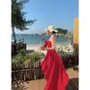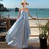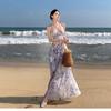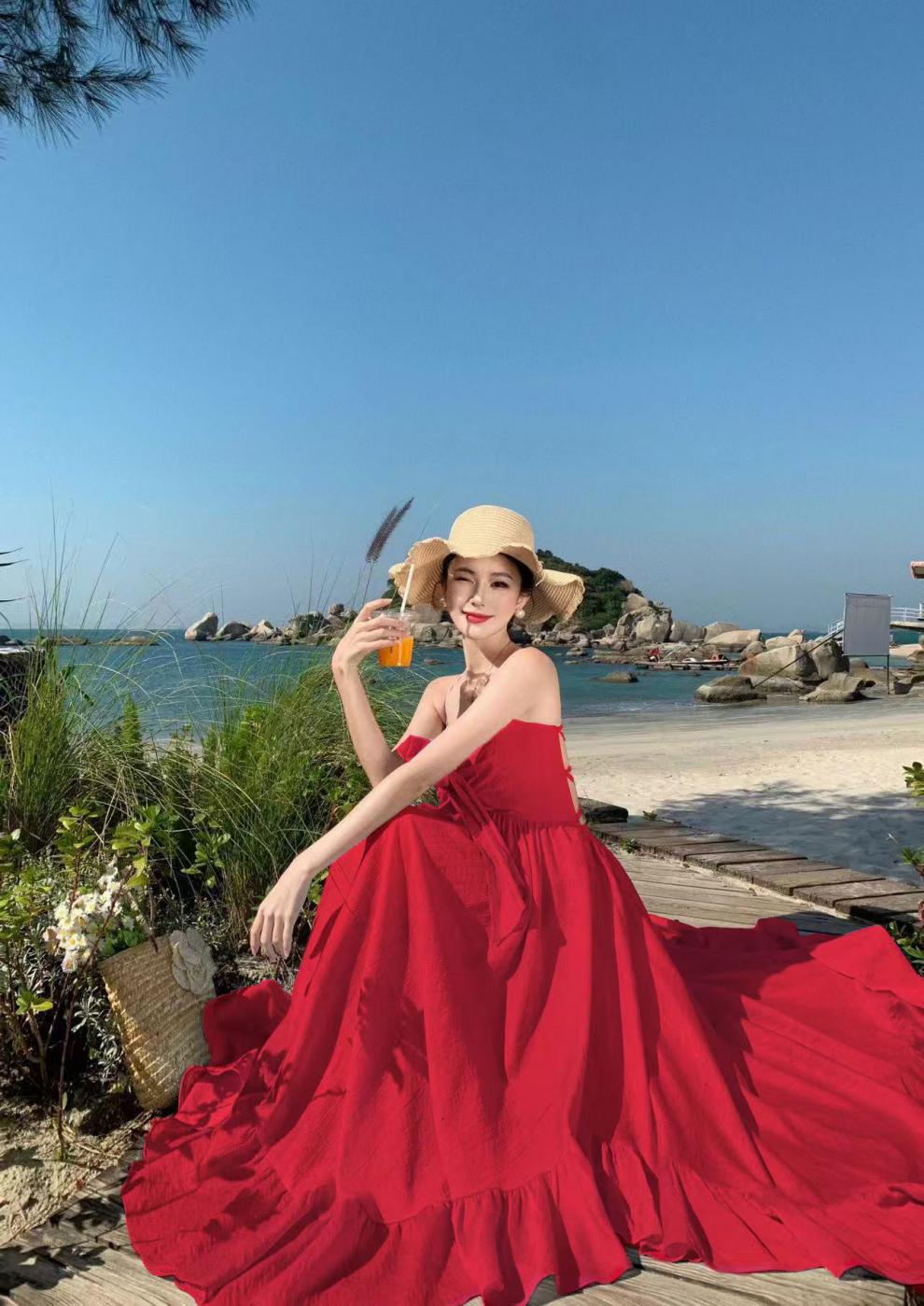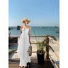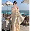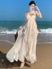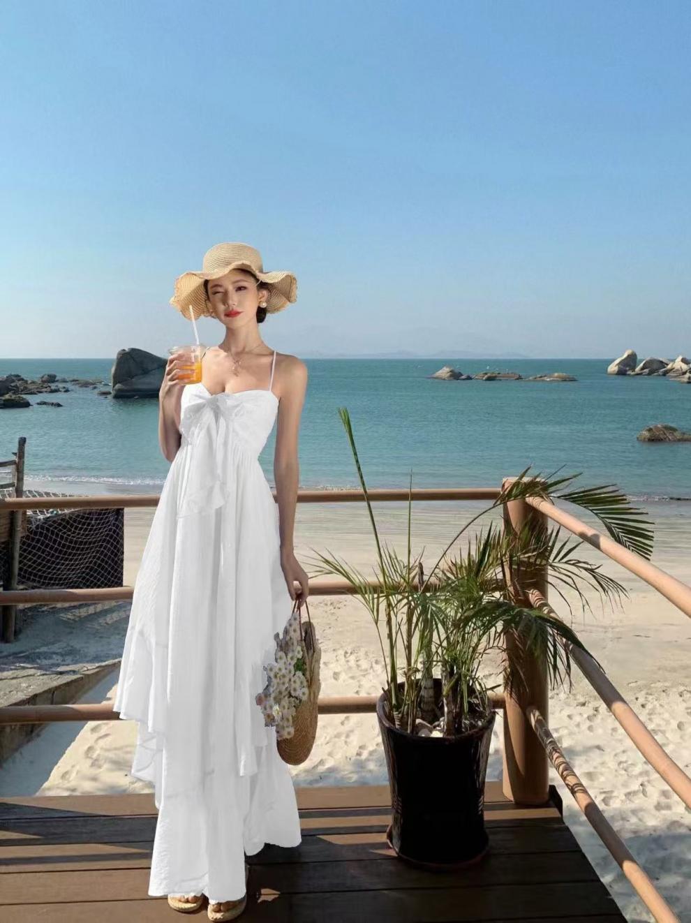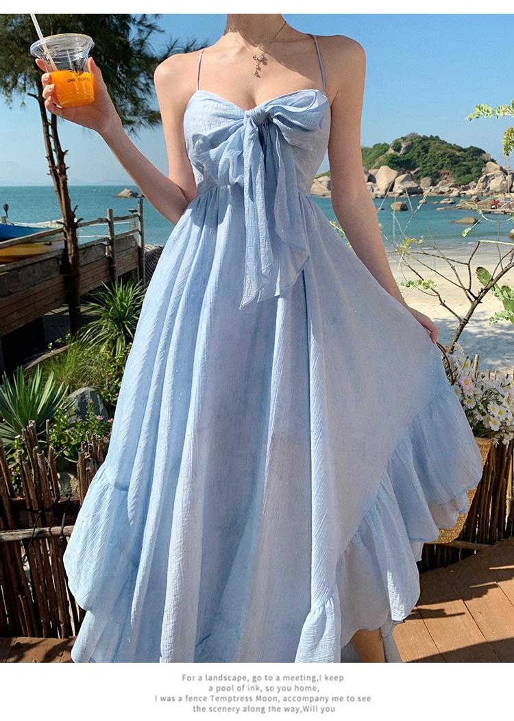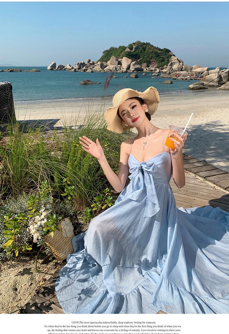 Vestido Irregular con Volantes en la Espalda Descubierta con Tirantes Brillante Atmósfera de Vacaciones junto al Mar Súper Hada Vestido de Playa Sanya