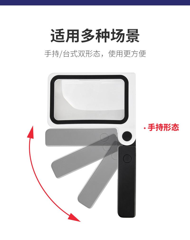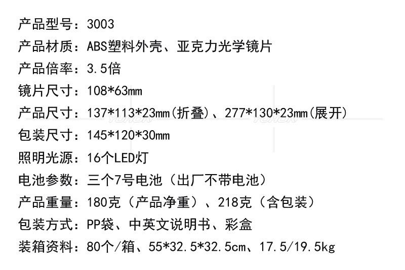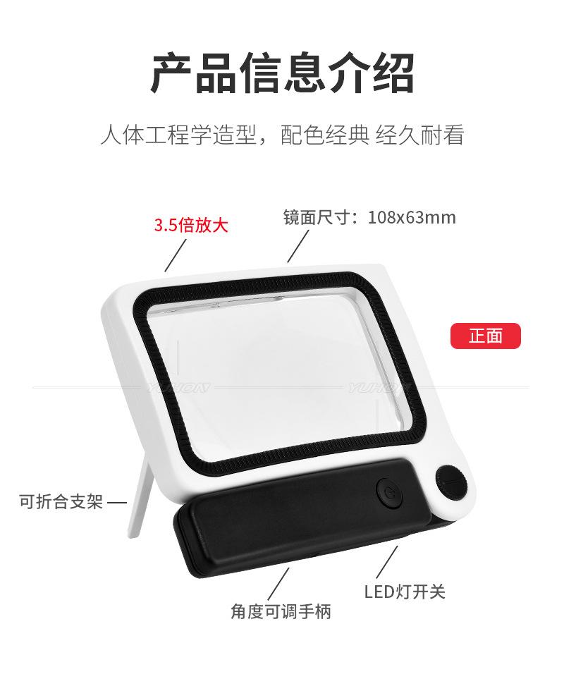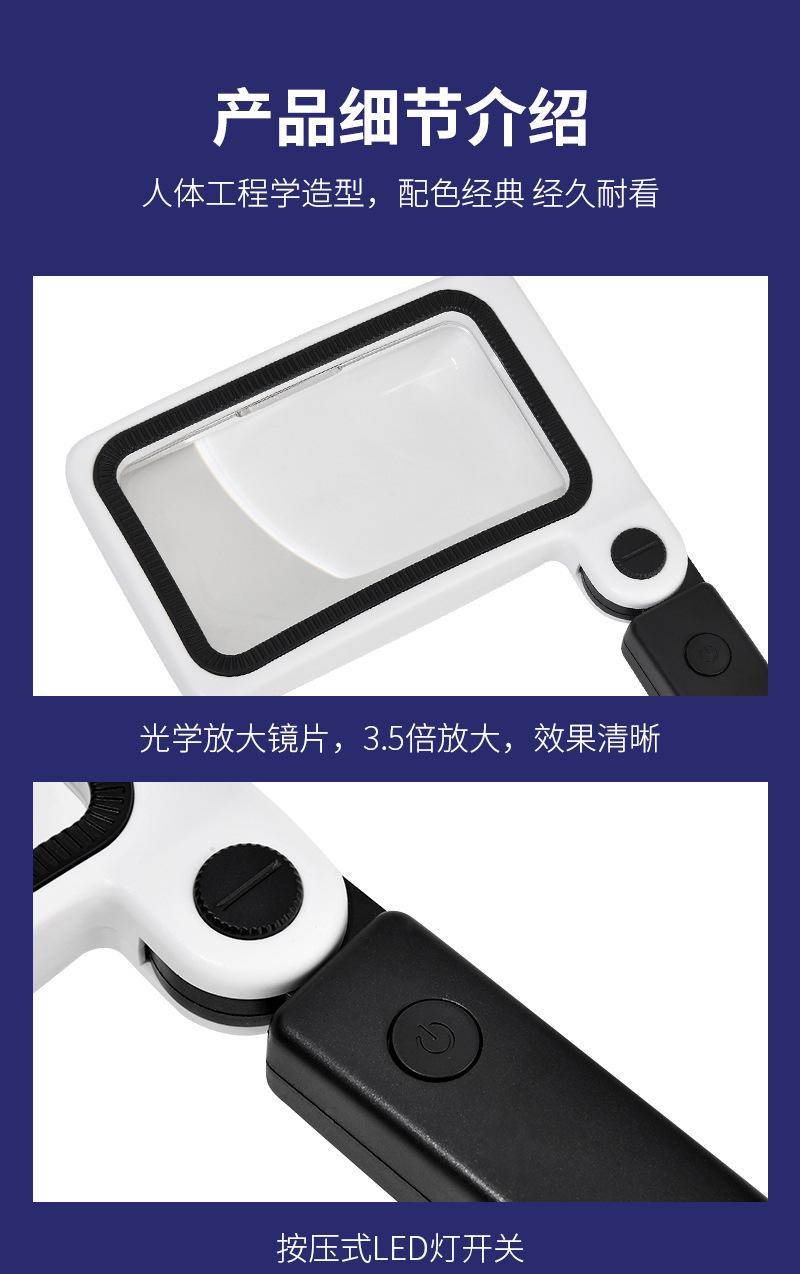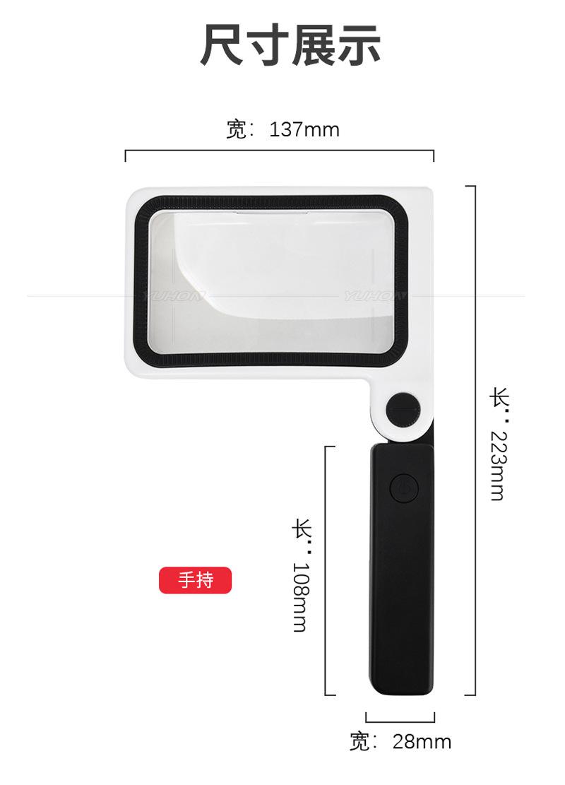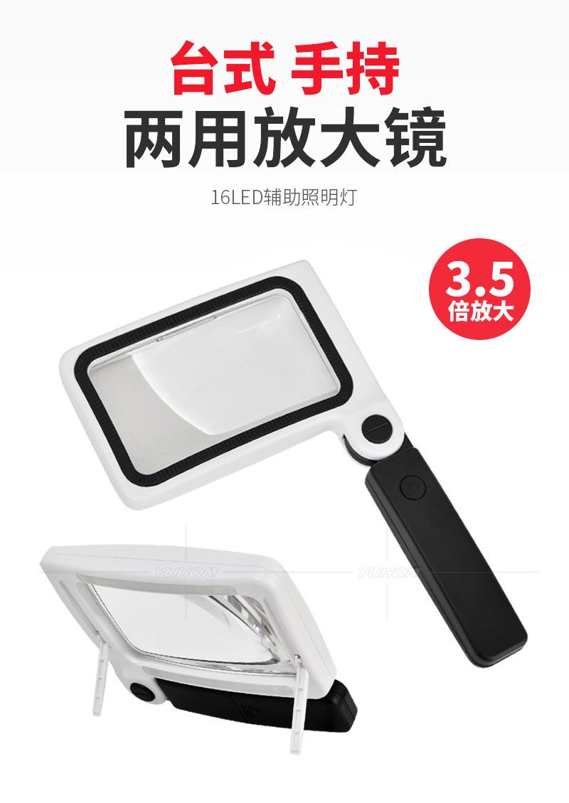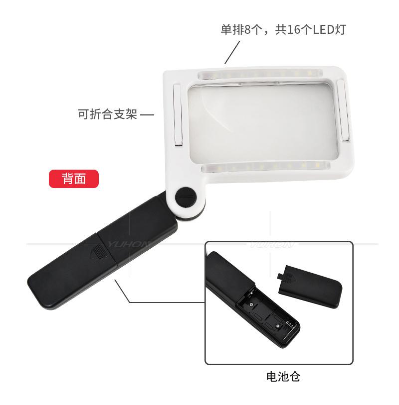 Lupa de mano plegable cuadrada con lámpara 16LED para personas mayores Lectura HD portátil 3.5 veces comercio exterior transfronterizo