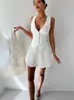 Amazon Europeo y Americano 2025 Elegante Viajero Color Puro Sin Mangas Chaleco de Traje con Botones Top Halter Falda Plisada