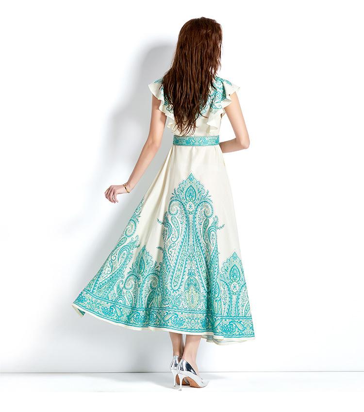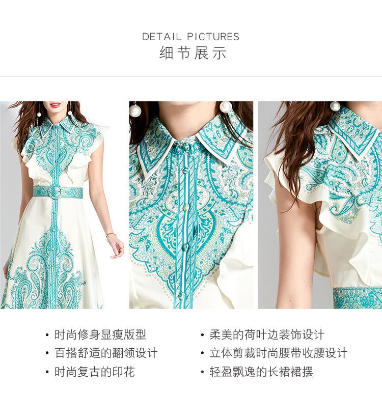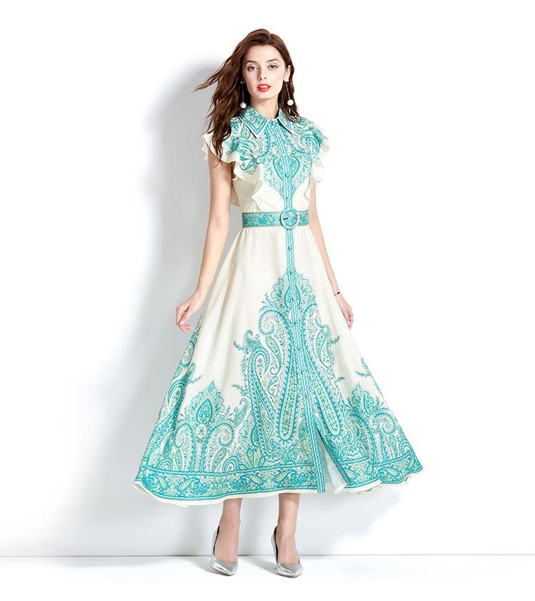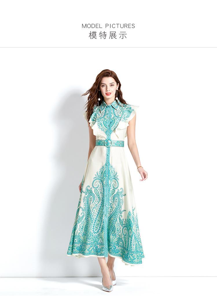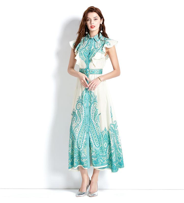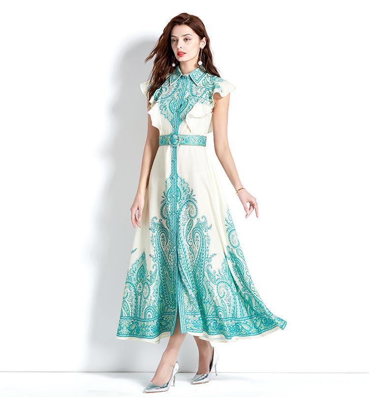 Vestido Largo Estilo Palacio sin Mangas Estampado con Solapa Primavera/Verano 2023