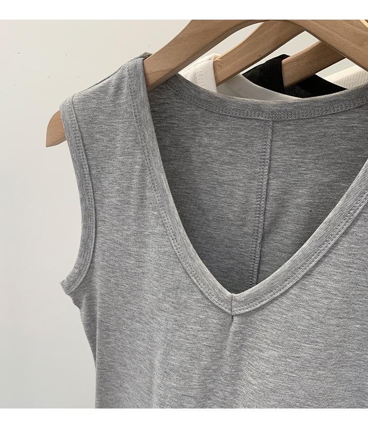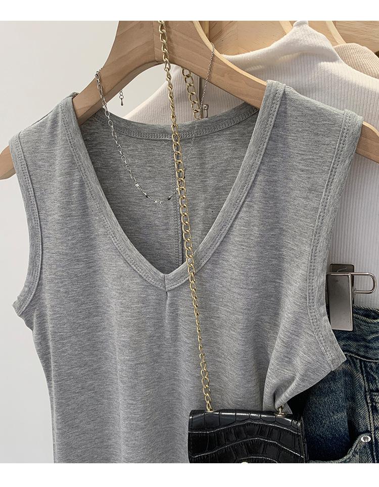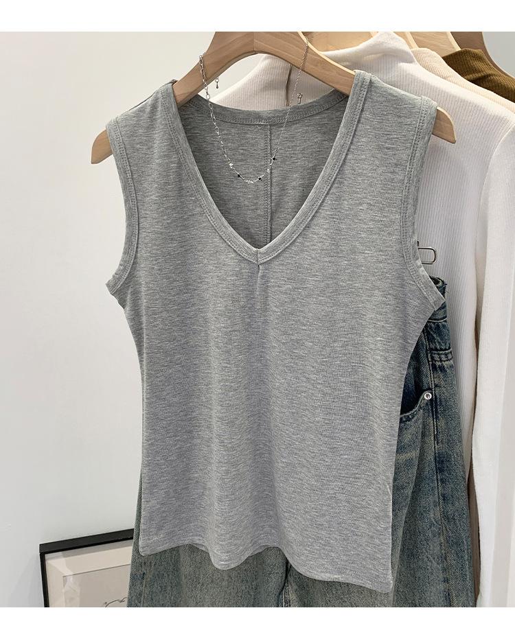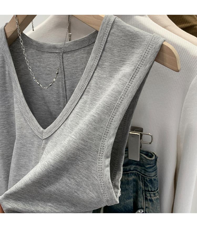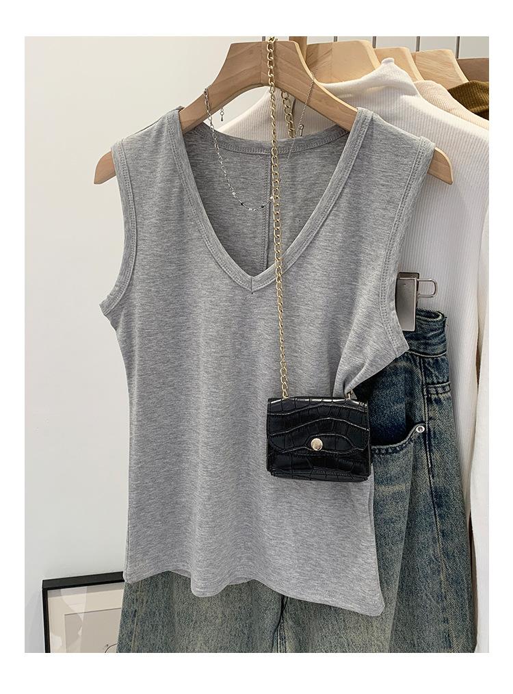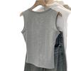 Camisola Retro Francesa Gris de Tirantes Anchos con Cuello en V Slim sin Mangas Verano 2025 Nuevo Estilo Coreano Top Exterior