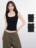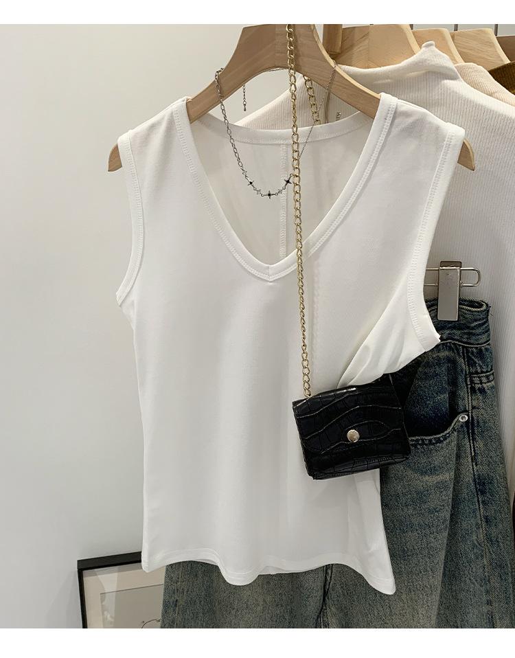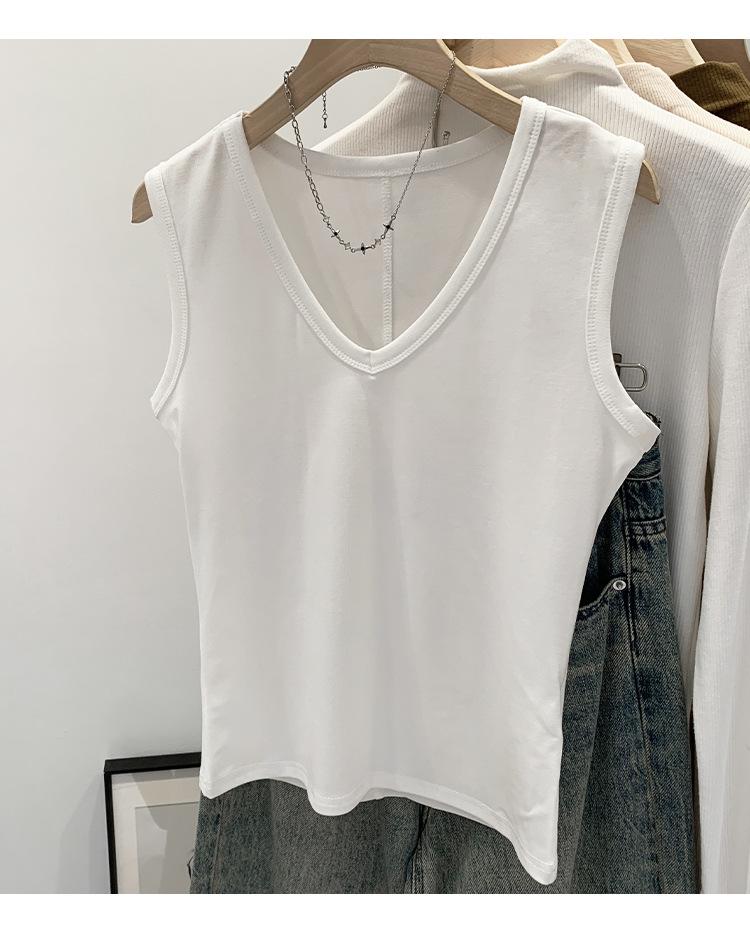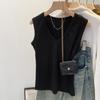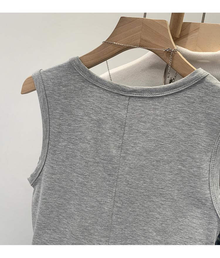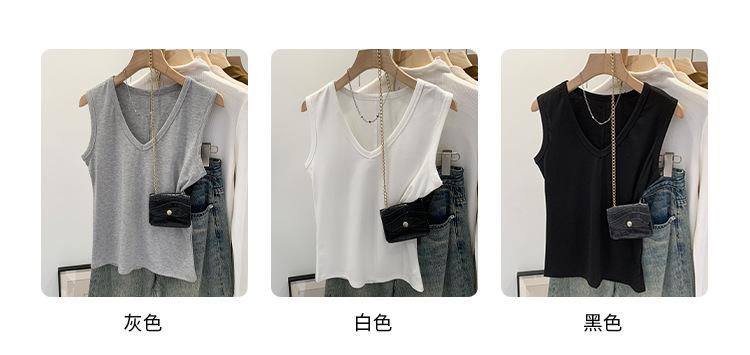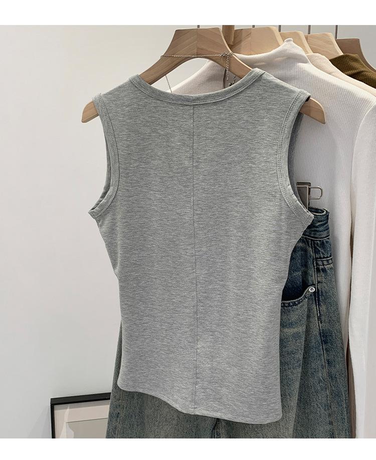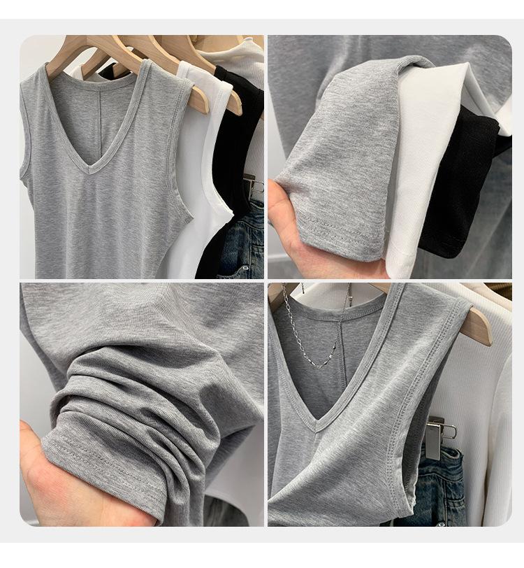 Camisola Retro Francesa Gris de Tirantes Anchos con Cuello en V Slim sin Mangas Verano 2025 Nuevo Estilo Coreano Top Exterior