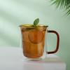 Taza de Café de Vidrio de Doble Capa Resistente al Calor Vaso de Vidrio Aislado Taza de Té Transparente Engrosada Vaso para Jugo con Asa