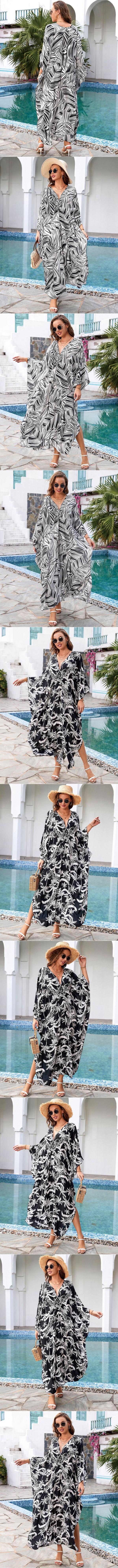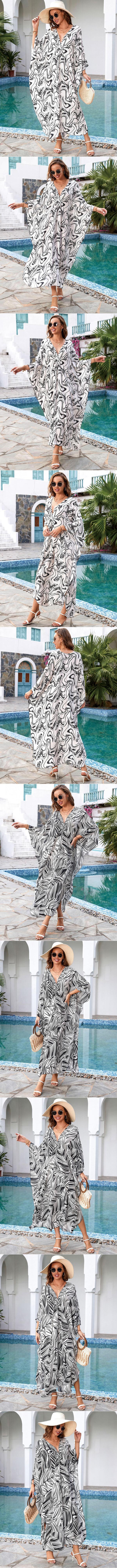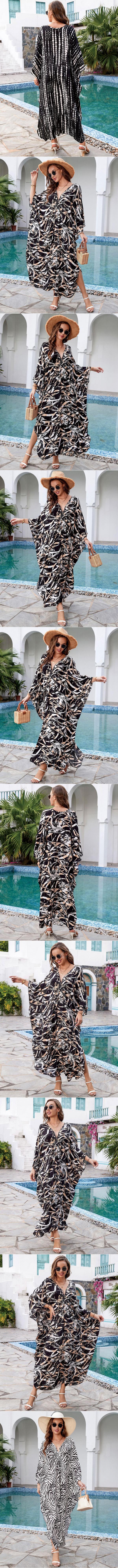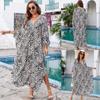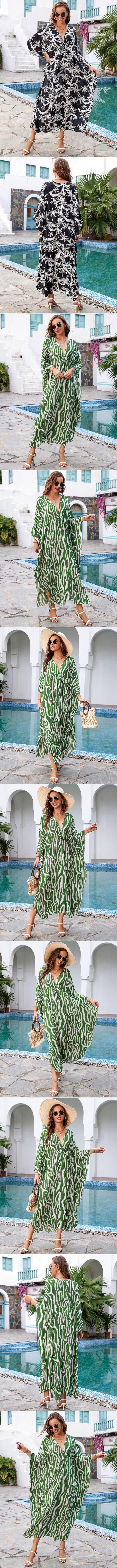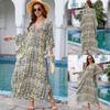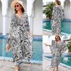 Bata Transfronteriza Europea y Americana de Rayón Estampado Holgada Talla Grande Vestido de Vacaciones Chaqueta de Playa para Mujer Cubre Bikini