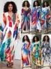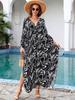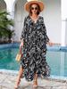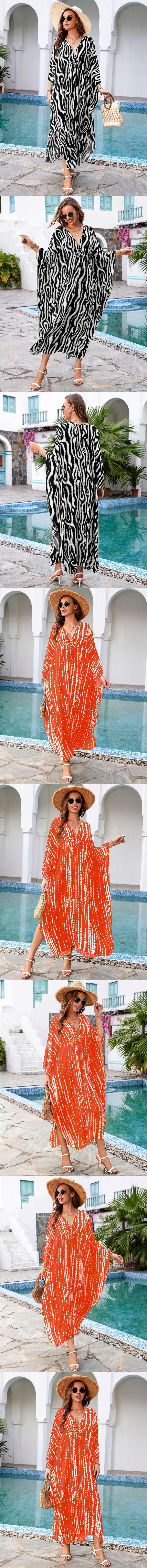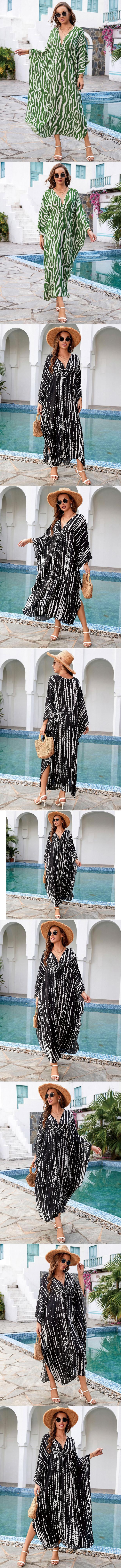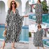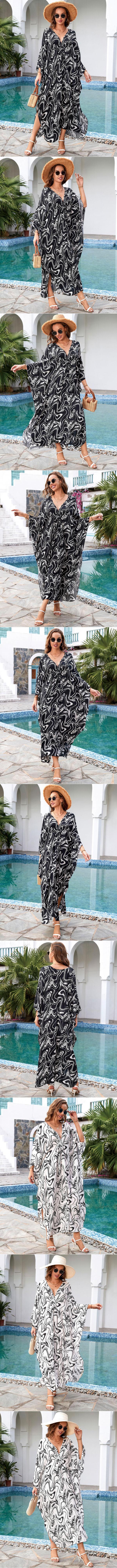 Bata Transfronteriza Europea y Americana de Rayón Estampado Holgada Talla Grande Vestido de Vacaciones Chaqueta de Playa para Mujer Cubre Bikini