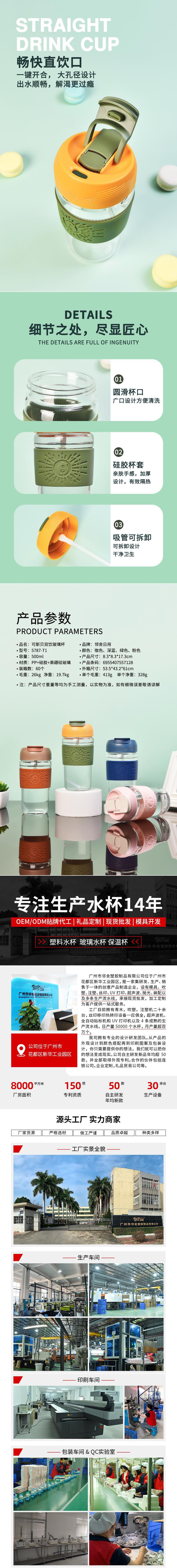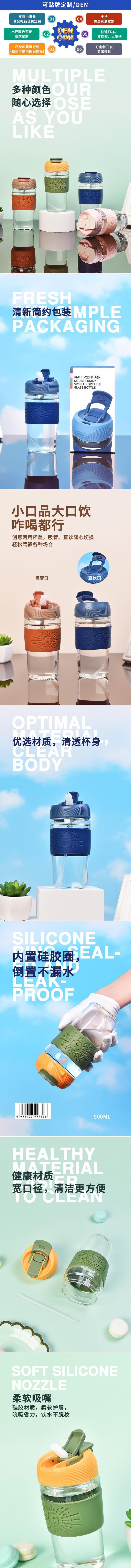 Vaso de Agua de Vidrio, Taza de Café, Taza de Té, Taza de Té con Tapa, Vaso con Asa para Doble Bebida con Popote Portátil para Oficina para Hombre y Mujer