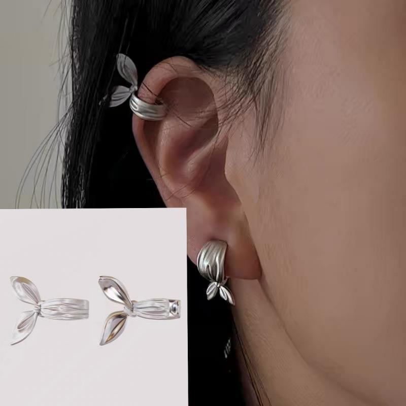 Aretes de Lazo Lujosos y Exquisitos, Modernos y de Nicho, Clips para Cartílago sin Perforación, Aretes y Accesorios para Mujer