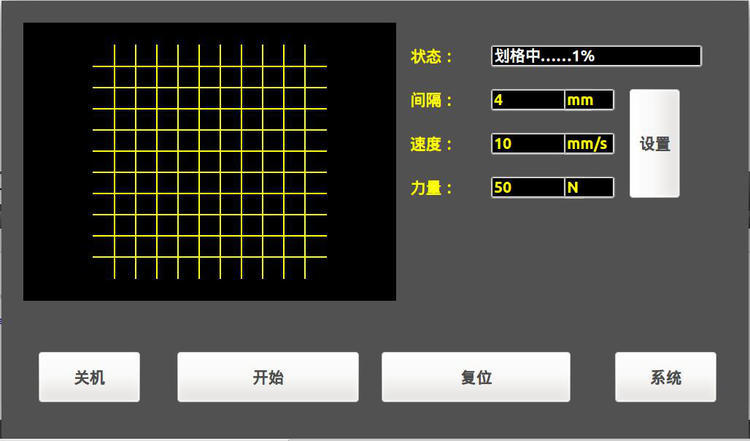 1. Interfaz principal: visualización en tiempo real de la cuadrícula, la pista de scratch y los parámetros de prueba relacionados