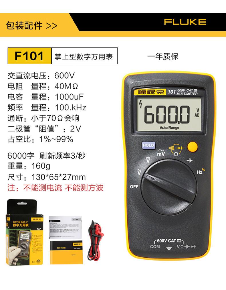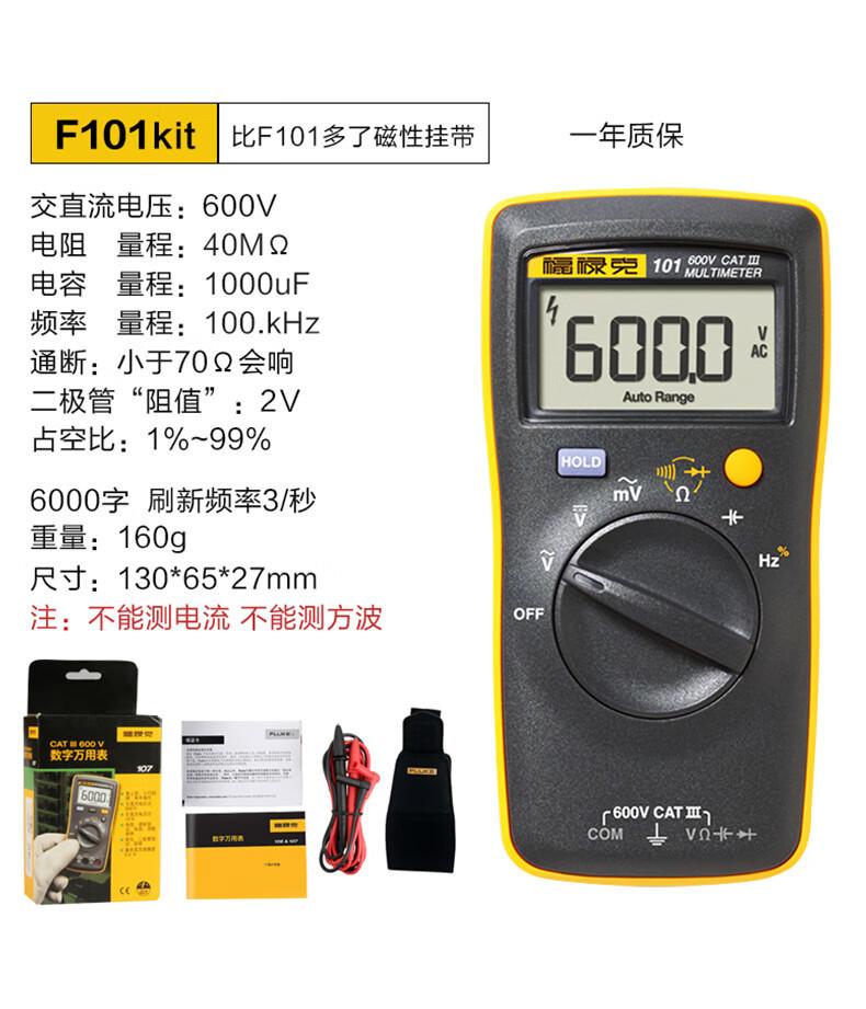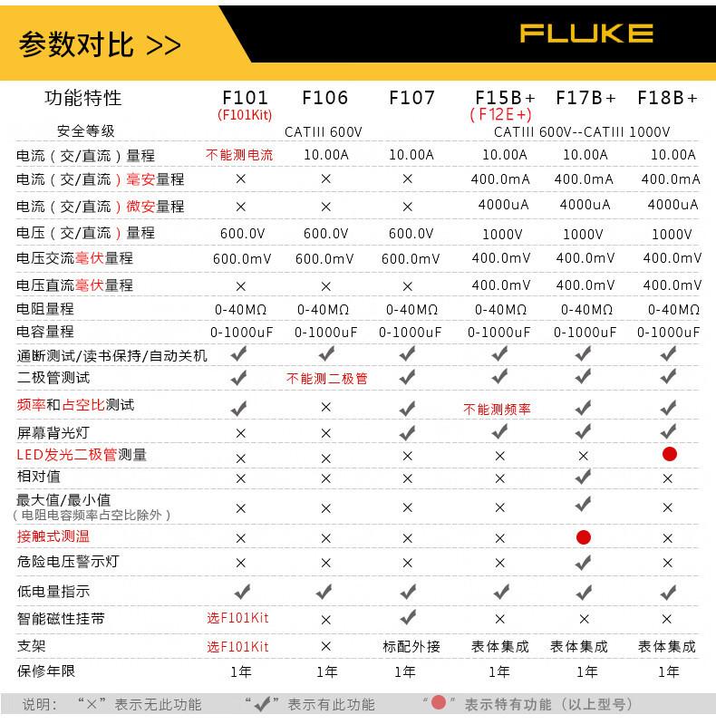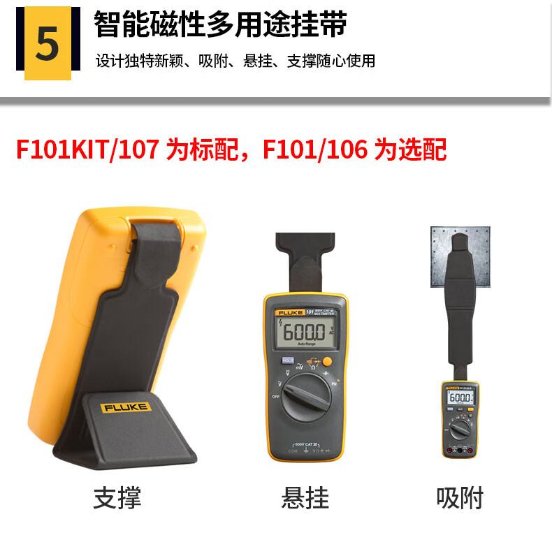 F101 [basic measurement voltage], F101 kit [basic with magnetic hanging bag], F106 [can measure ac and dc], F1...