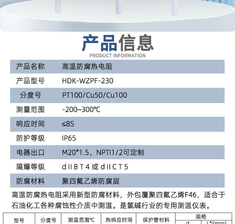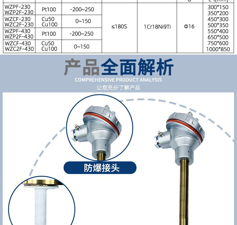 Resistencia Térmica Pt100 Cu50 Ptfe Doble Rama Resistencia Térmica de Platino Alta Temperatura a Prueba de Explosiones Anticorrosión Temperatu
