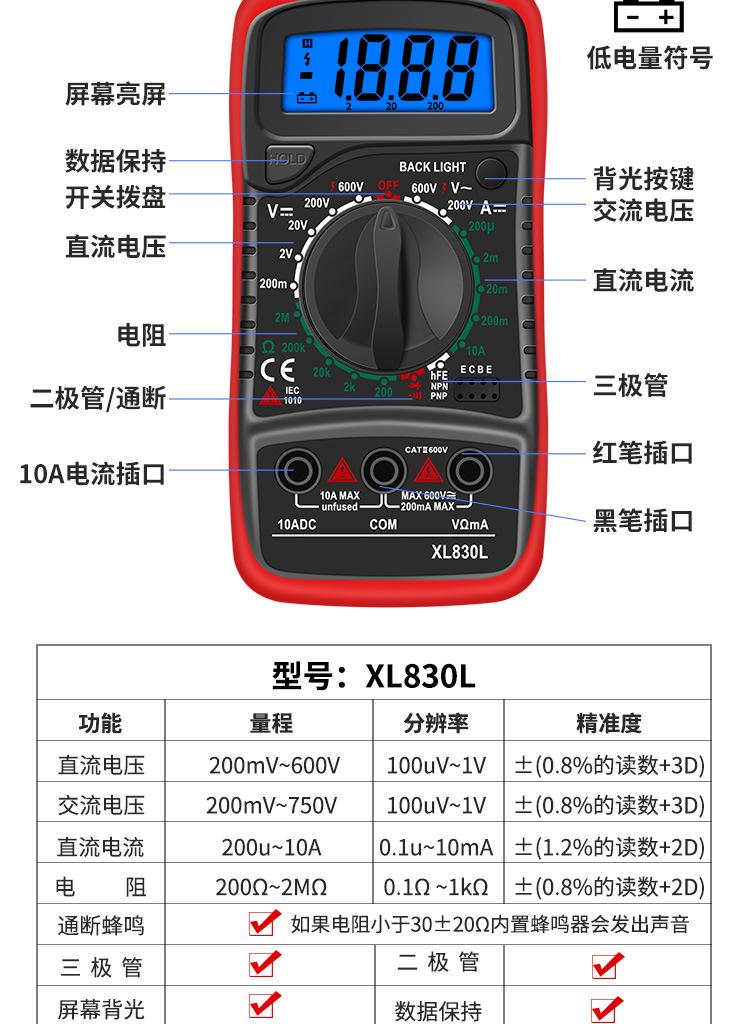 Suministro directo de fábrica multímetro digital XL830L medidor universal de bolsillo de alta precisión instrumento multifunción portátil